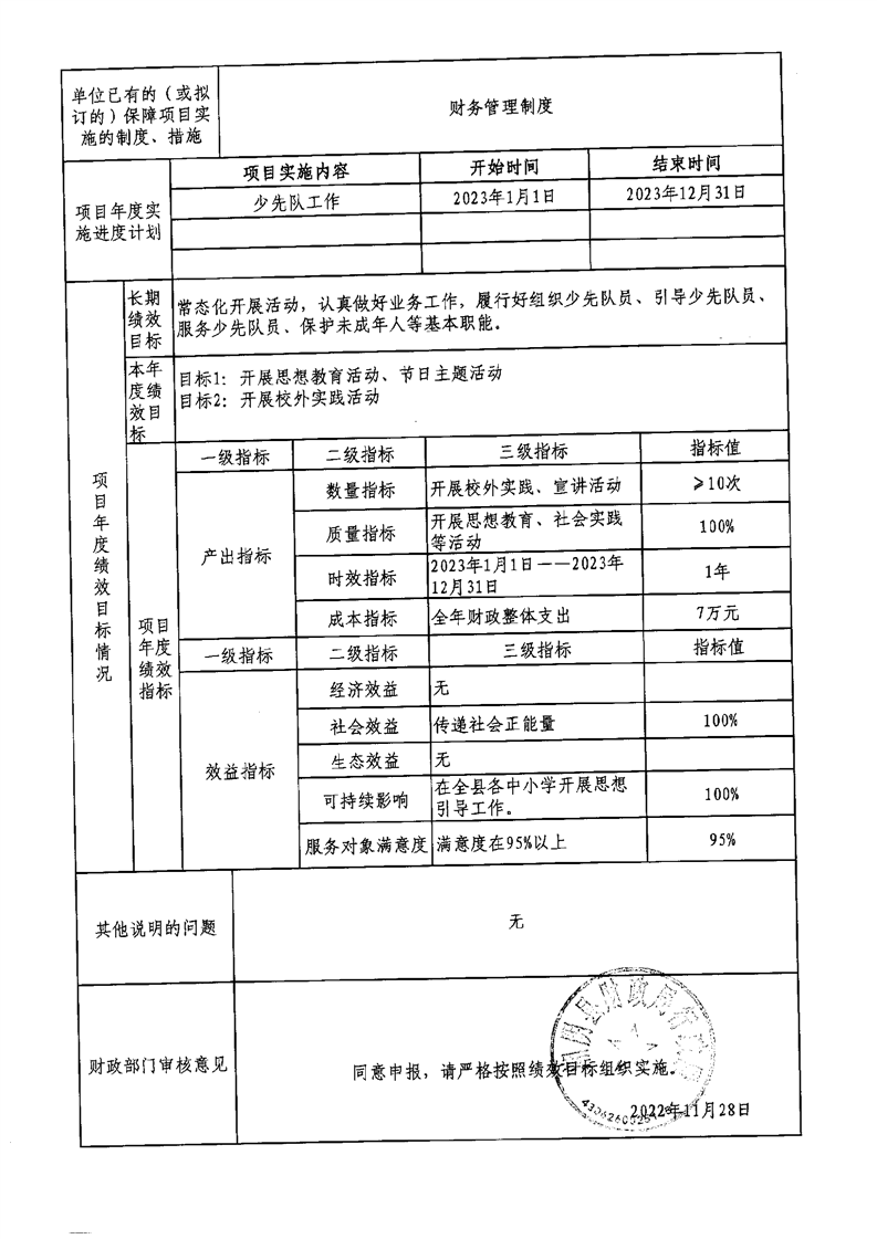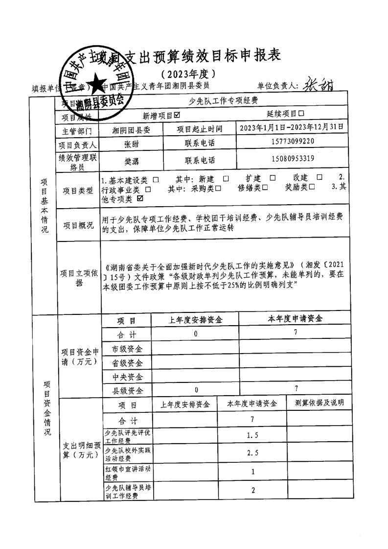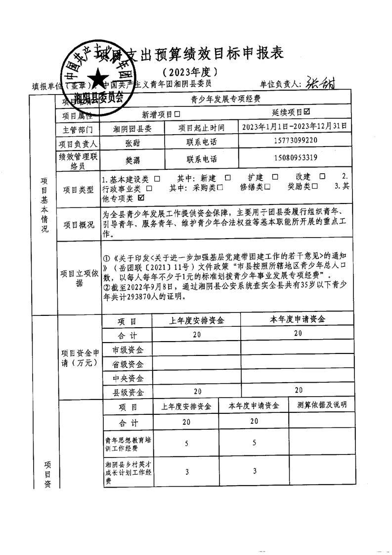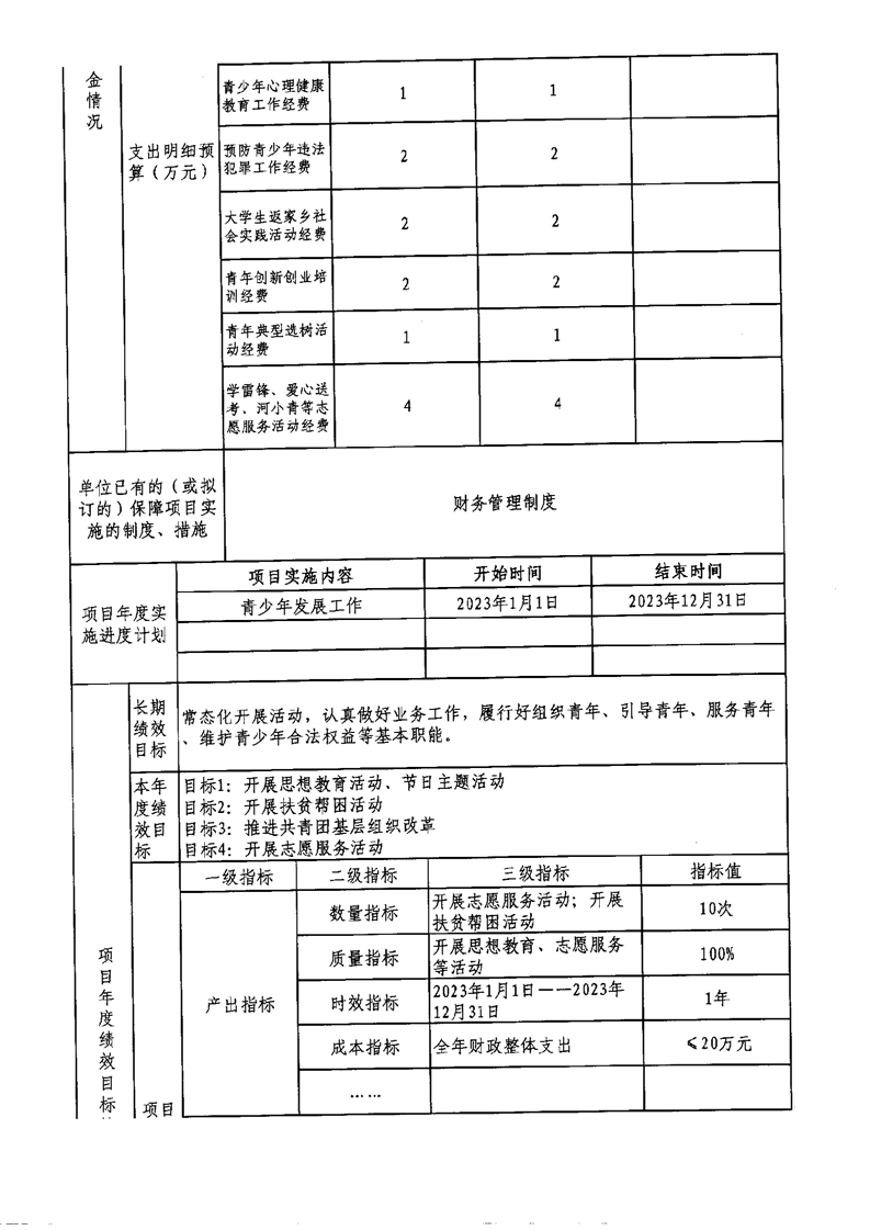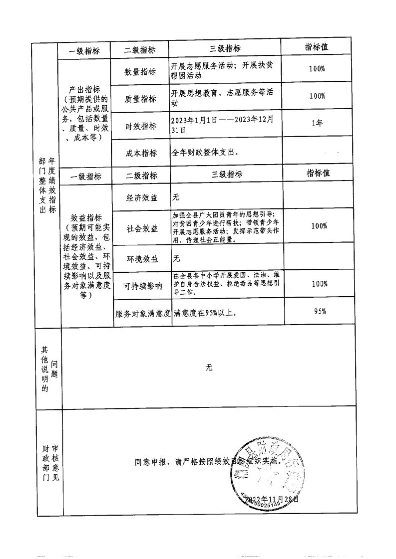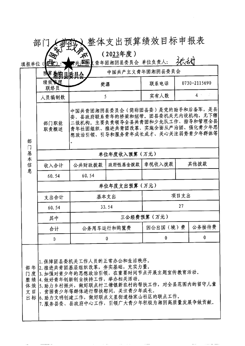 2023年度中国共产主义青年团湘阴县委员会整体支出预算绩效目标申报表