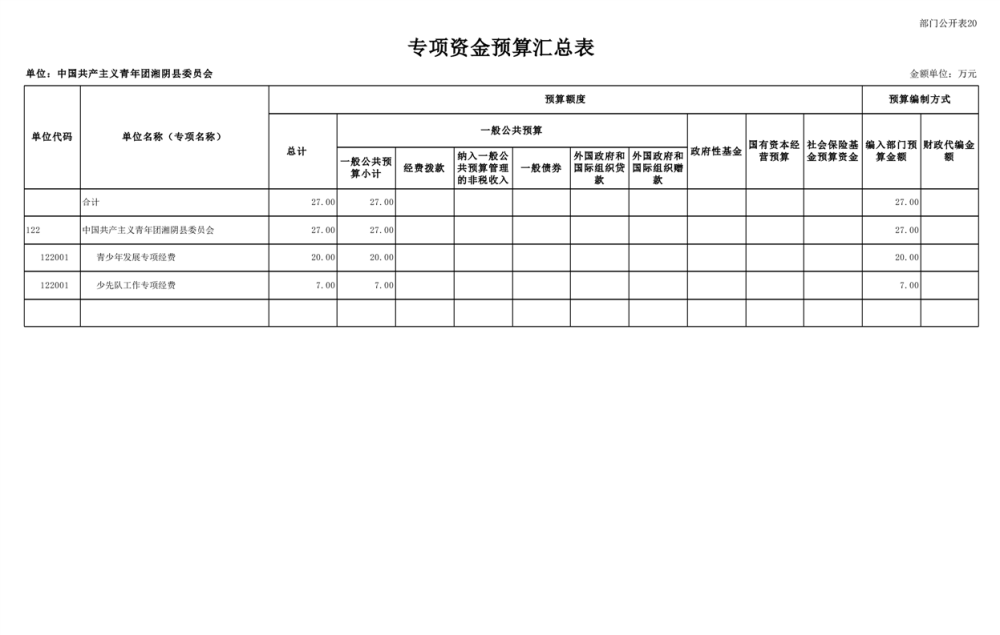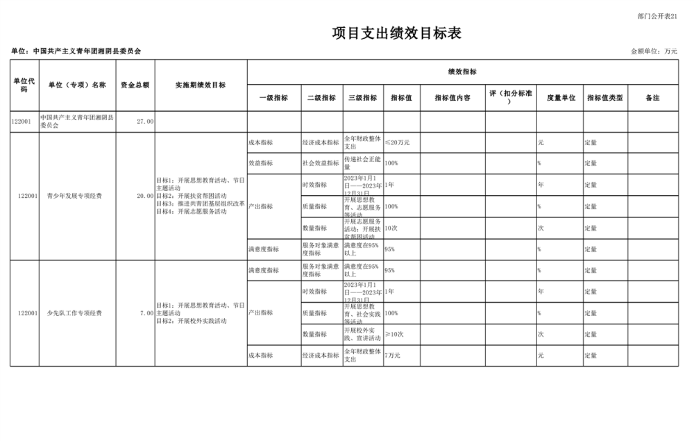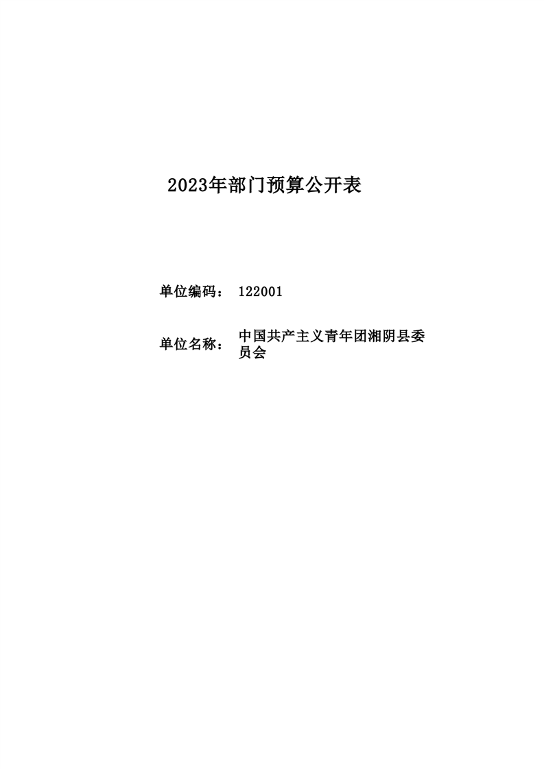 中国共产主义青年团湘阴县委员会-2023 年-部门预算