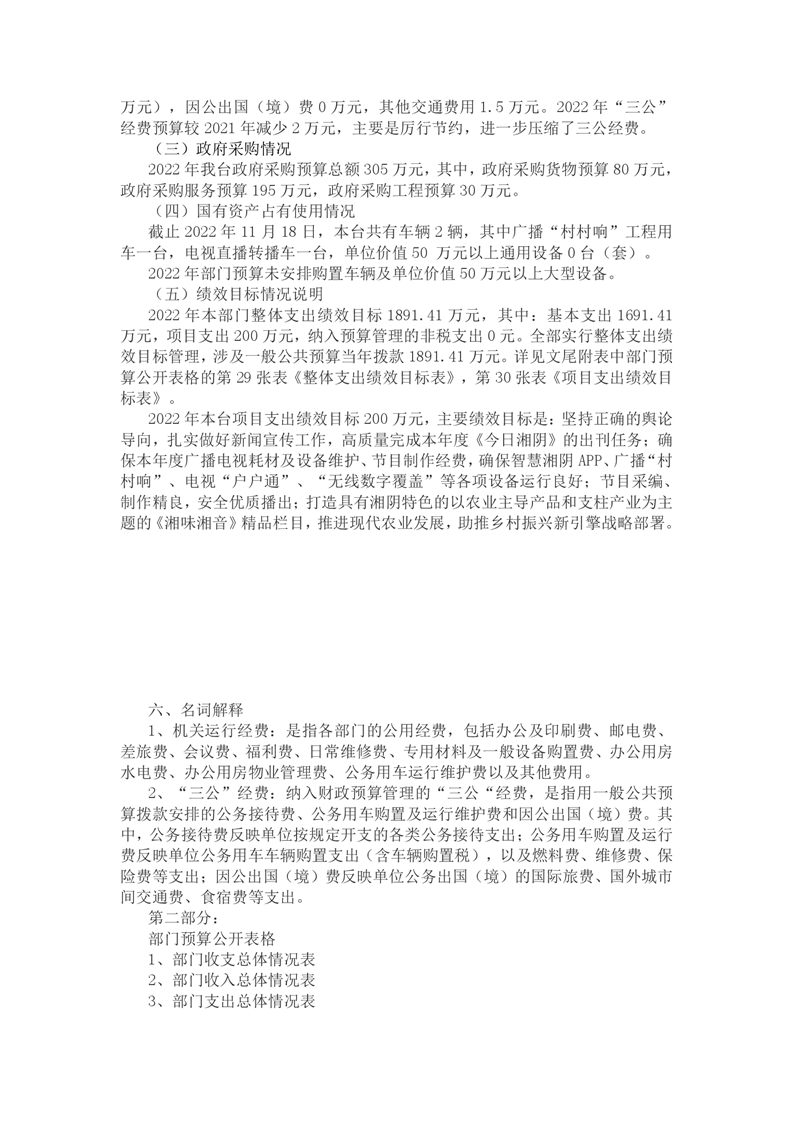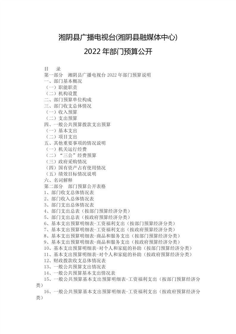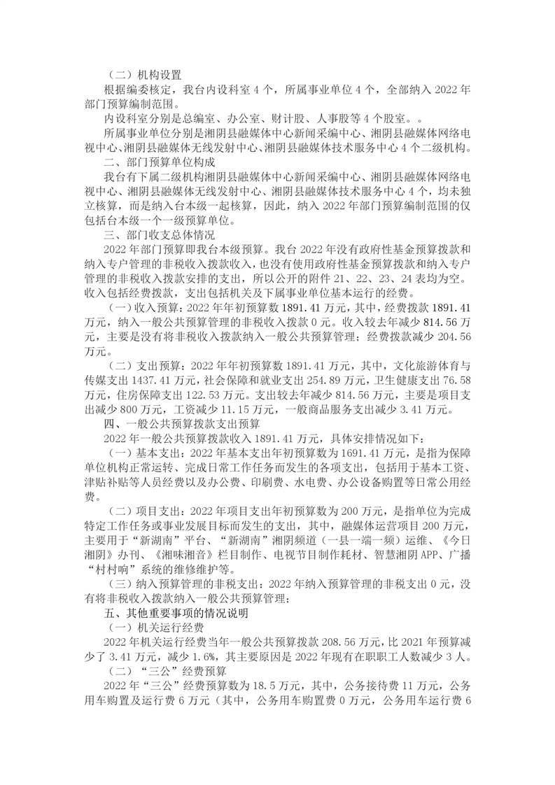 湘阴县广播电视台(湘阴县融媒体中心)2022年部门预算公开