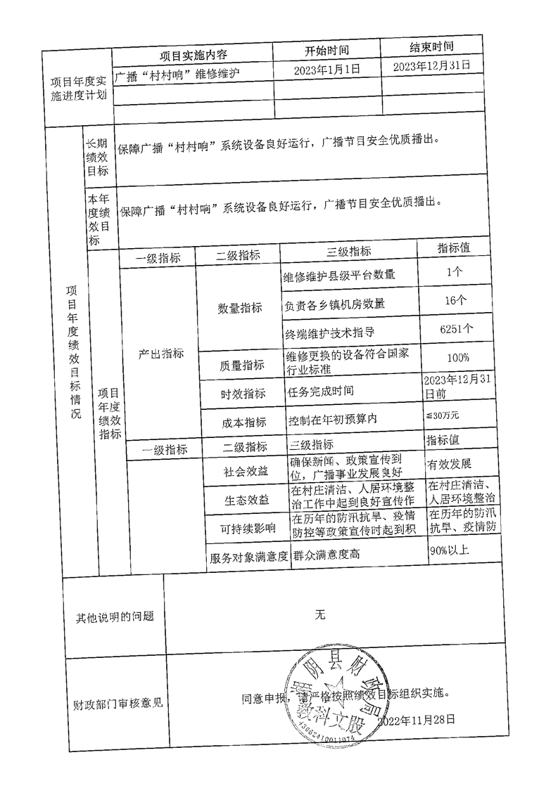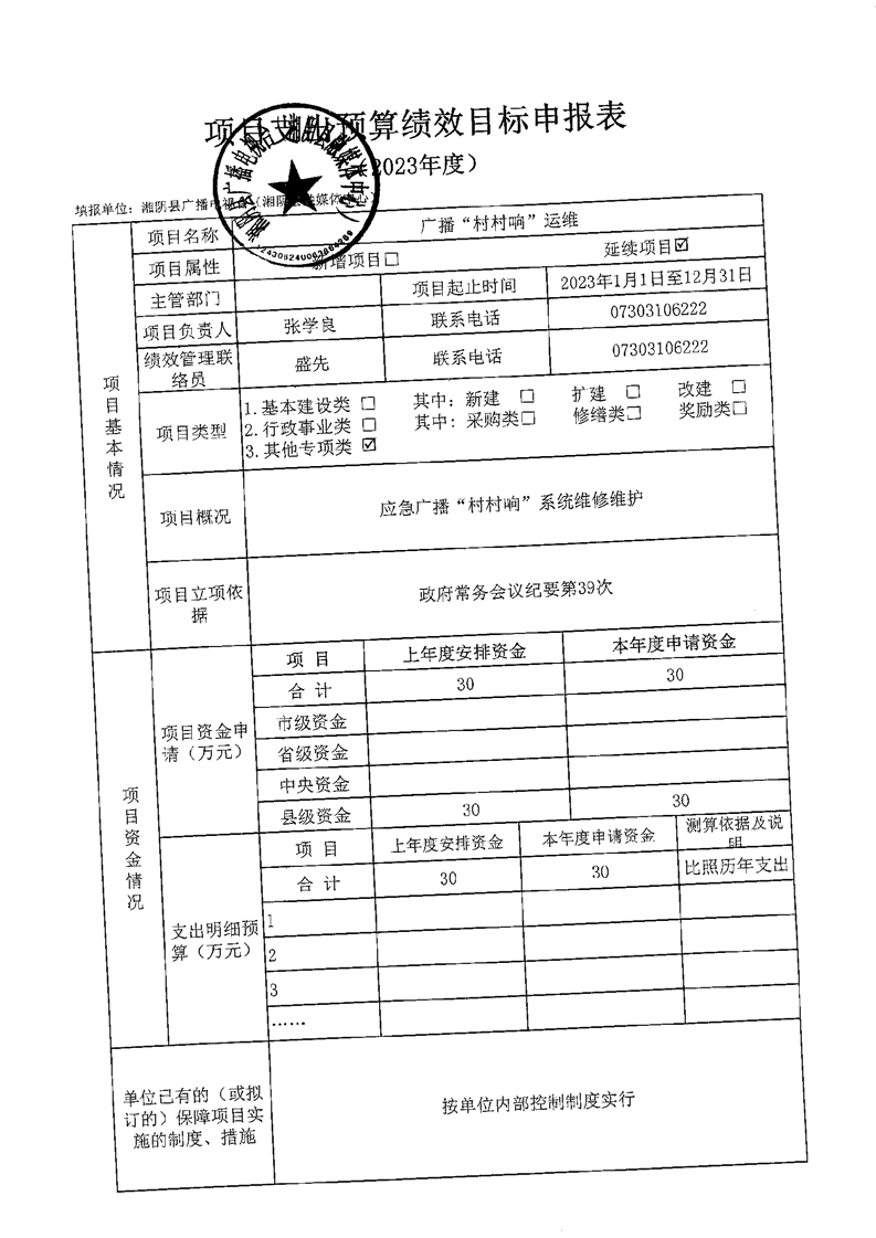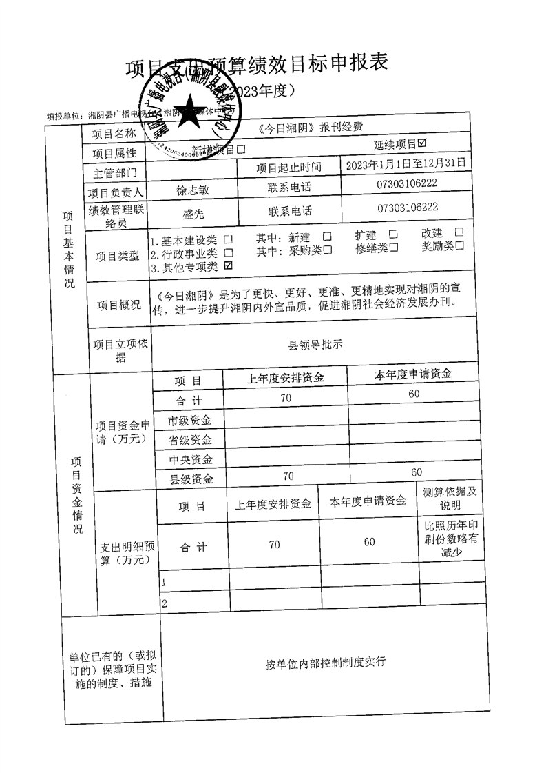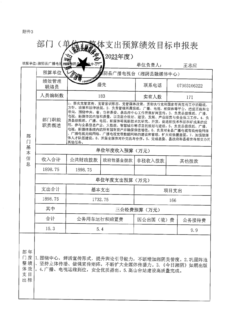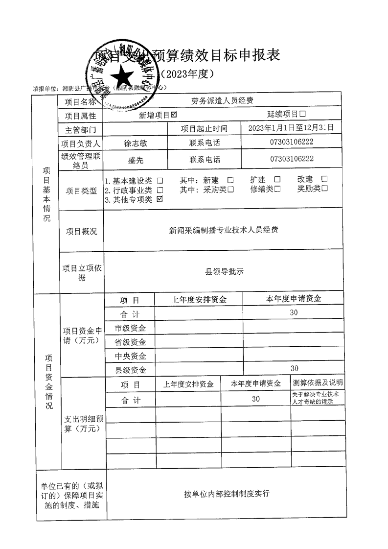 2023年度湘阴县广播电视台整体(专项)预算绩效目标申报表