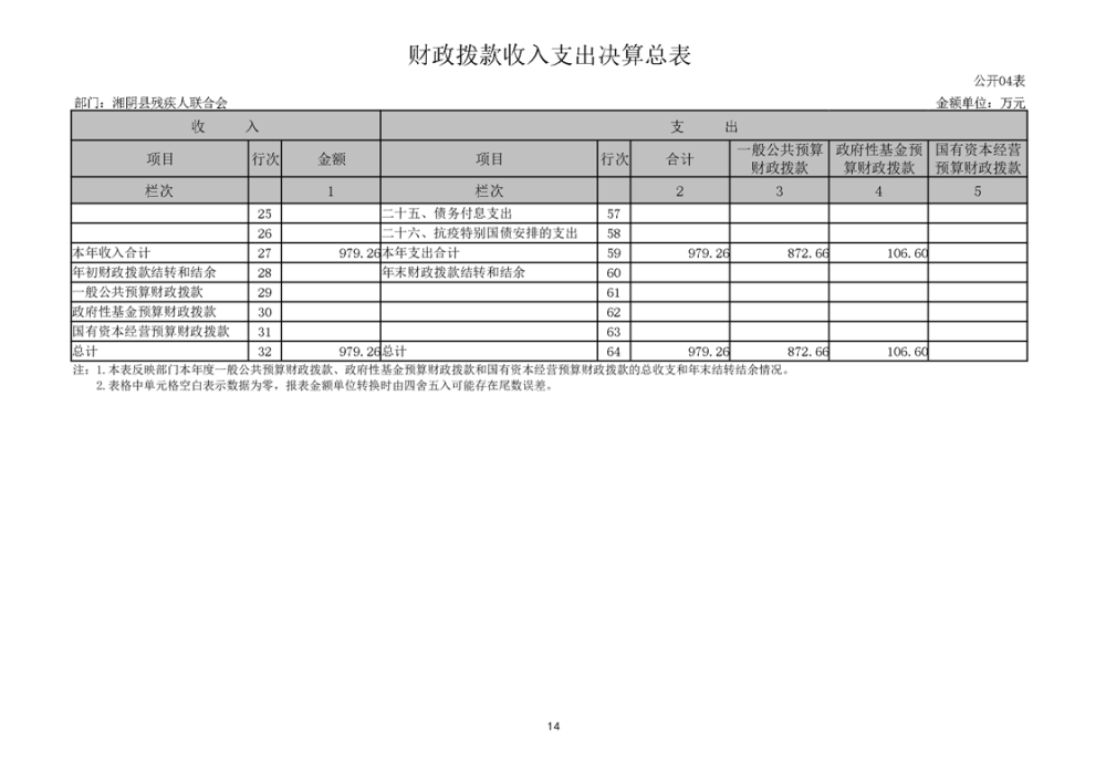 湘阴县残疾人联合会-2023年度-决算公开