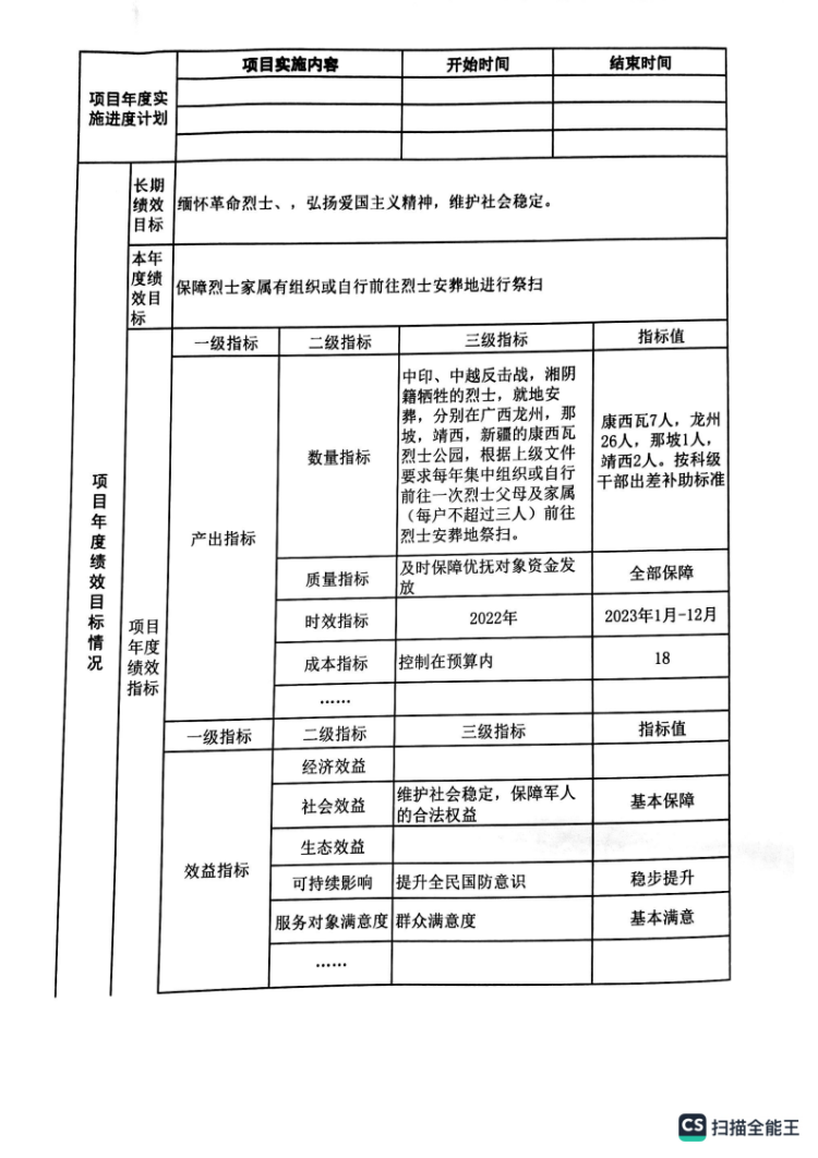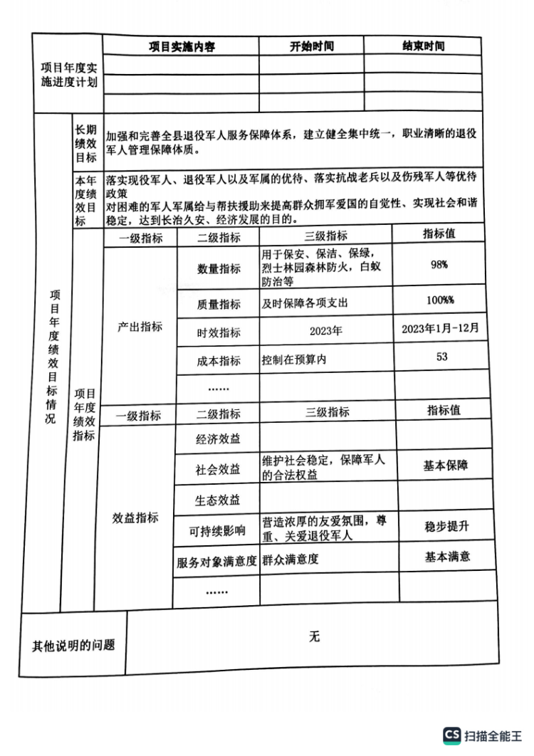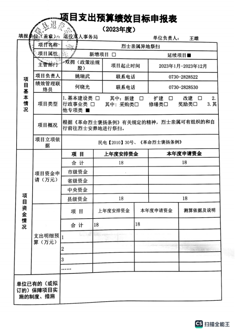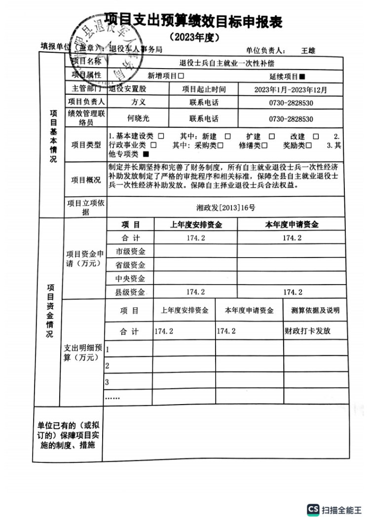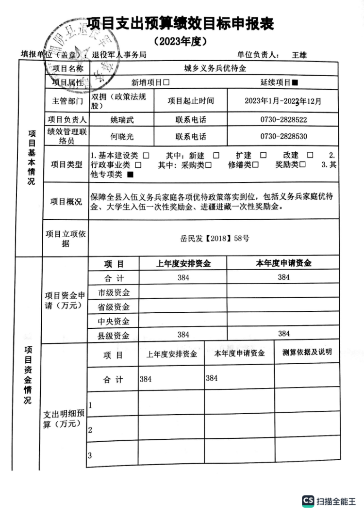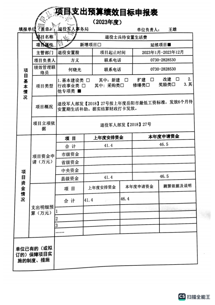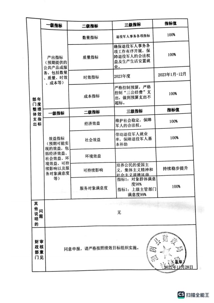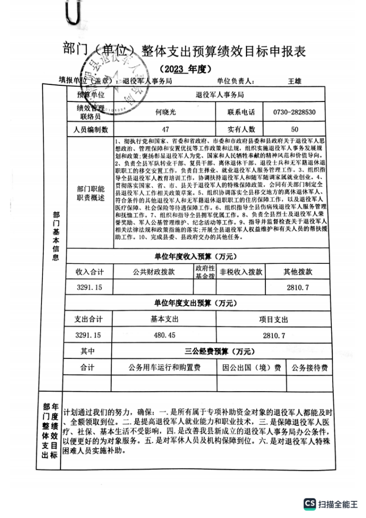 湘阴县退役军人事务局整体支出预算绩效目标申报表