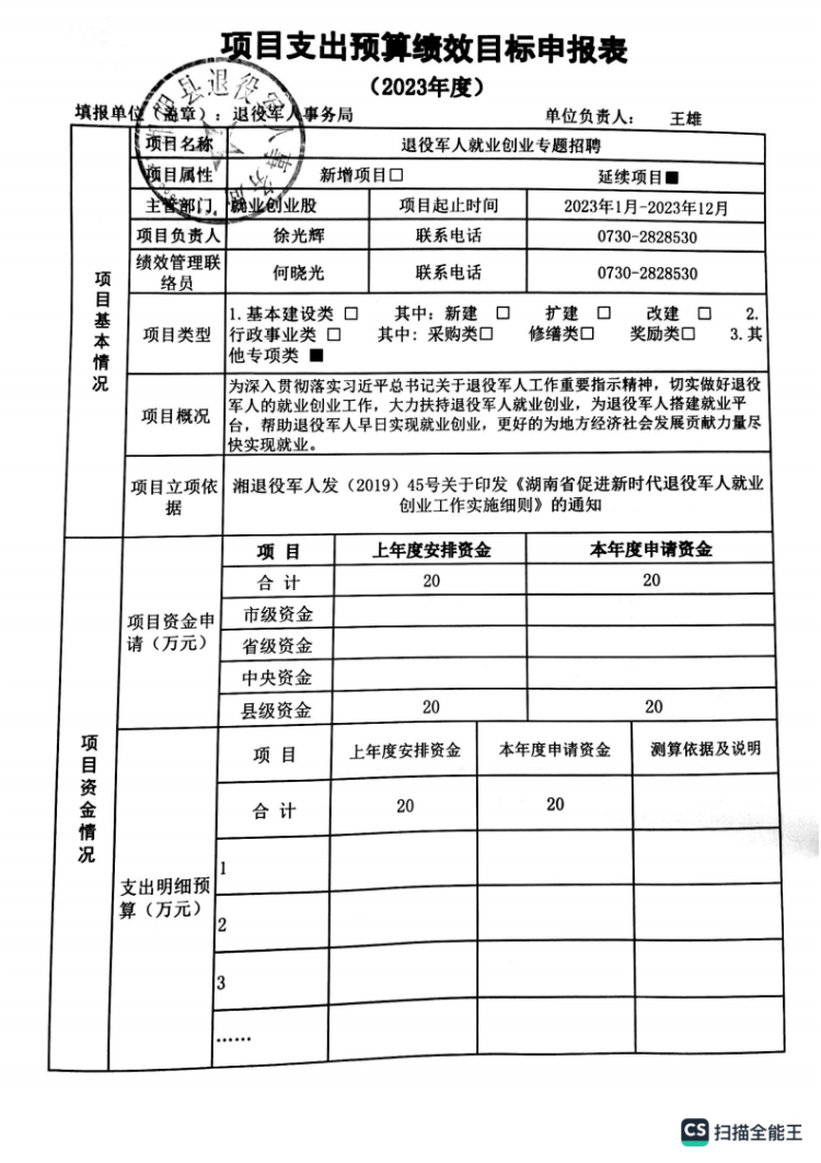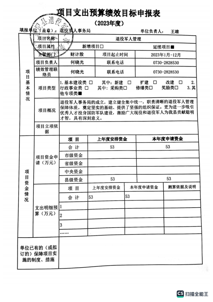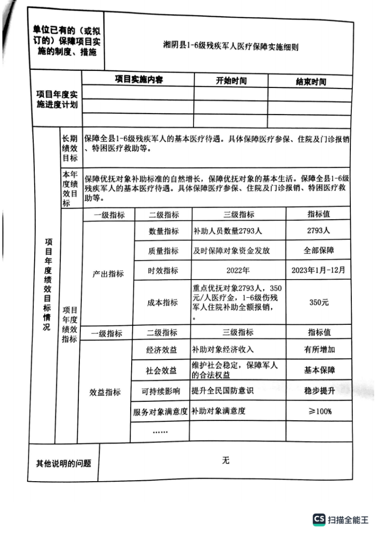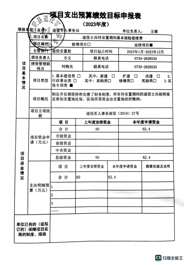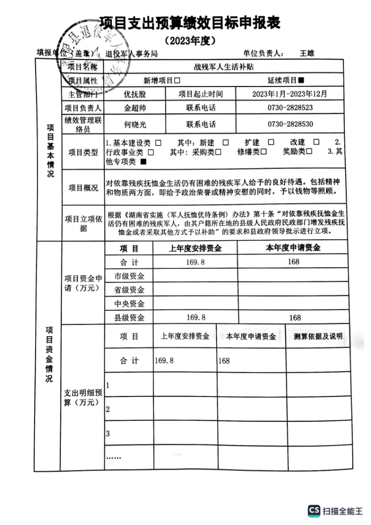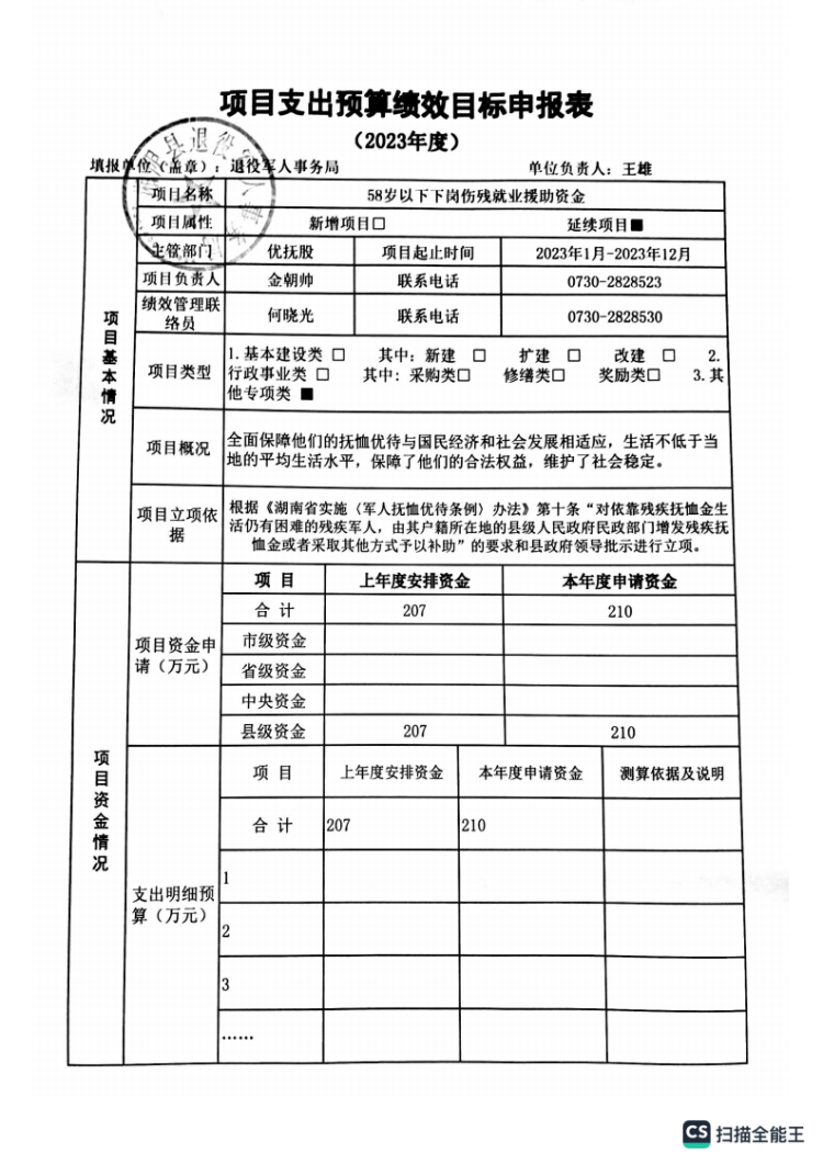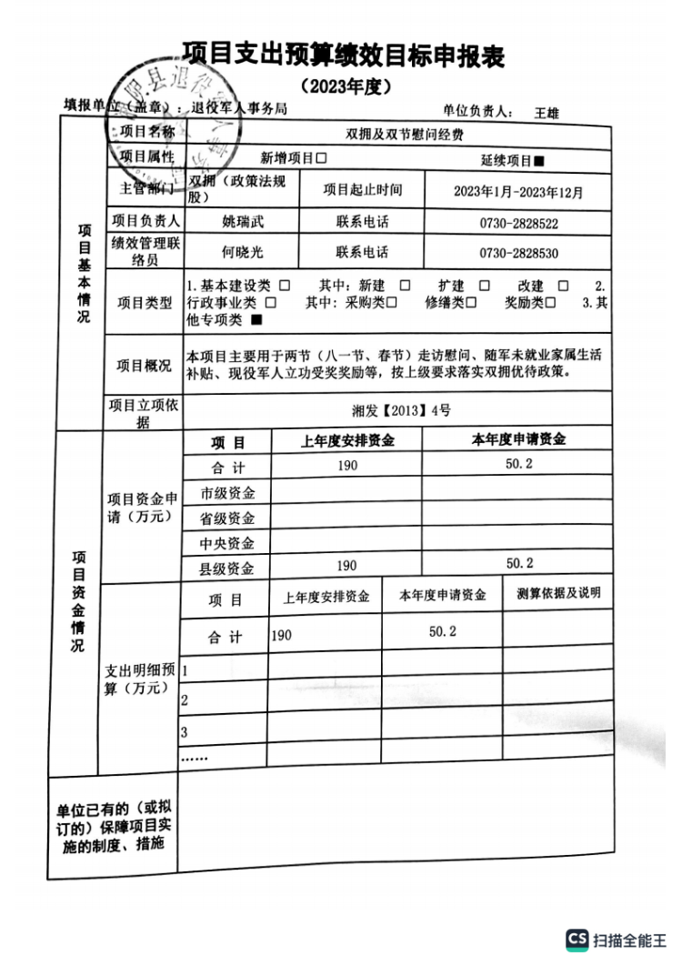 湘阴县退役军人事务局整体支出预算绩效目标申报表