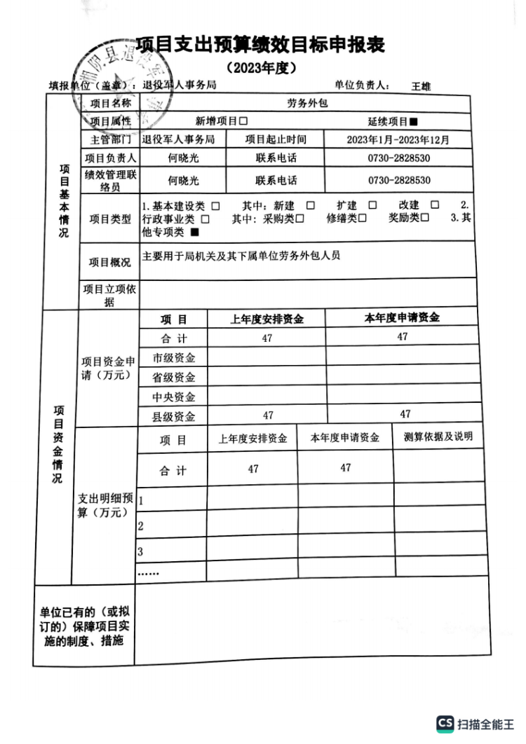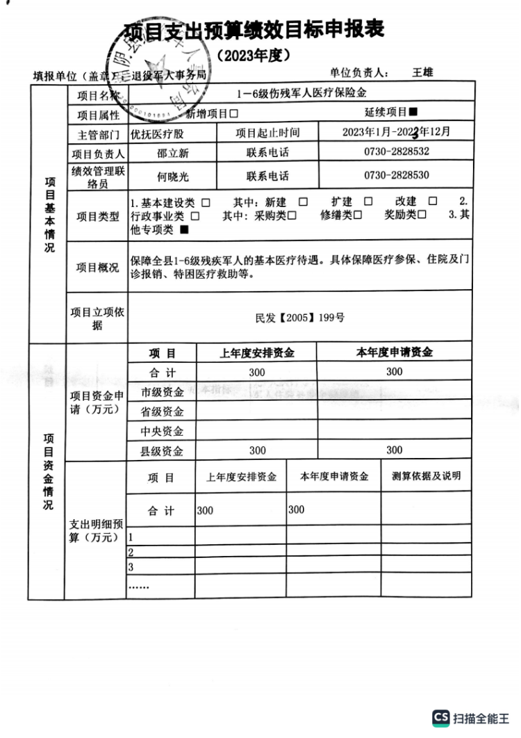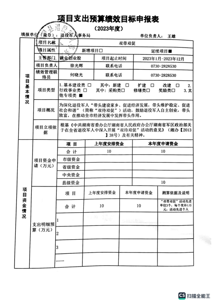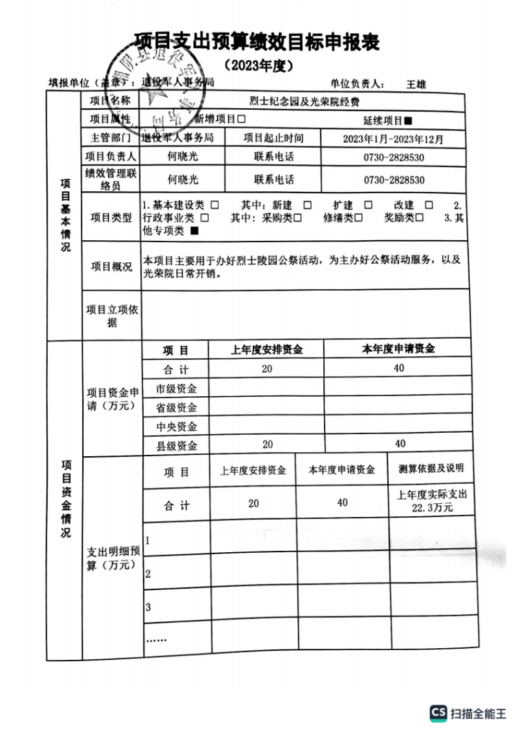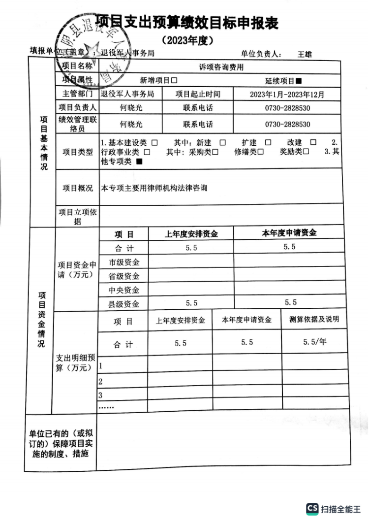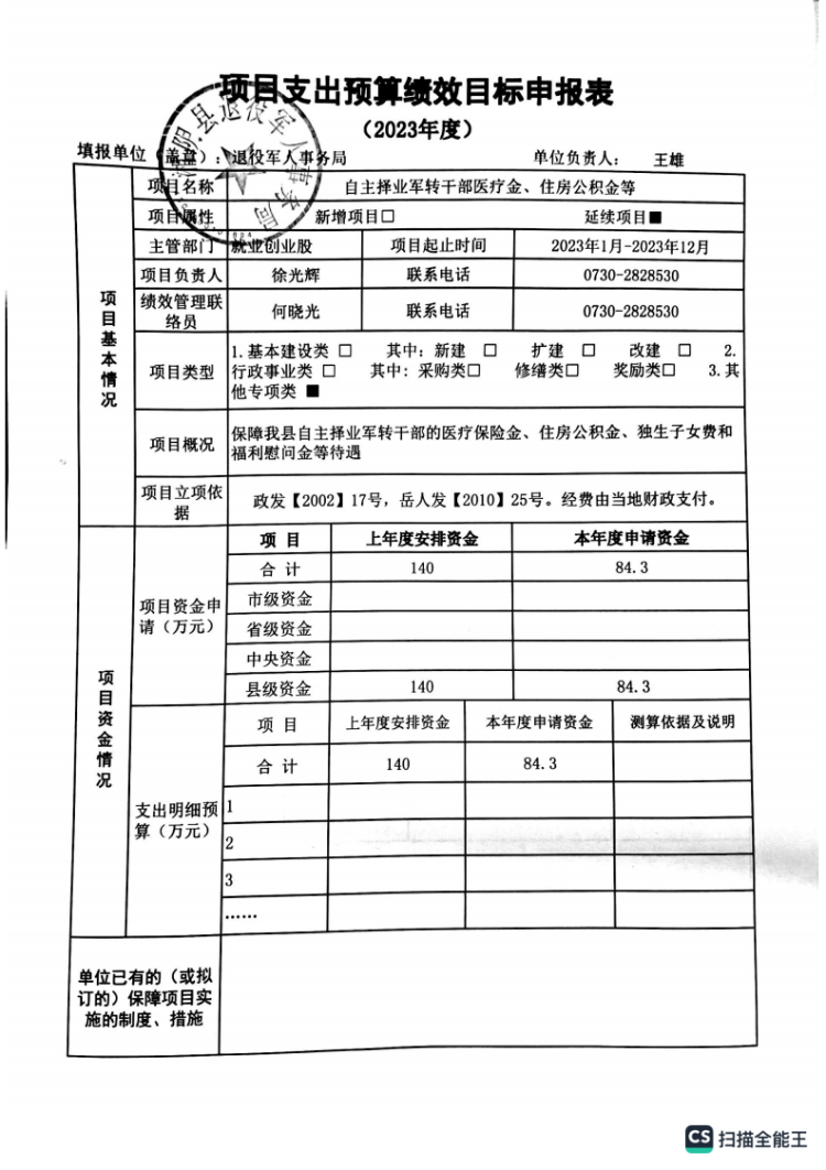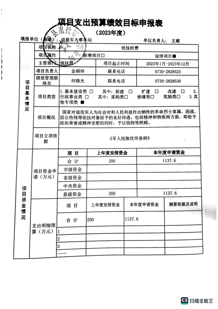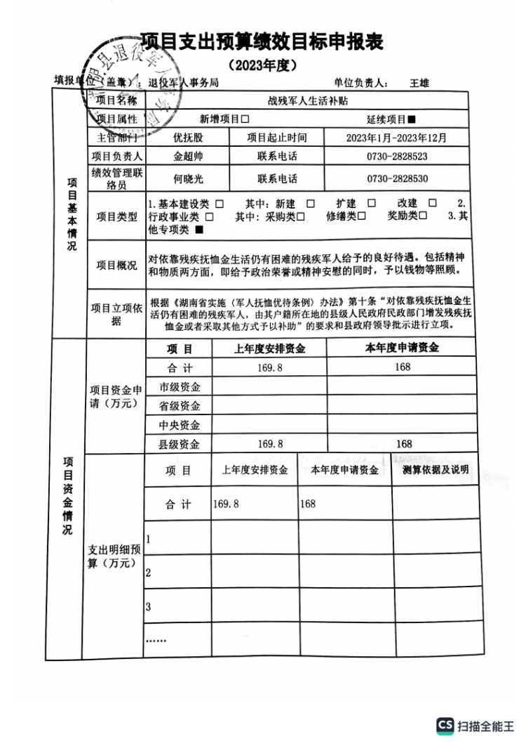 湘阴县退役军人事务局整体支出预算绩效目标申报表