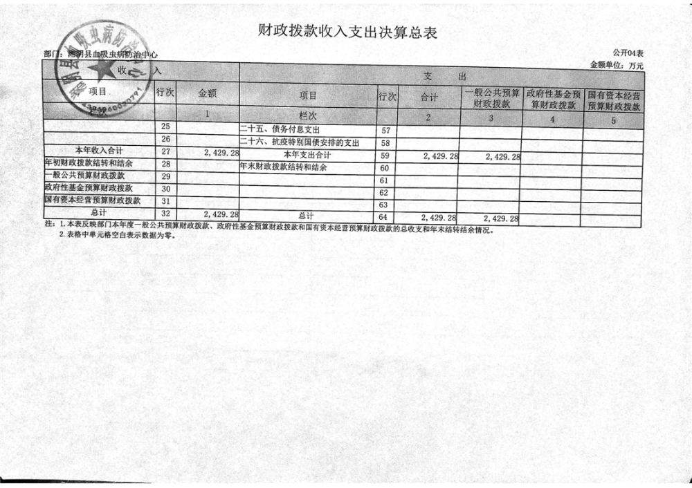 2024年度-湘阴县血吸虫病防治中心-部门决算