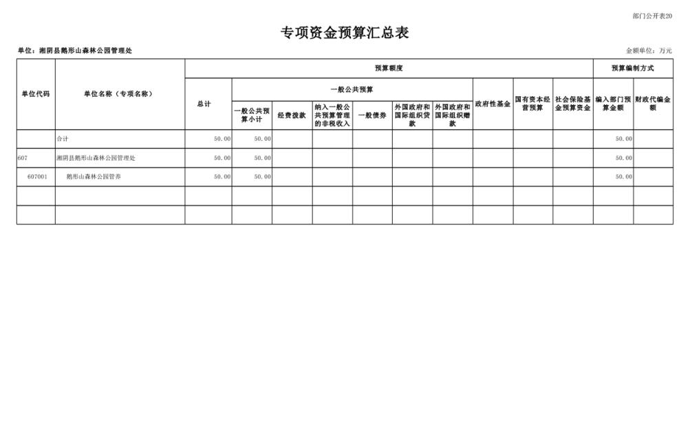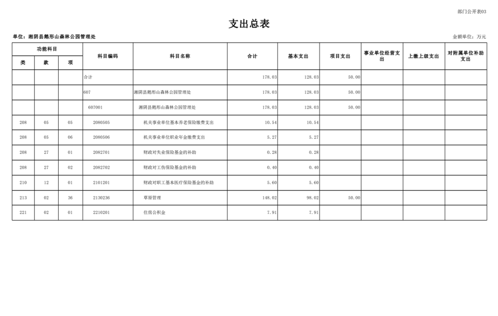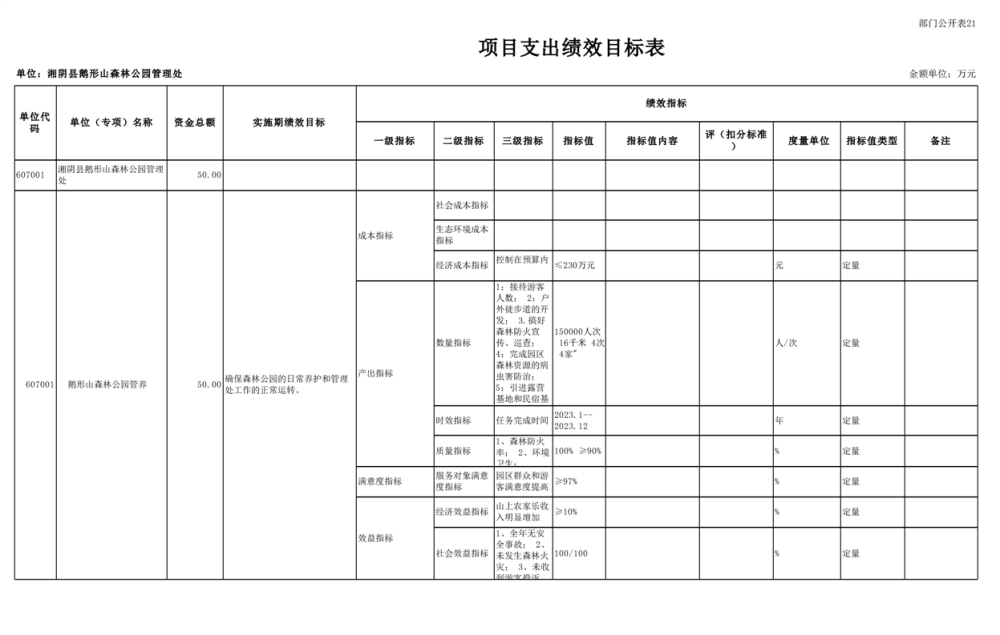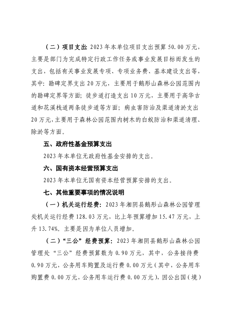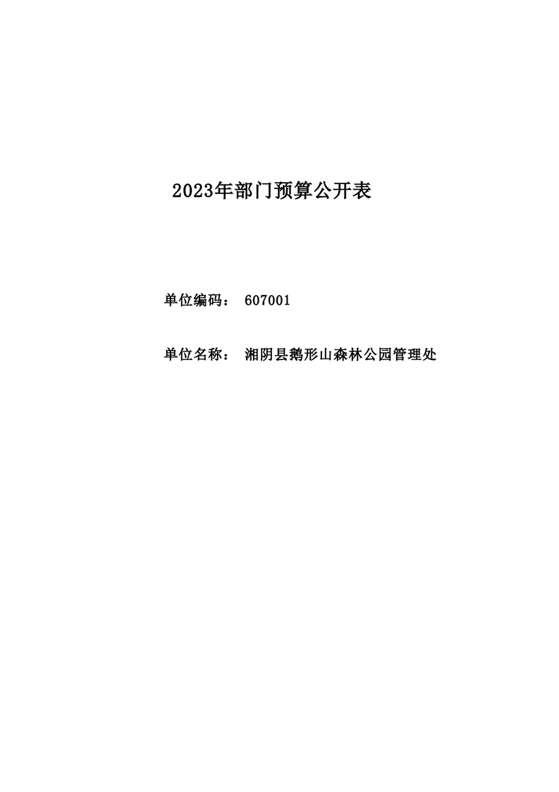 2023年-湘阴县鹅形山森林公园管理处-部门预算公开