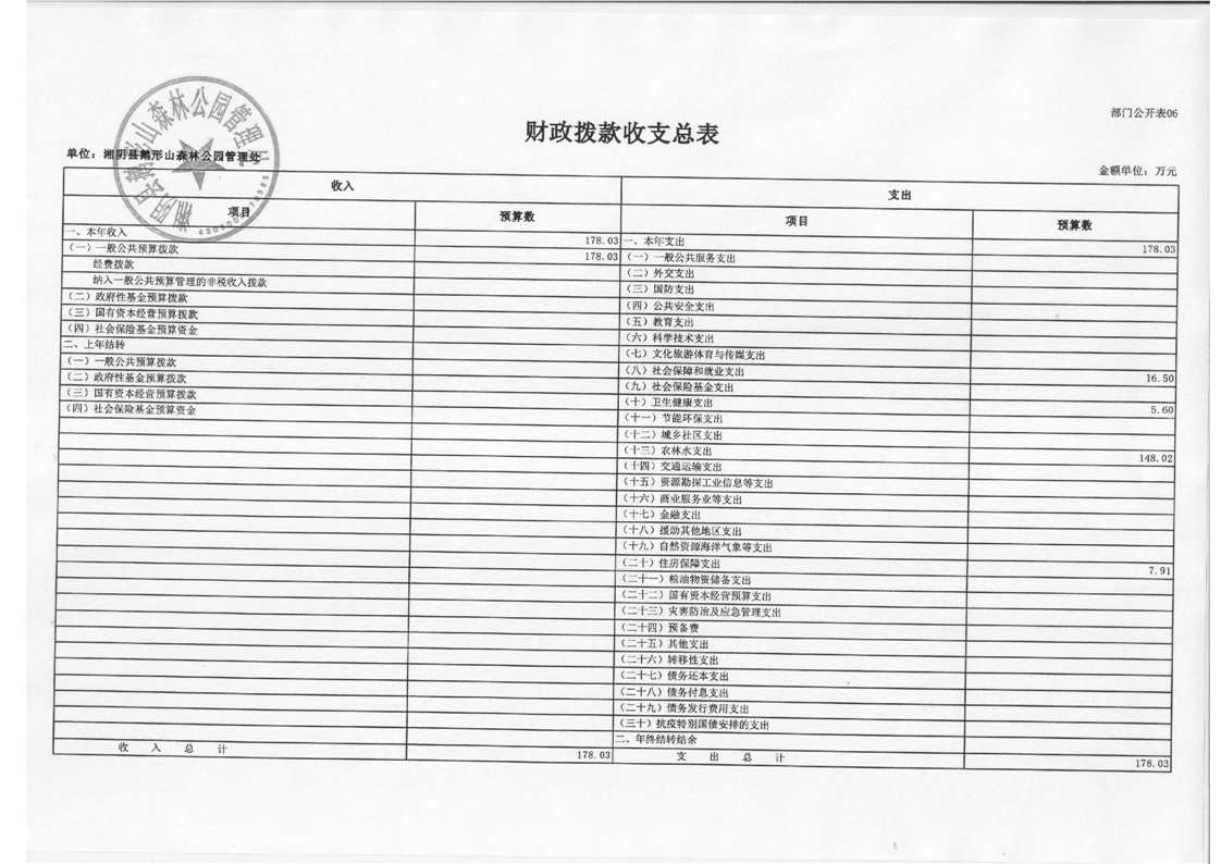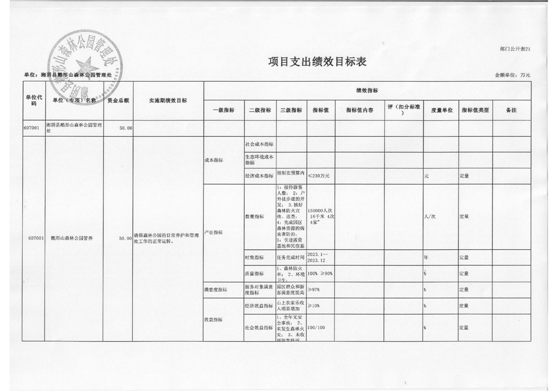 湘阴县鹅形山森林公园管理处-2023年度-部门预算公开