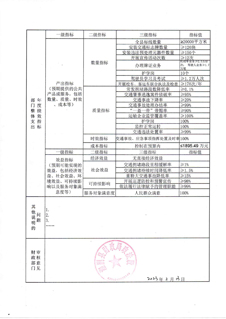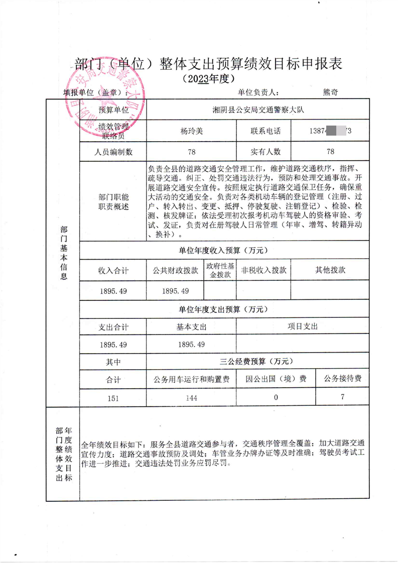 2023年度-湘阴县交警大队-整体支出预算绩效目标申报表