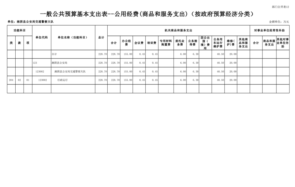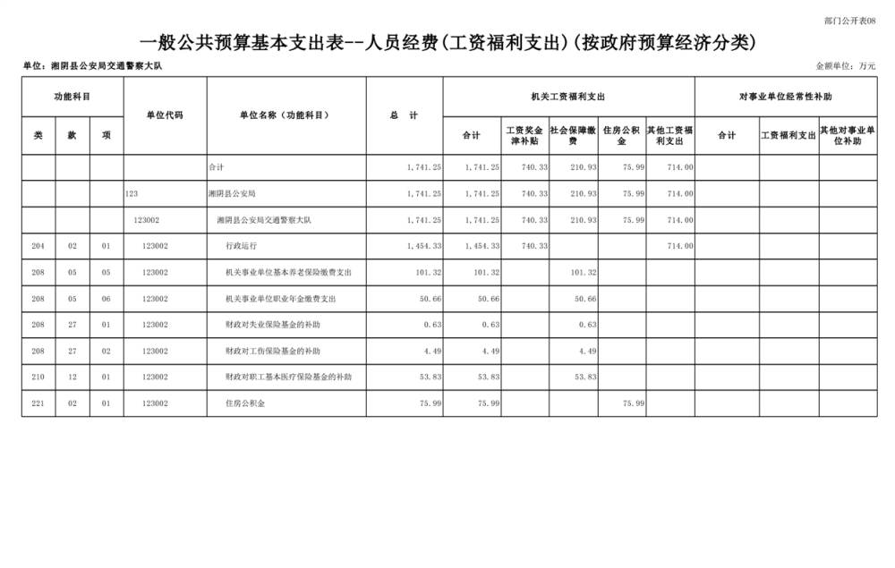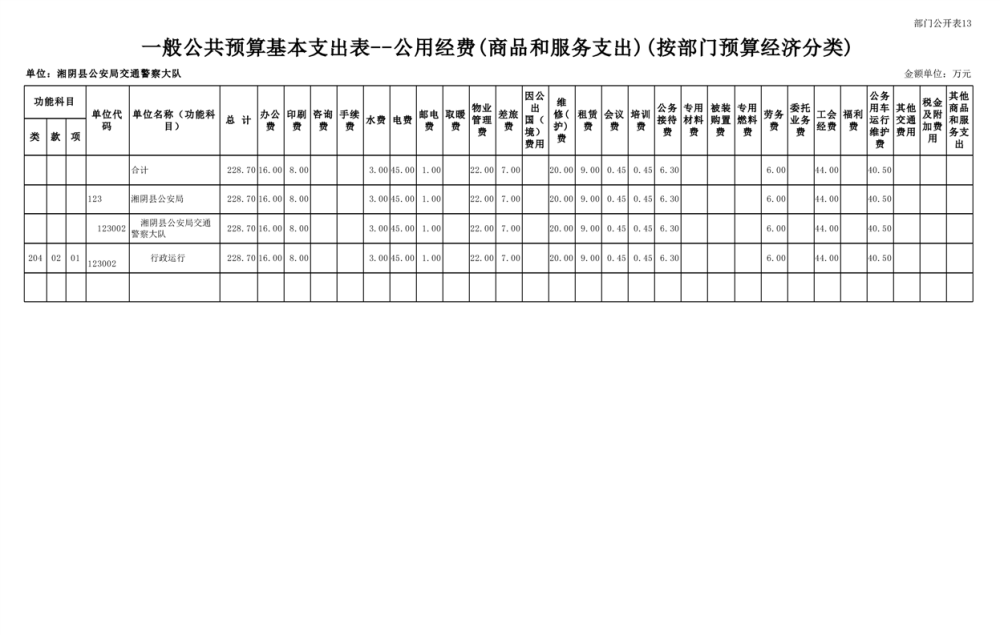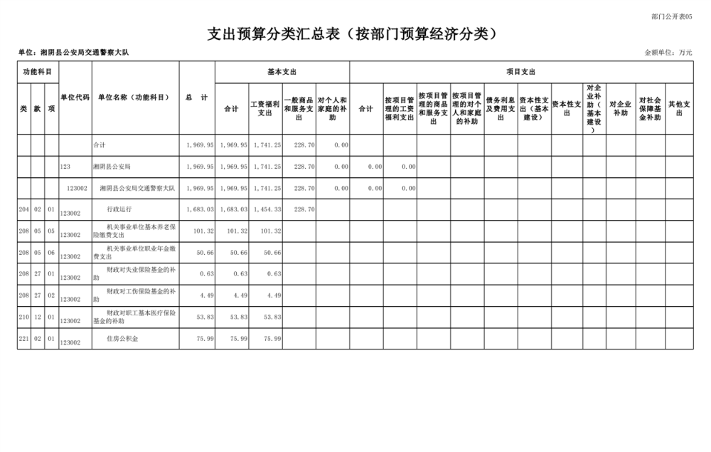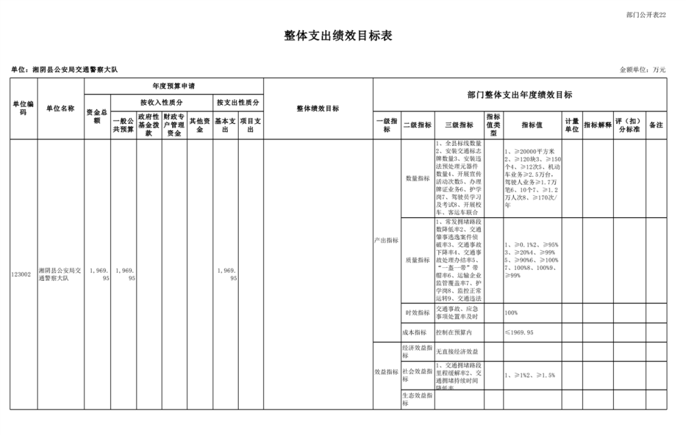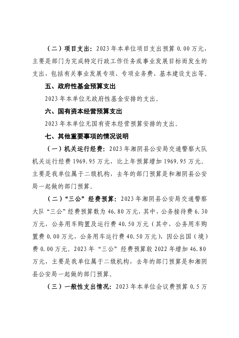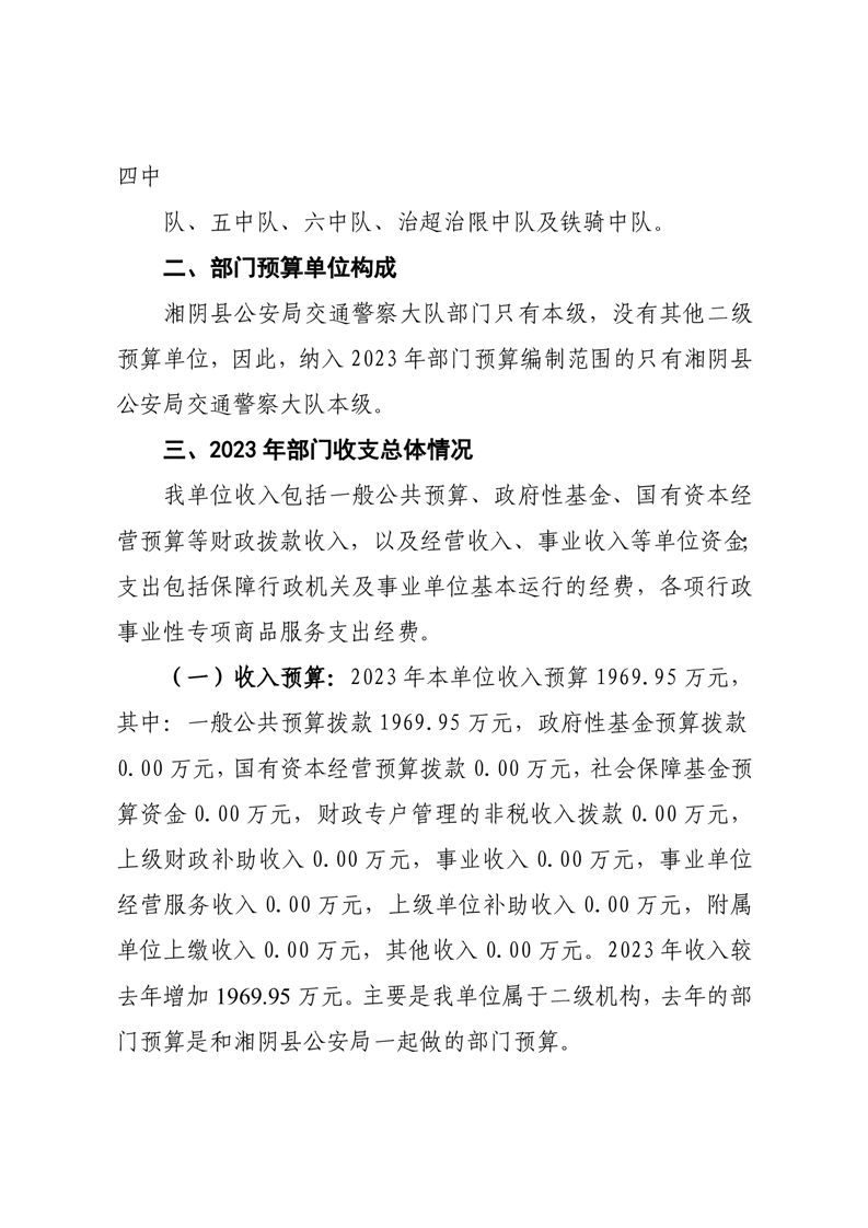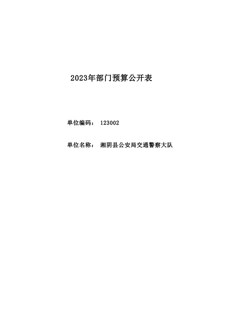 湘阴县公安局交通警察大队-2023年-部门预算公开