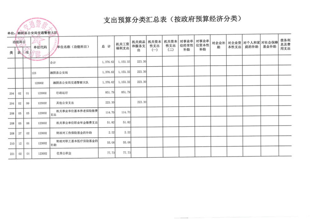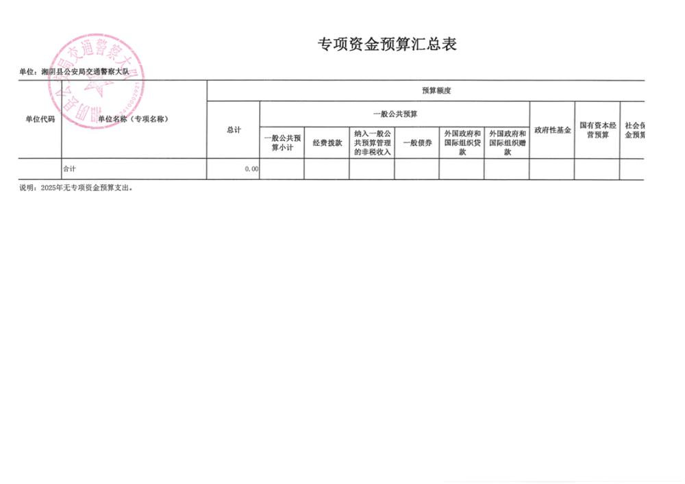 2025年-湘阴县公安局交通警察大队-部门预算公开
