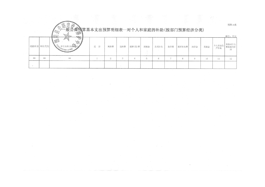 19、一般公共预算基本支出预算明细表-对个人和家庭的补助(按部门预算经济分类)