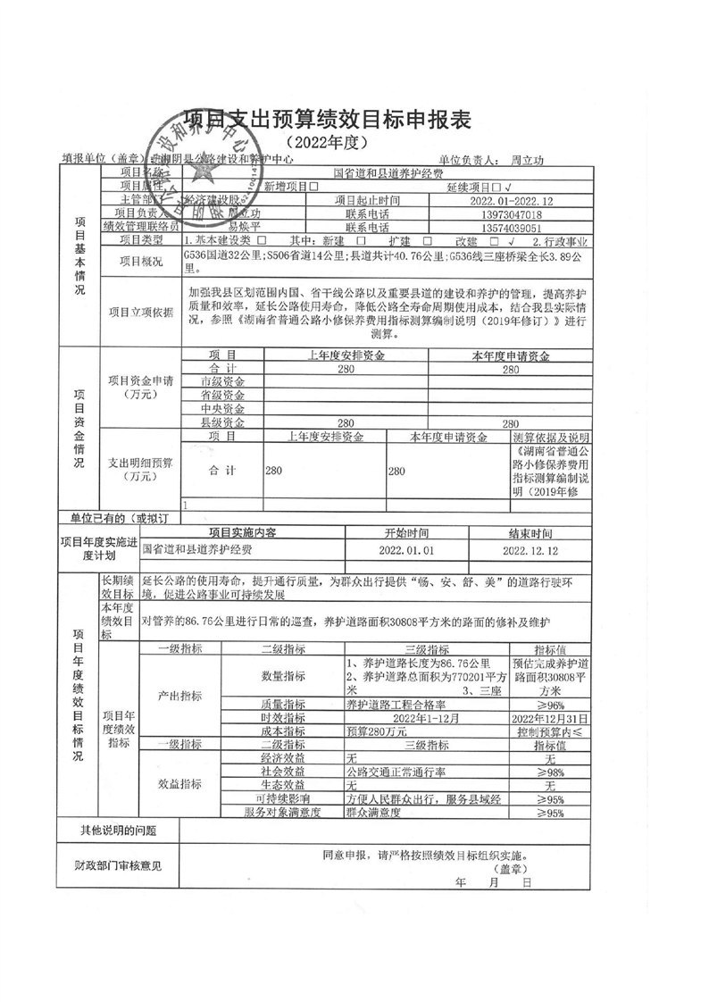 (二)项目支出:2022年项目支出年初预算数为658万元,是指单位为完成特定行政工作任务或事业发展目标而发生的支出,主要为:国省干道和县道养护经费280万元;芙蓉北路和G240养护经费378万元。