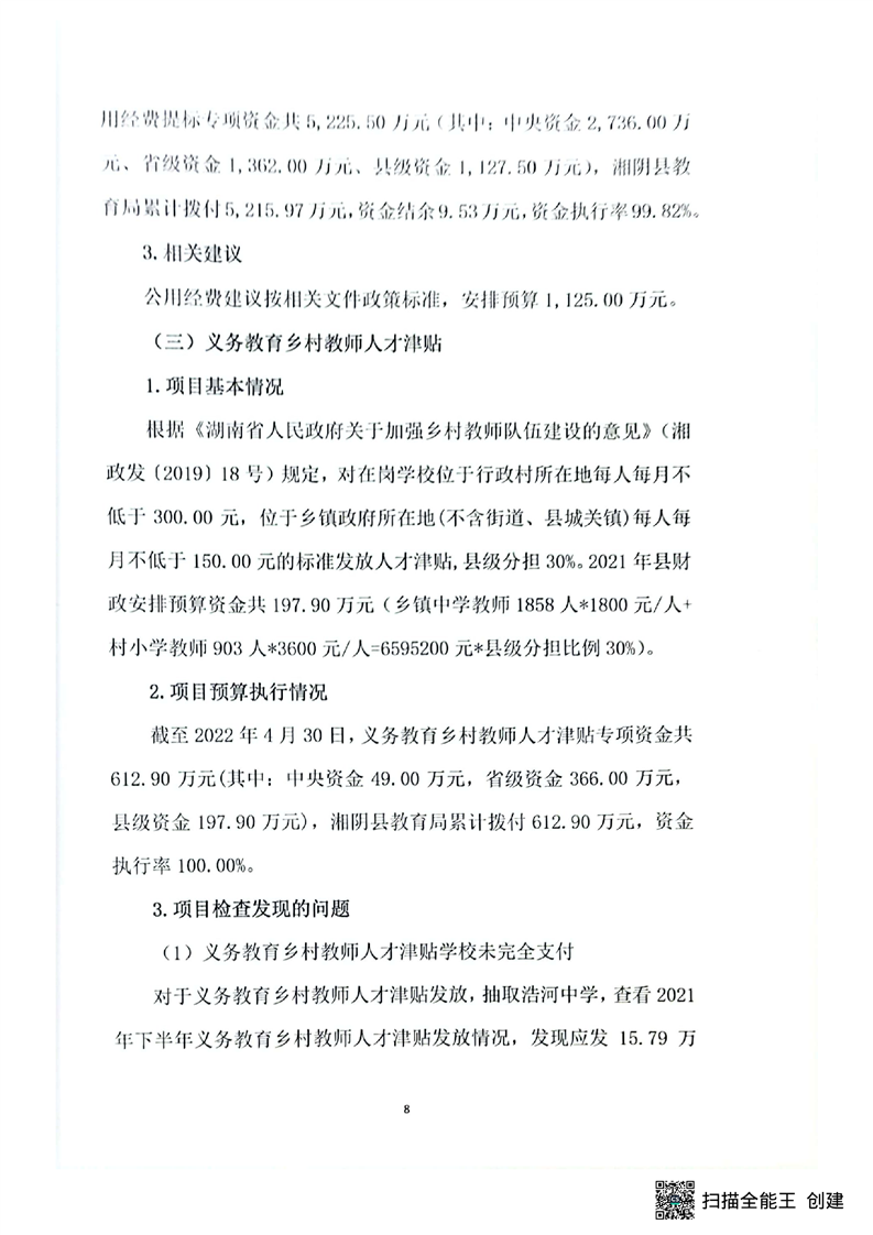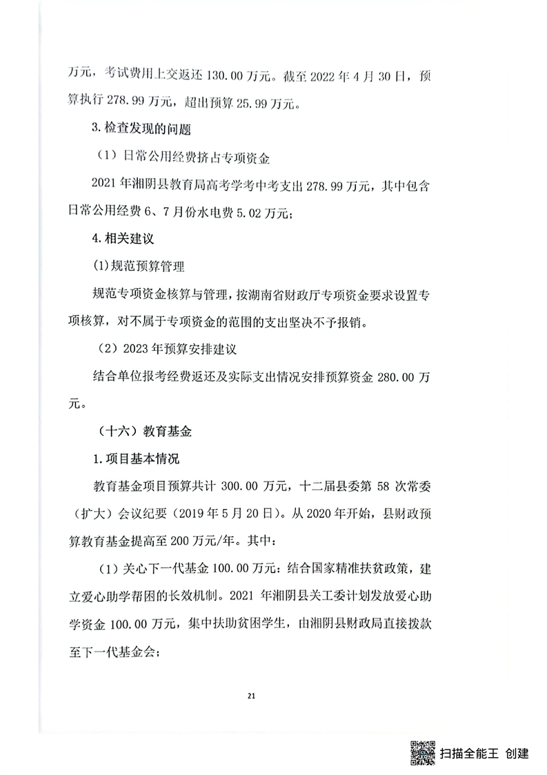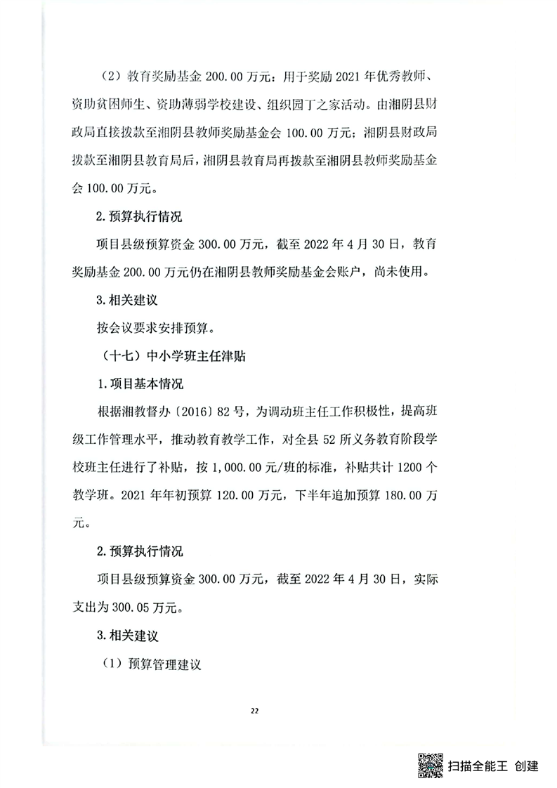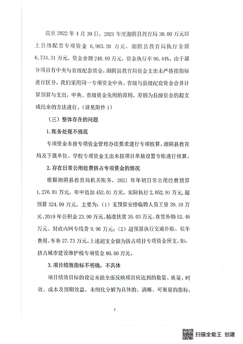 2021年度湘阴县教育局县级配套项目专项资金绩效评价报告
