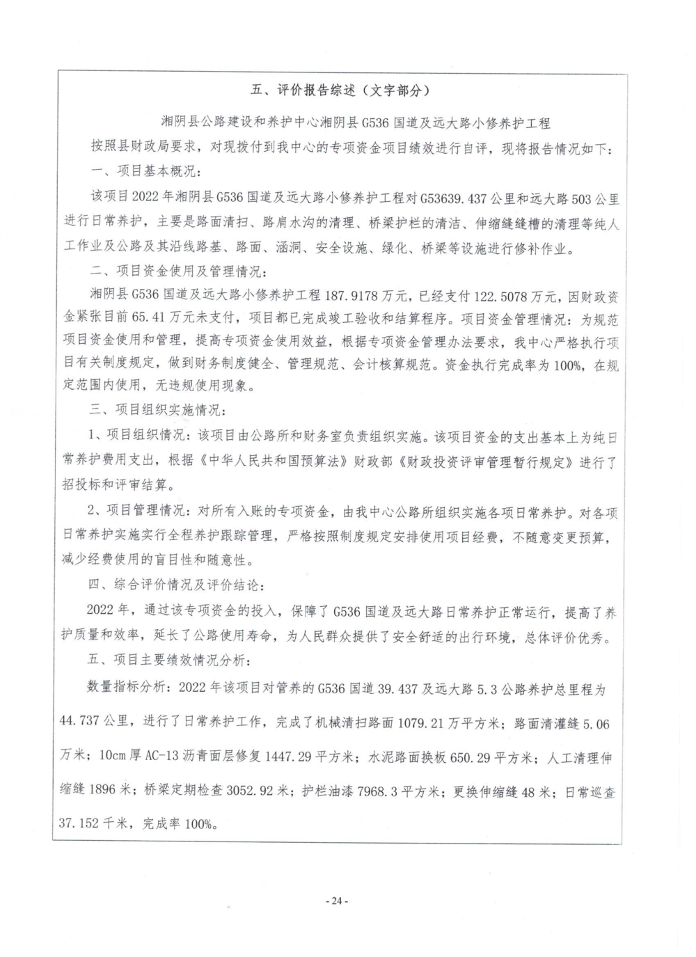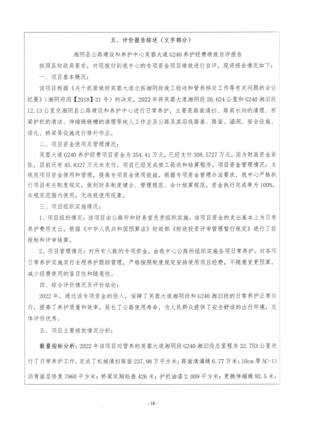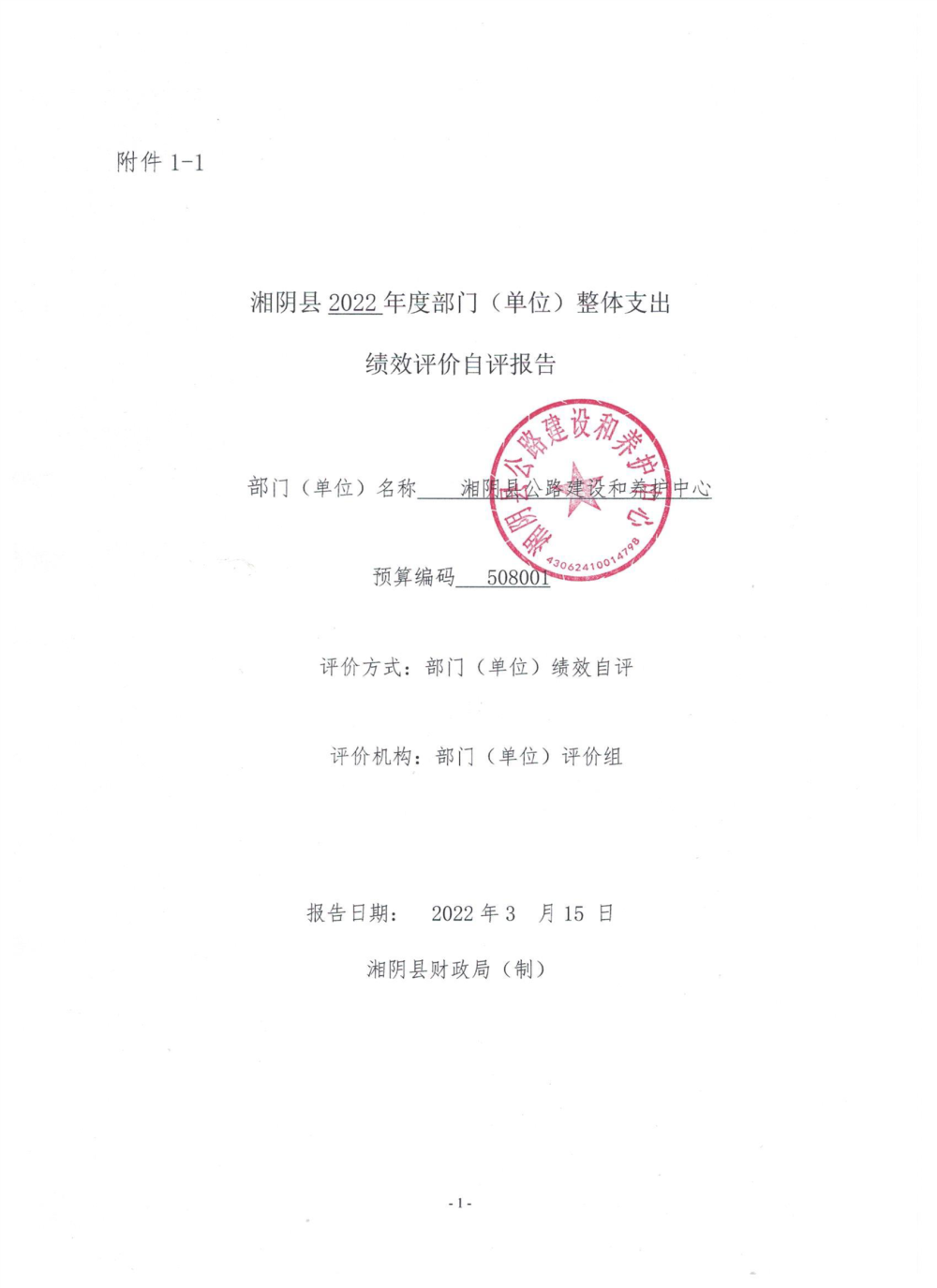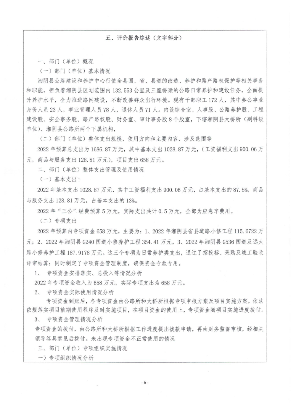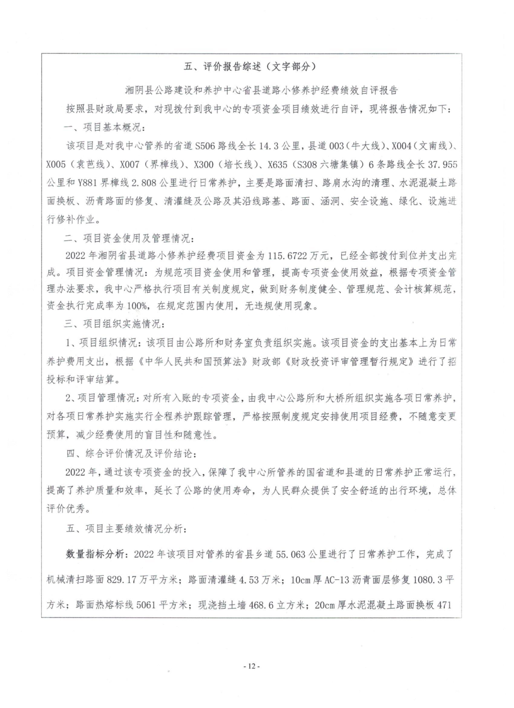 湘阴县公路建设和养护中心-2022年度-绩效评价自评报告