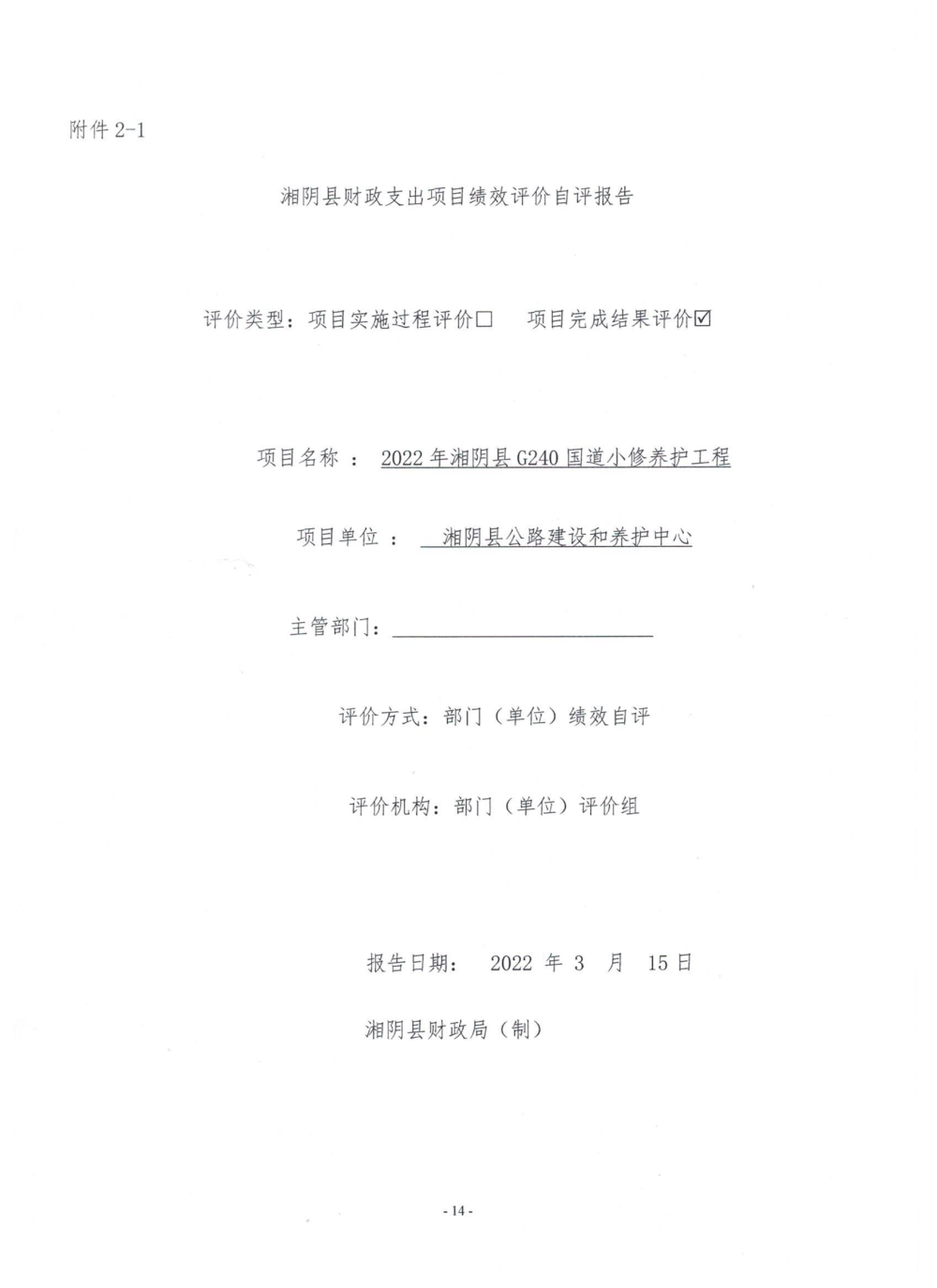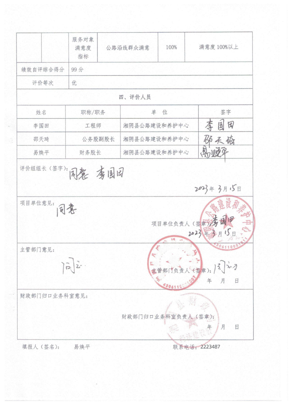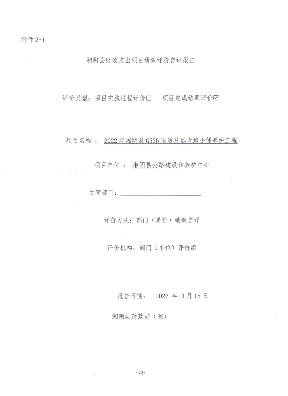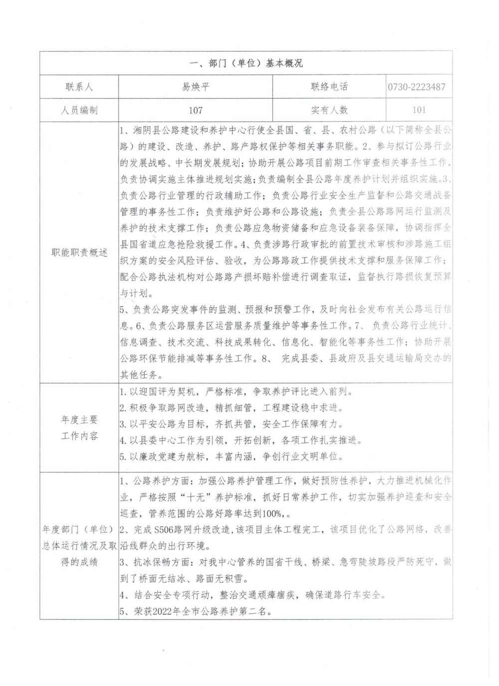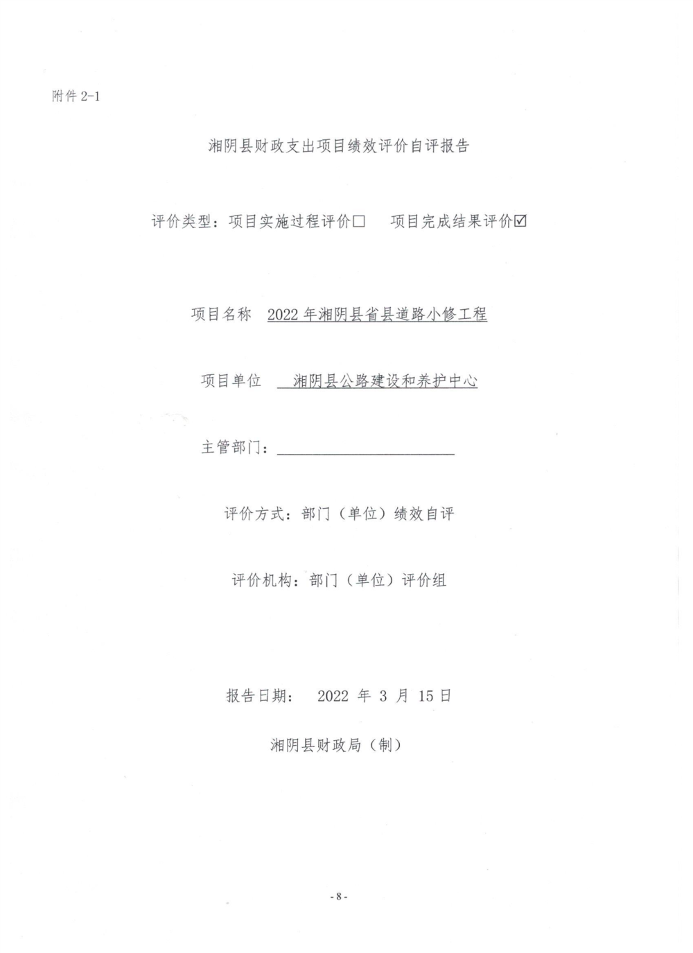 湘阴县公路建设和养护中心-2022年度-绩效评价自评报告