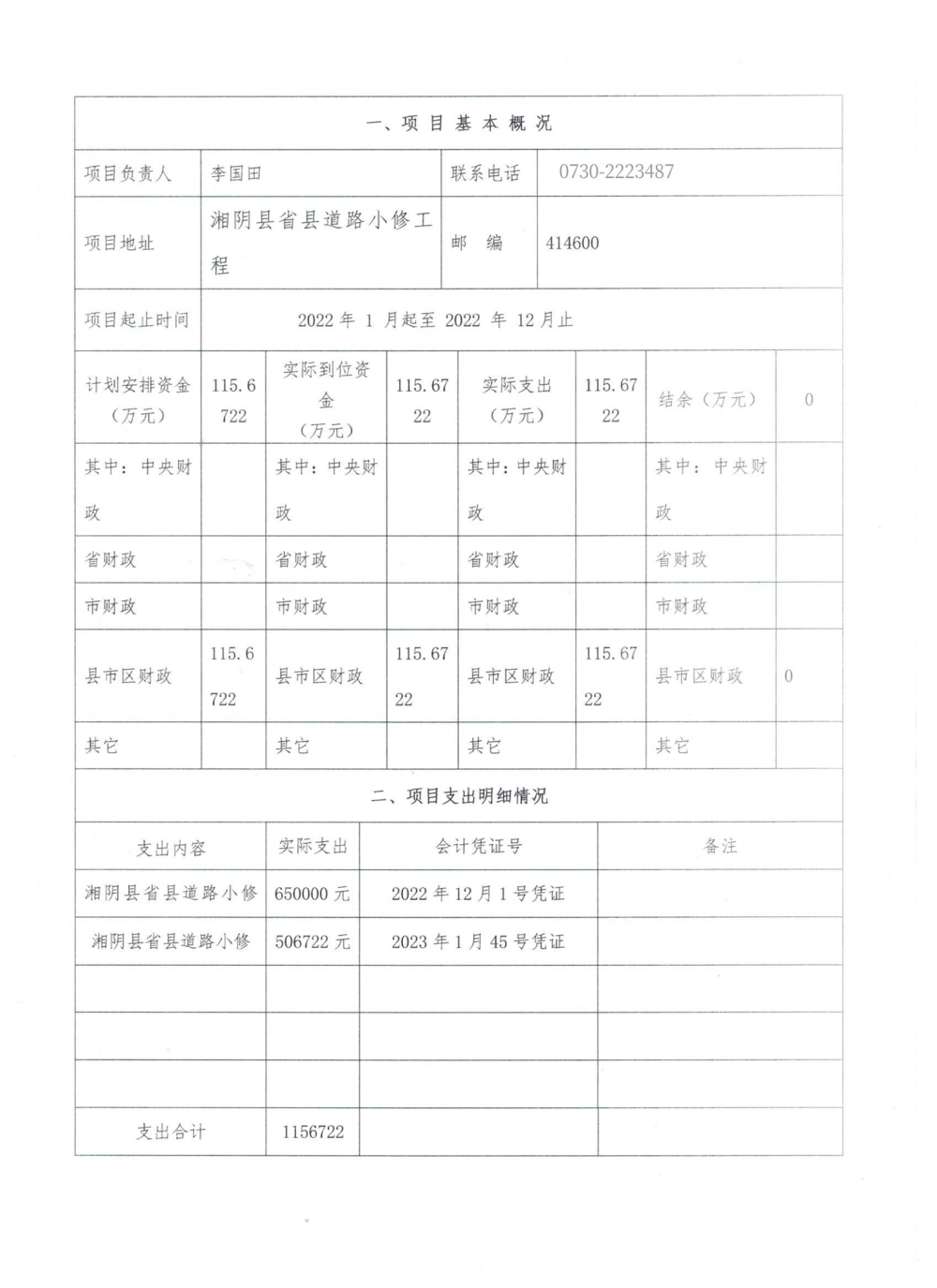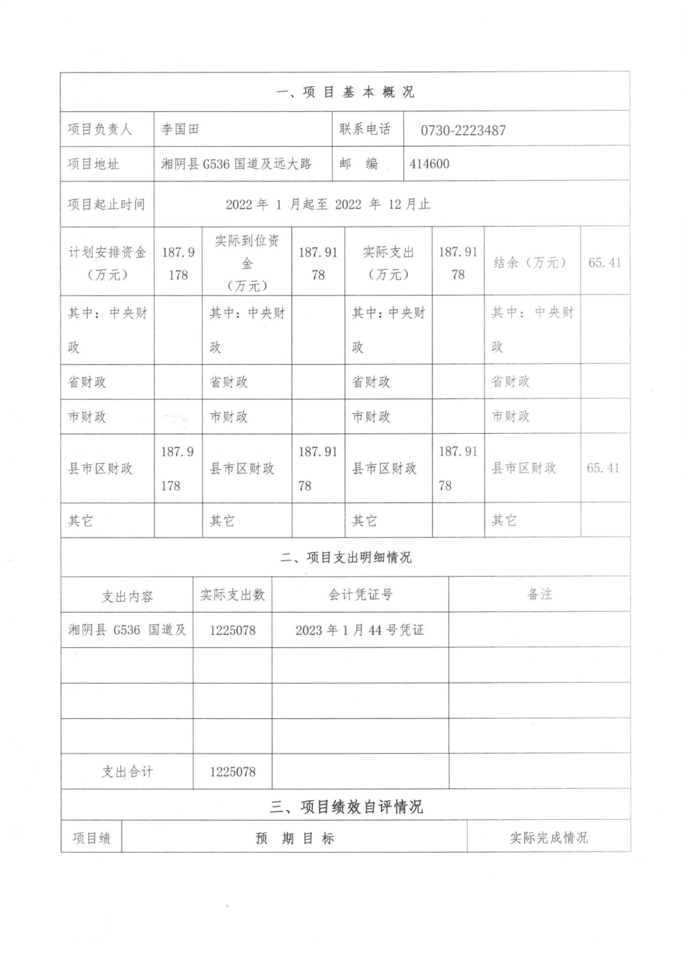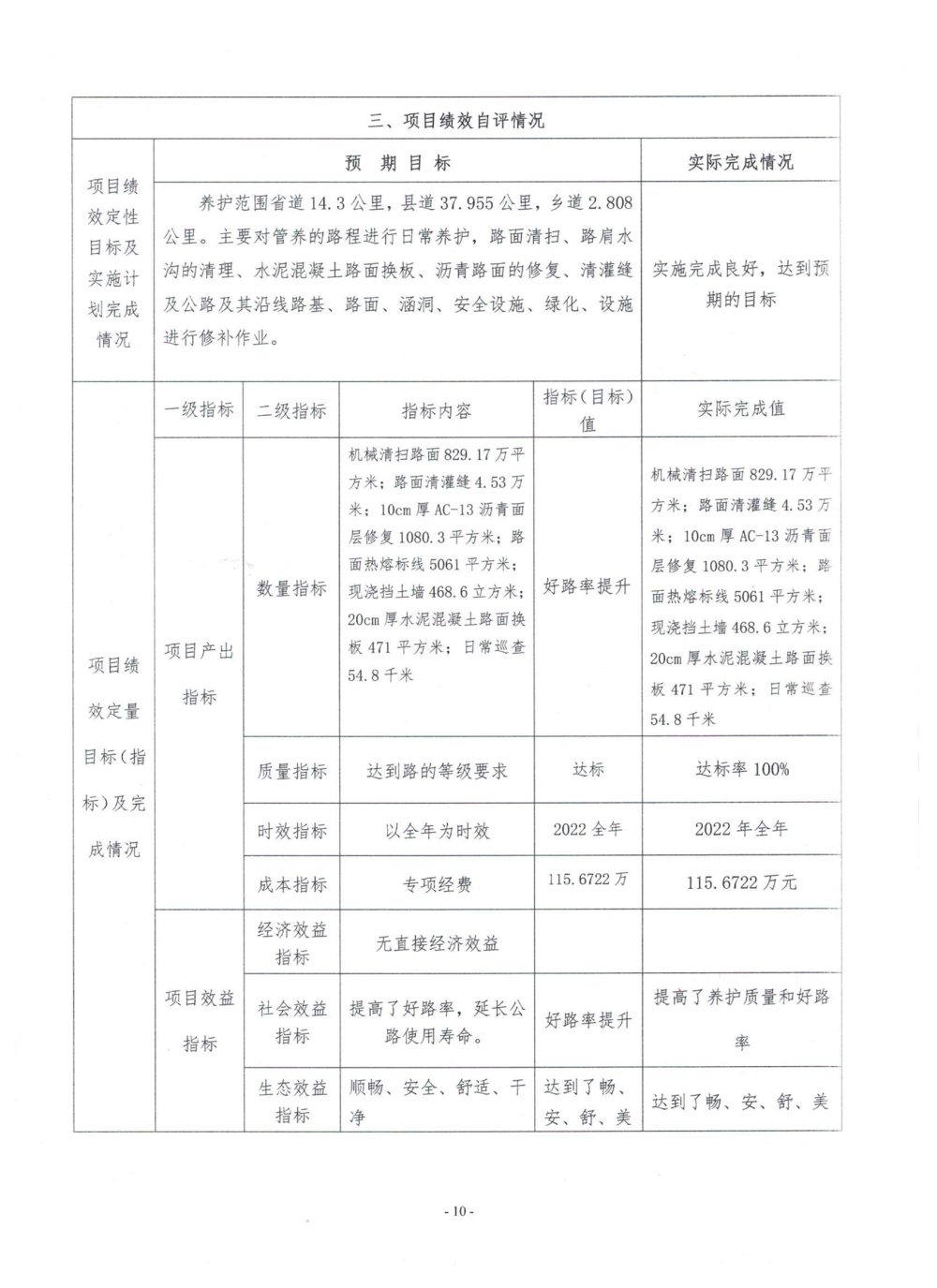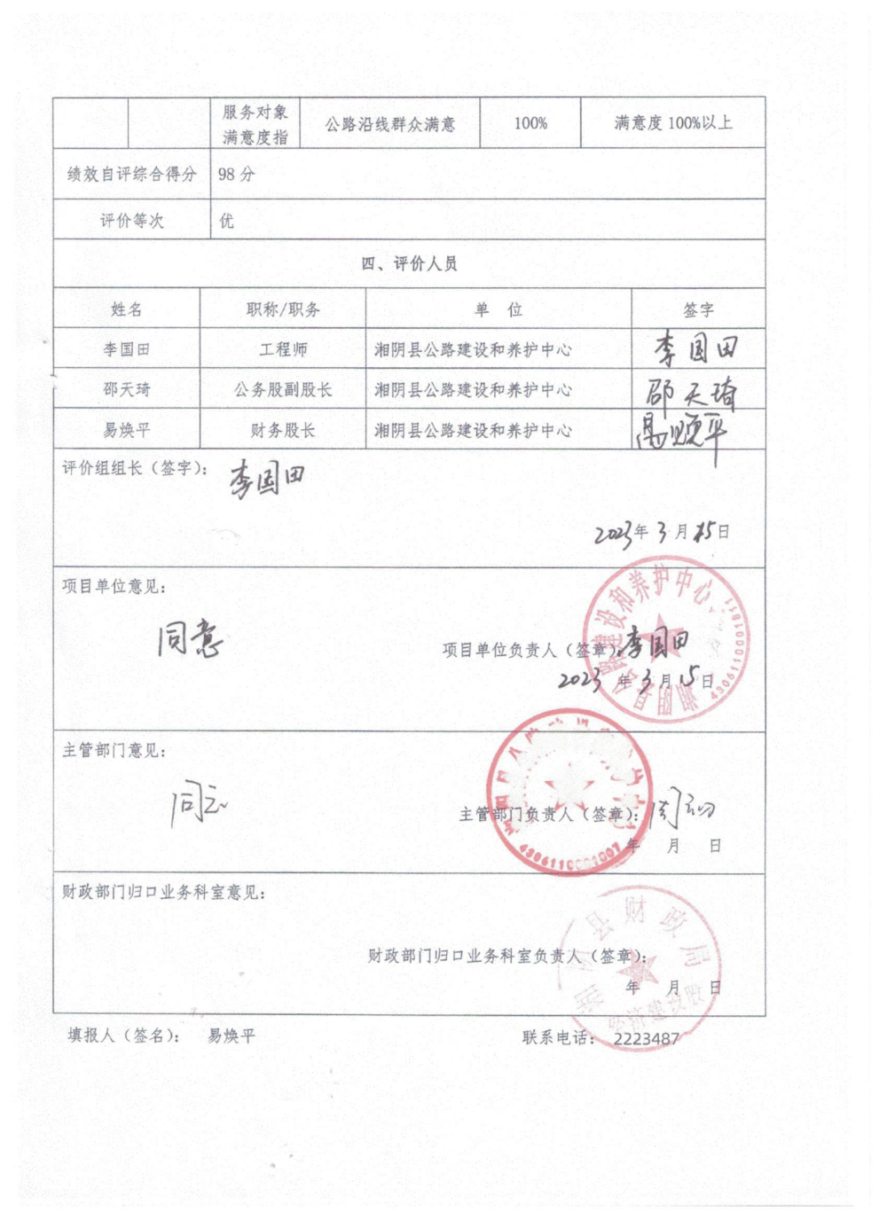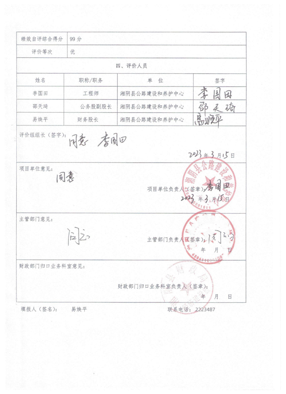 湘阴县公路建设和养护中心-2022年度-绩效评价自评报告