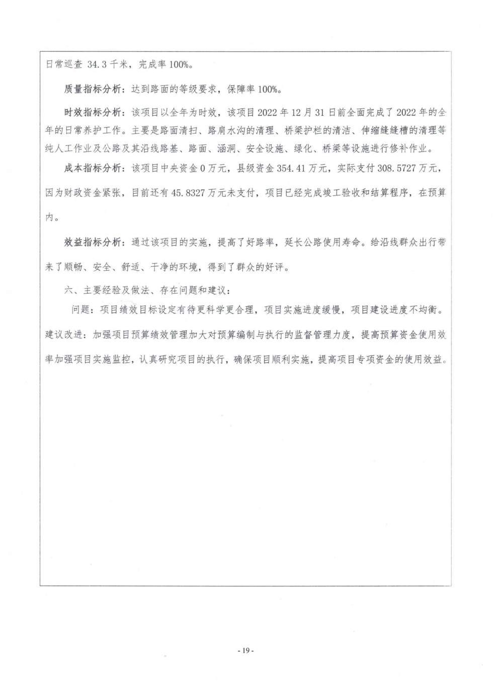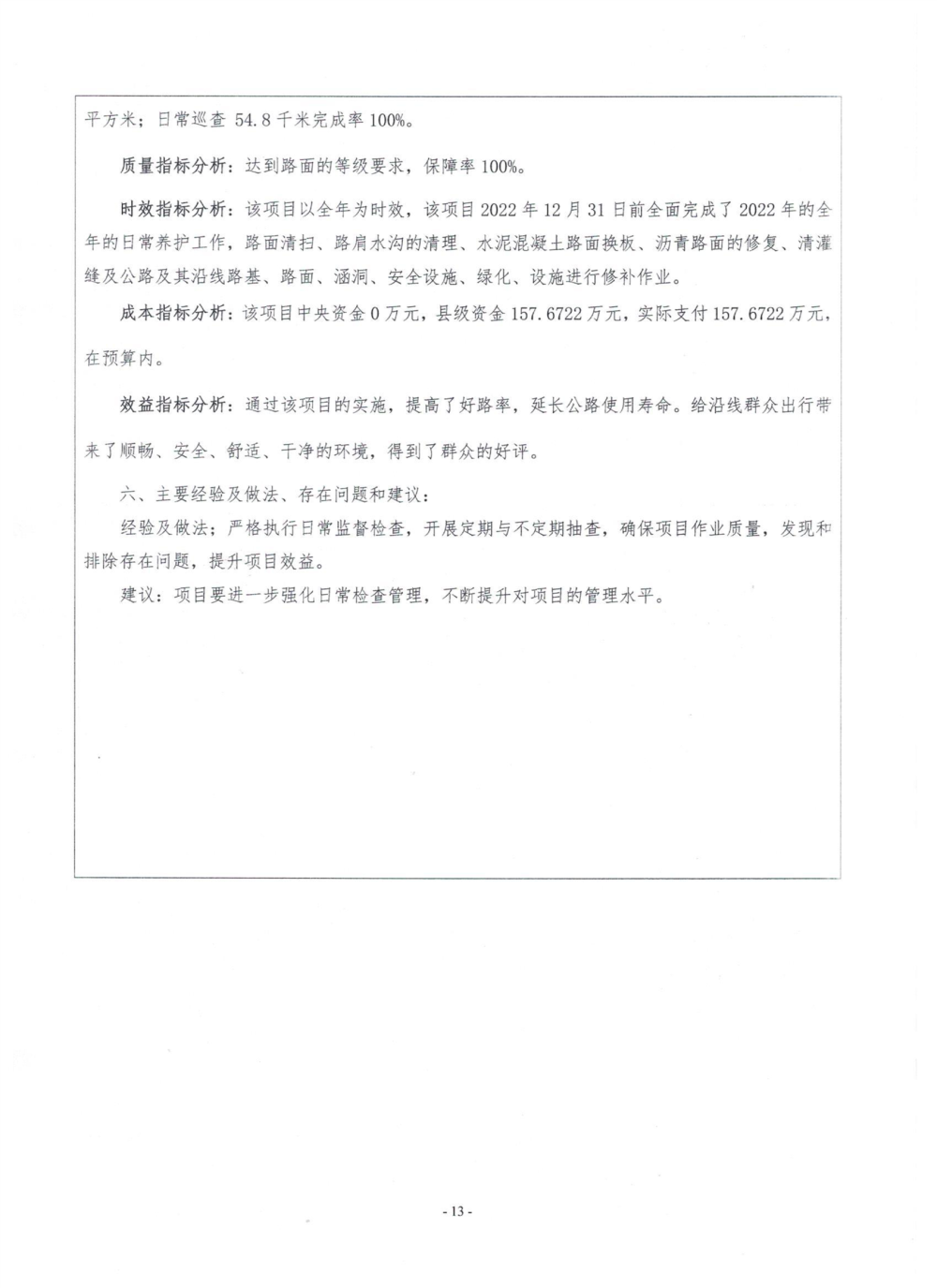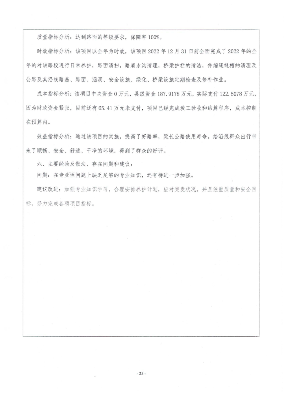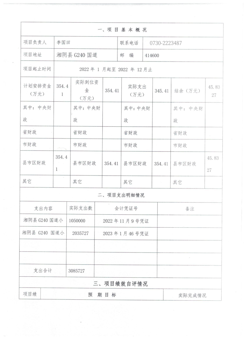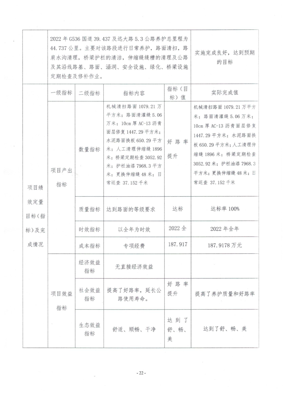 湘阴县公路建设和养护中心-2022年度-绩效评价自评报告