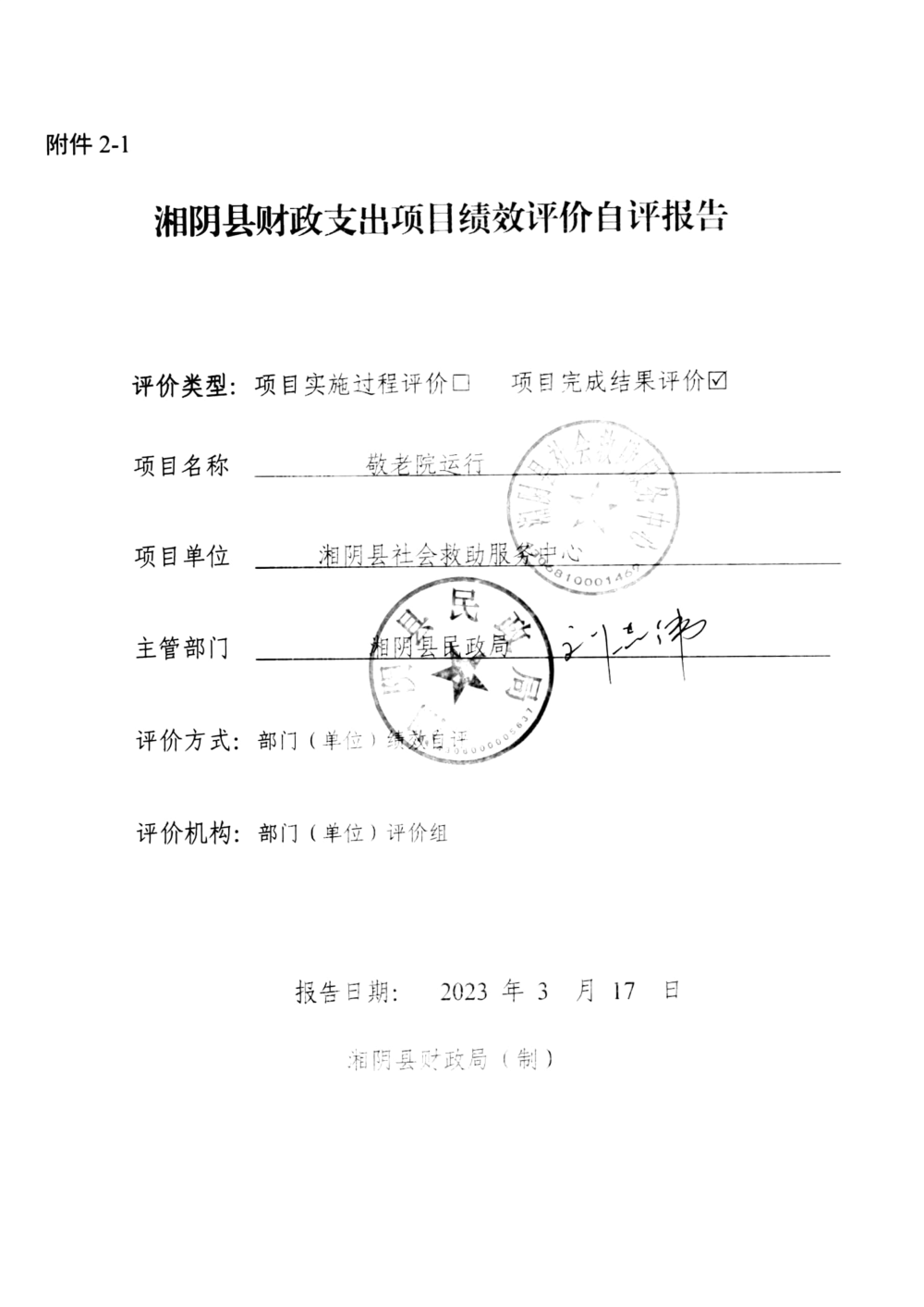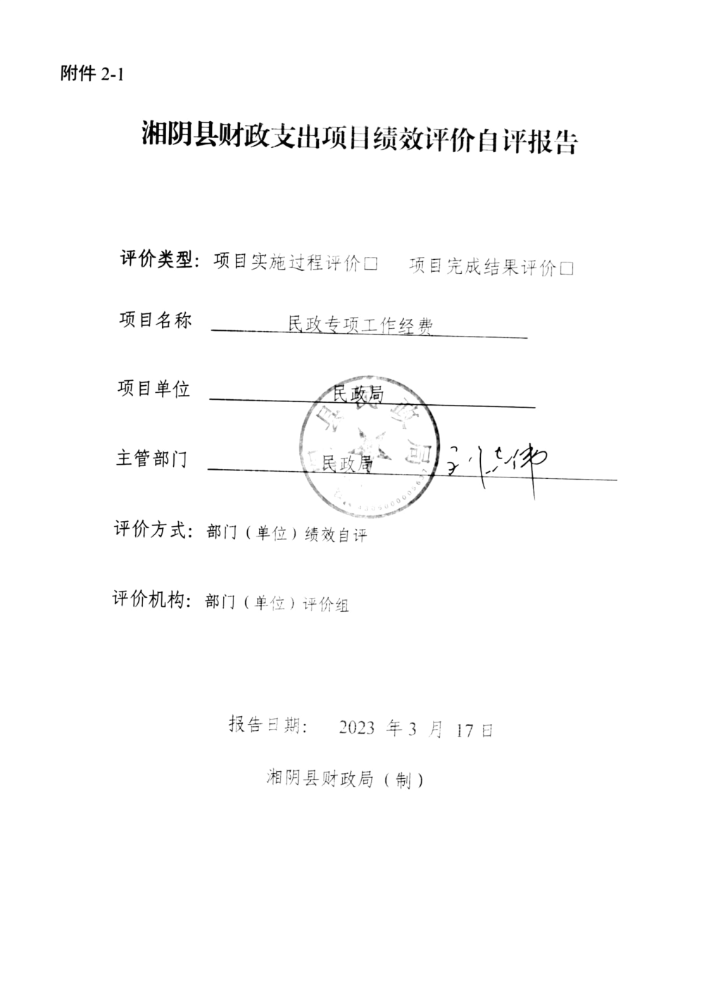 湘阴县民政局-2022年度-绩效评价自评报告