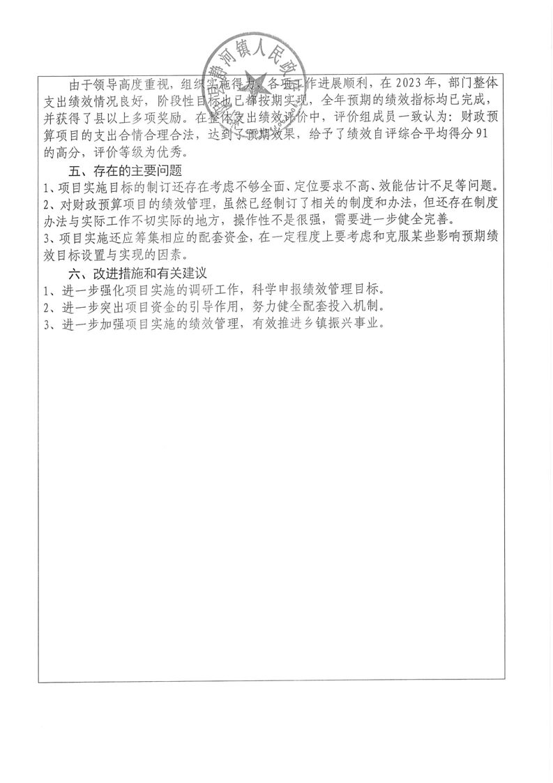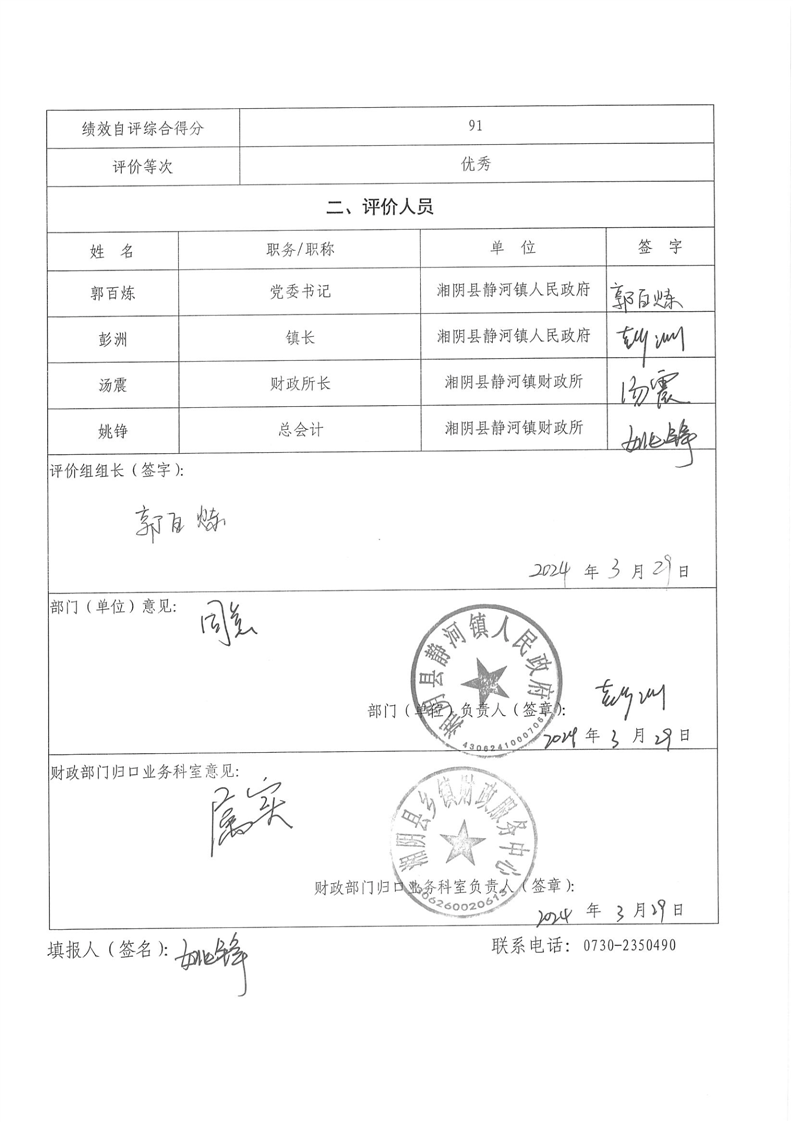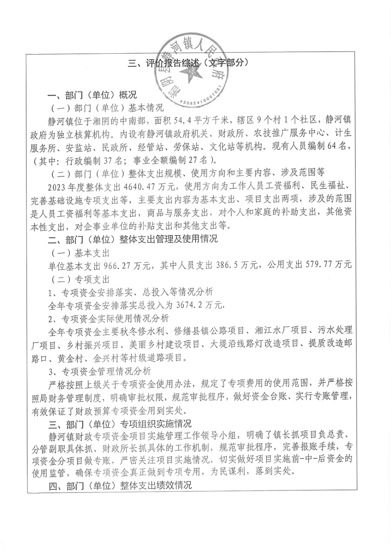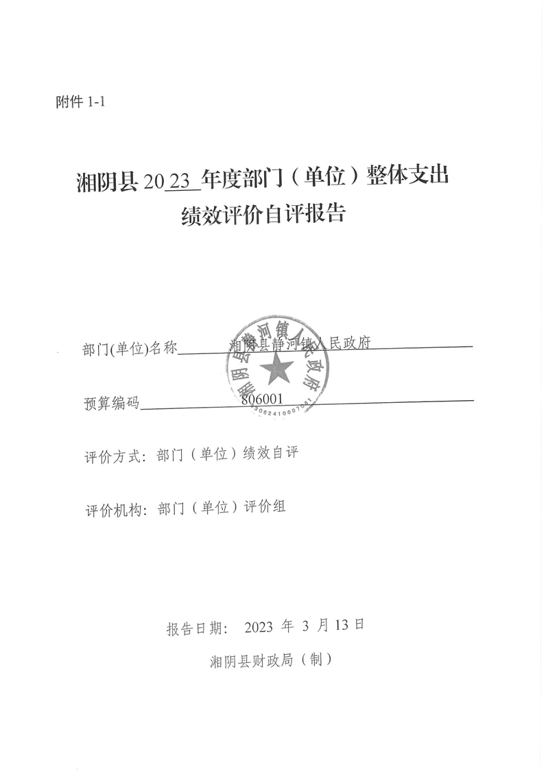 2023年-湘阴县静河镇人民政府-财政预算资金绩效自评公开