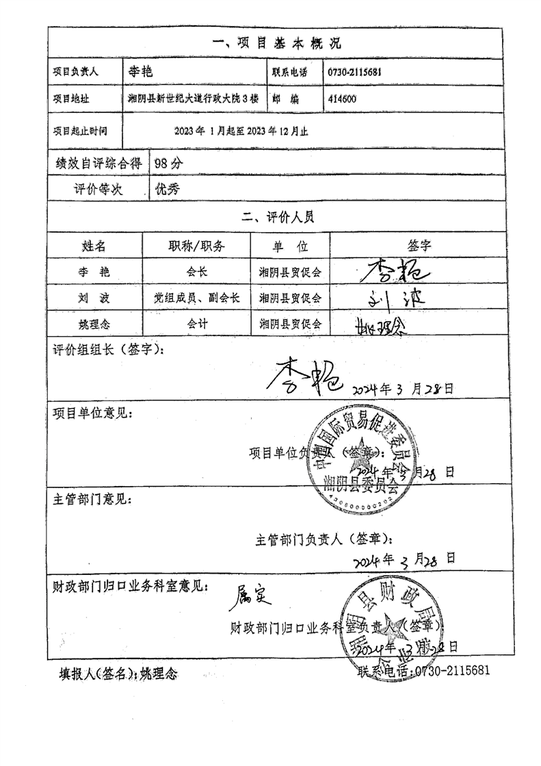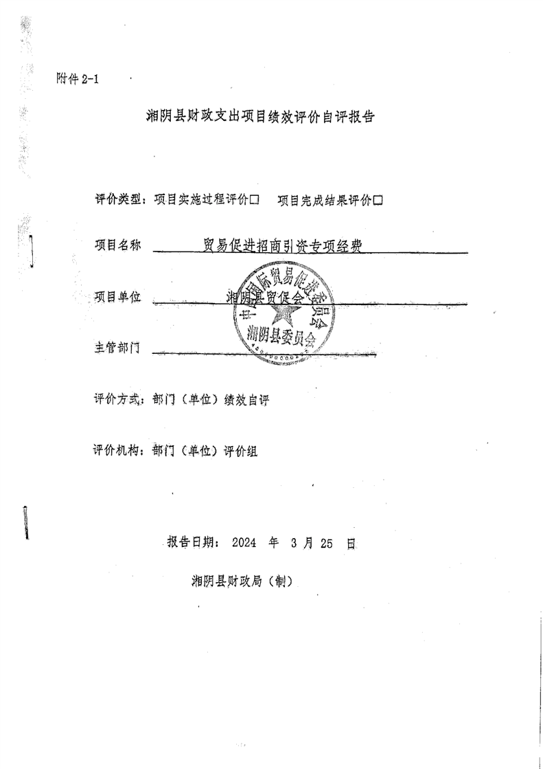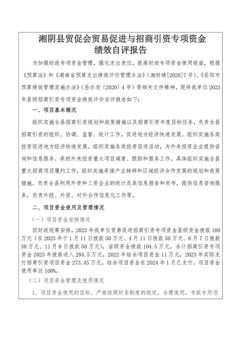 2023年-中国国际贸易促进委员会湘阴县委员会-财政预算资金自评公开