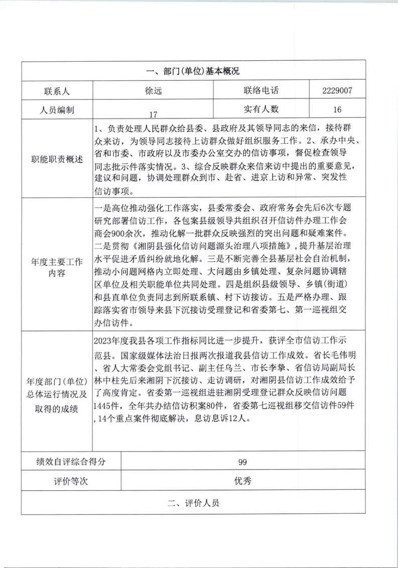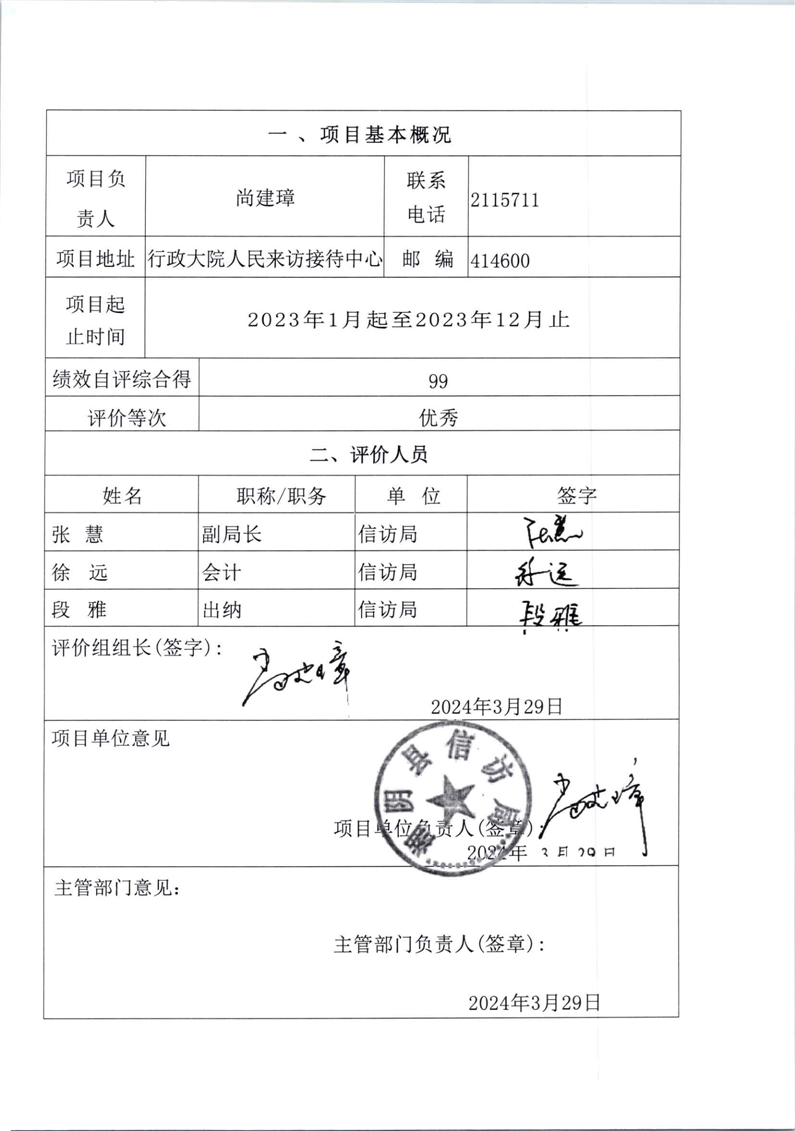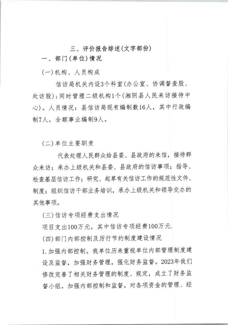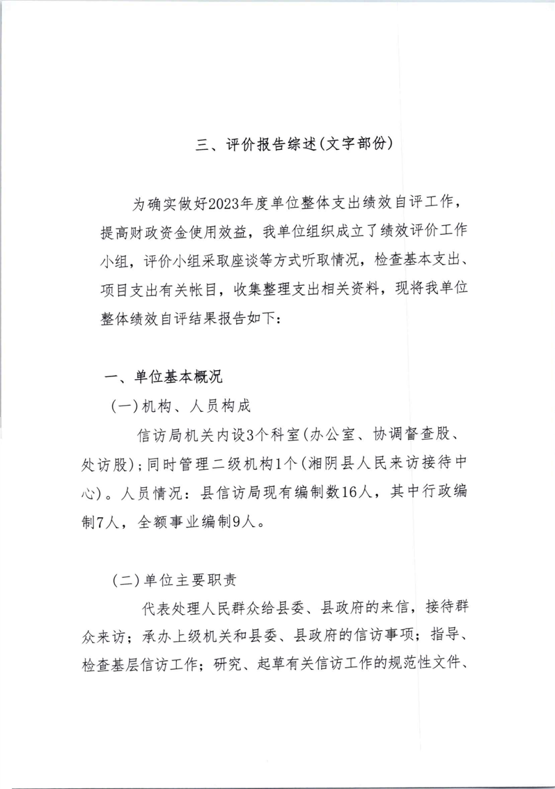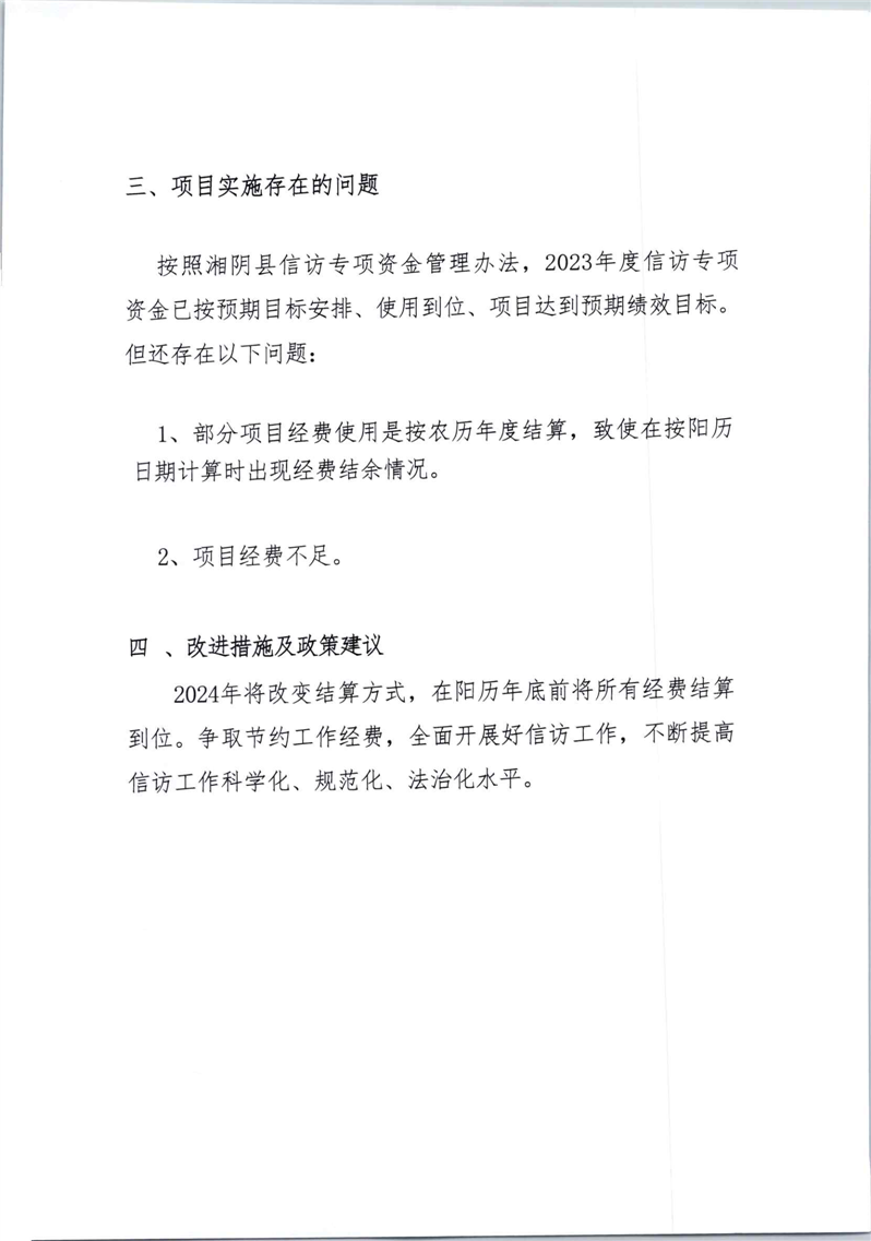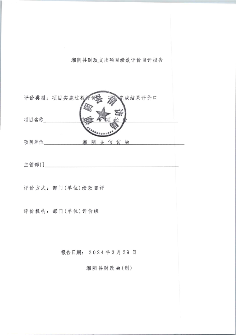 2023年-湘阴县信访局-财政预算资金绩效自评公开