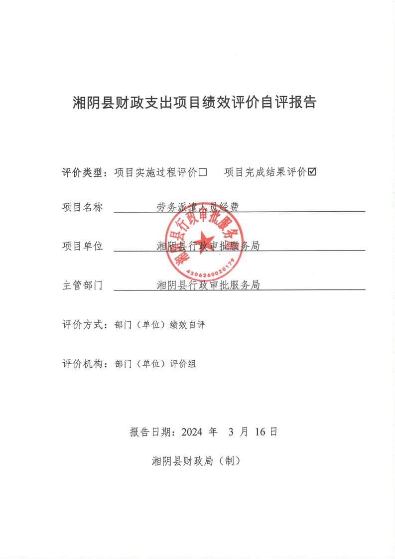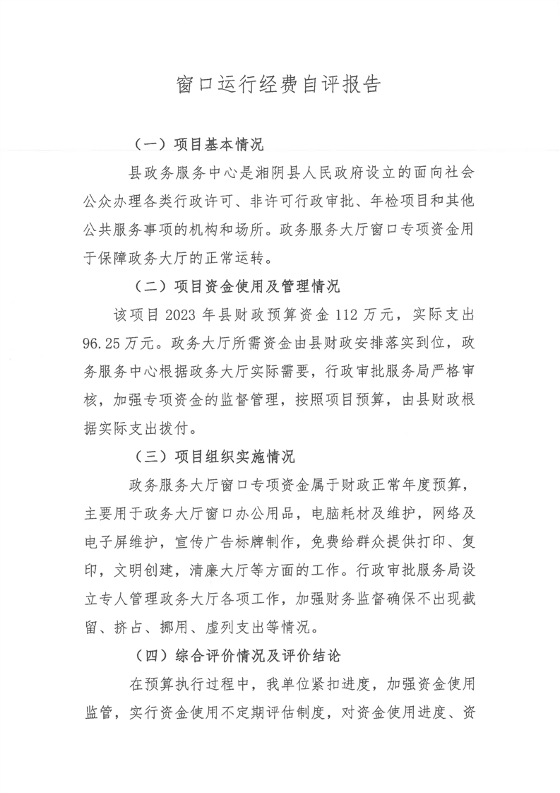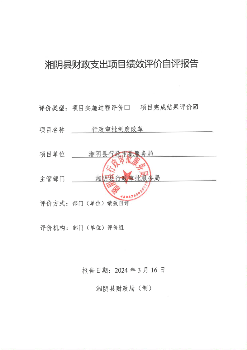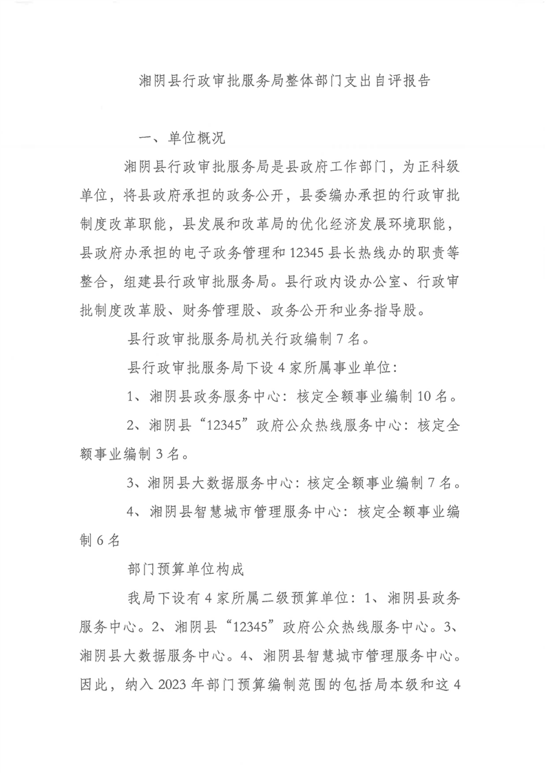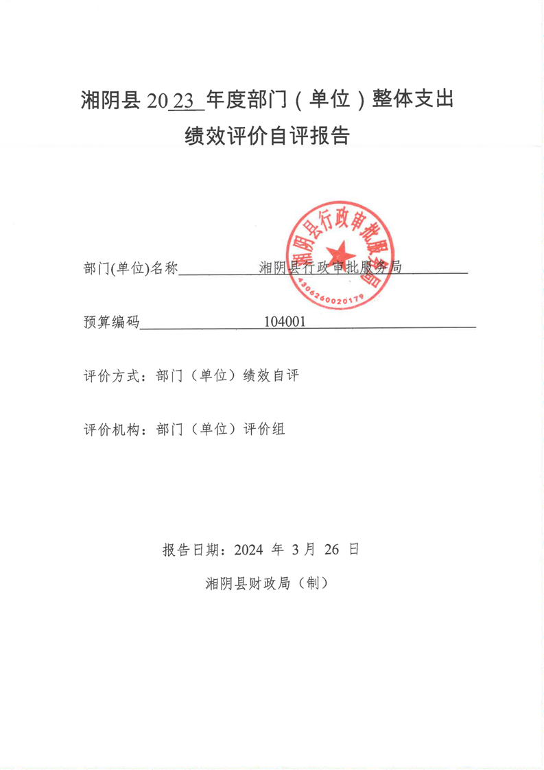 2023年-湘阴县行政审批服务局-财政预算资金绩效自评公开