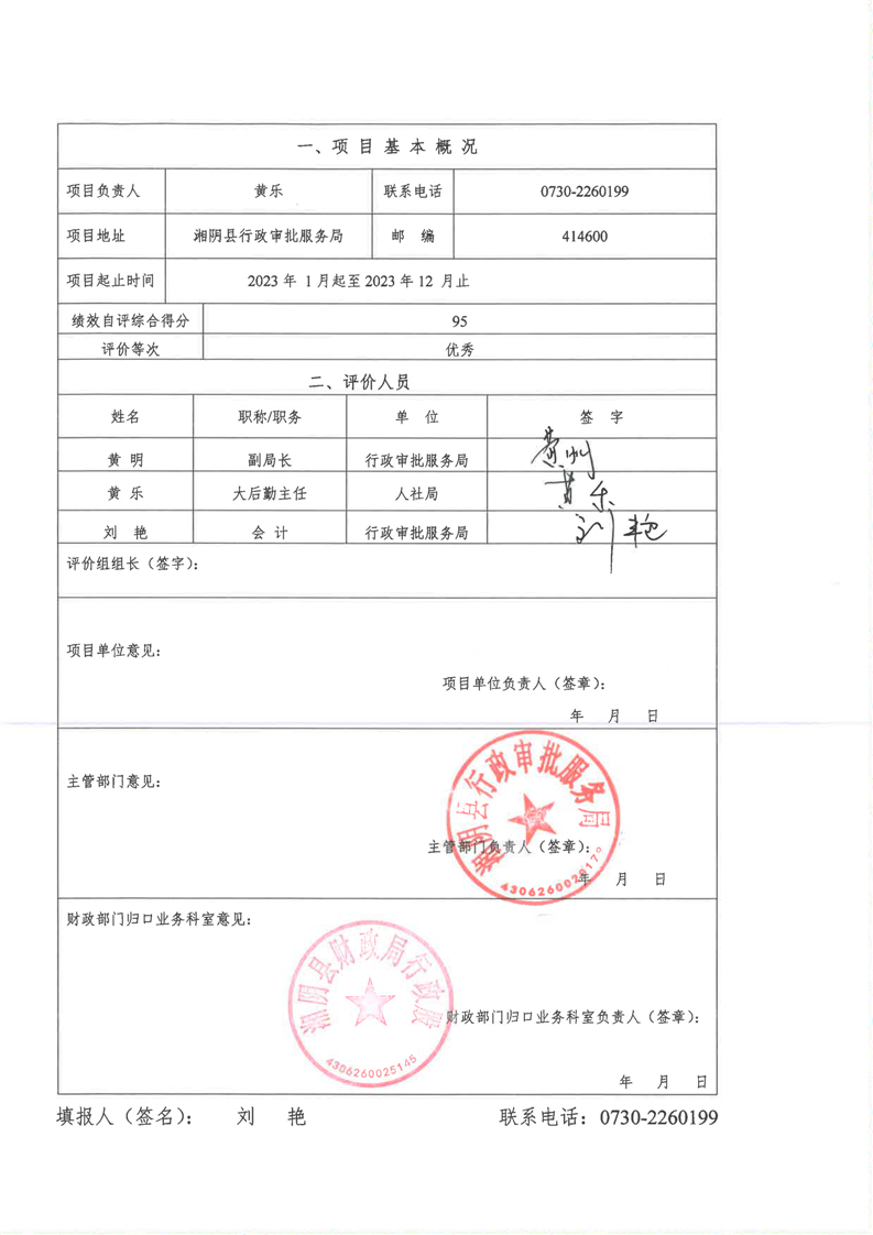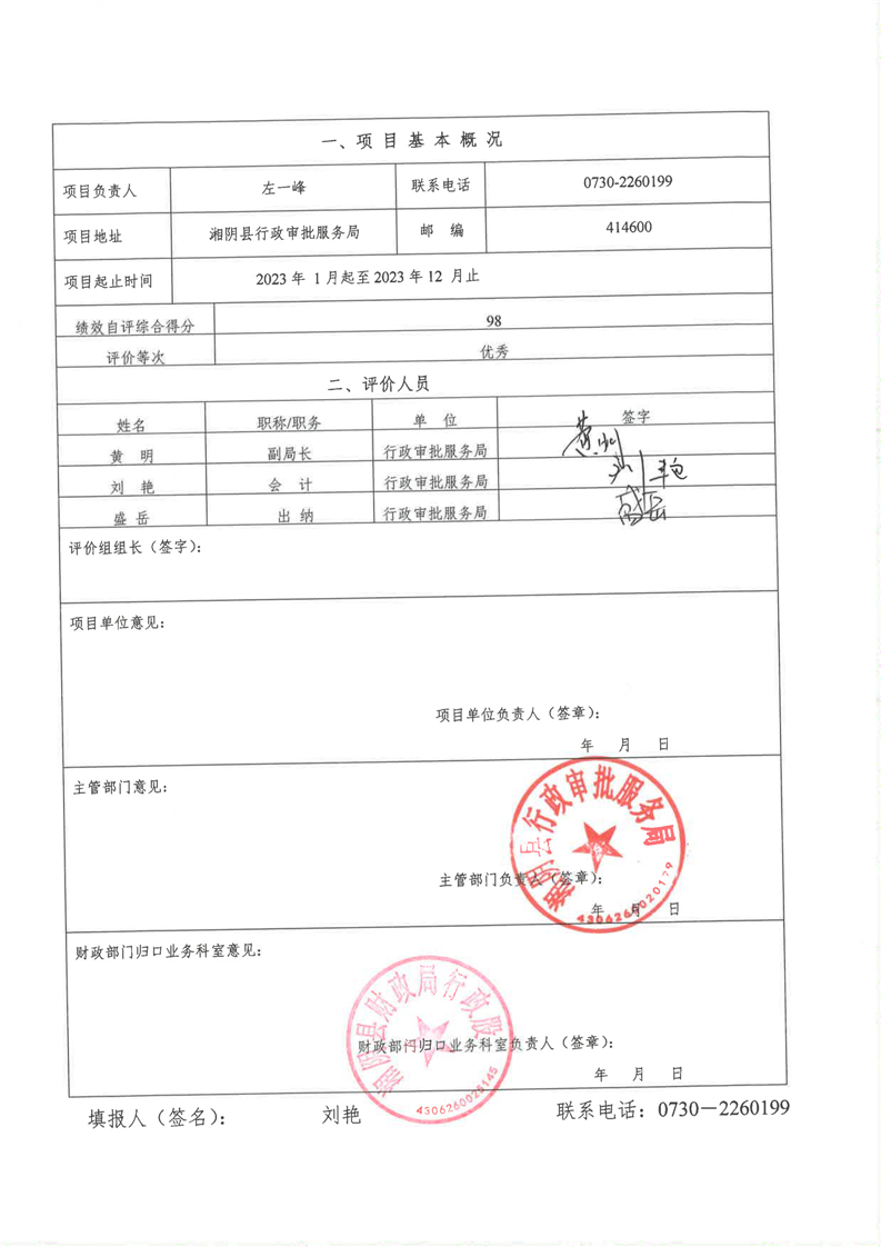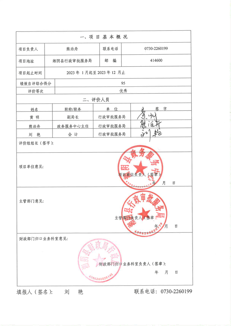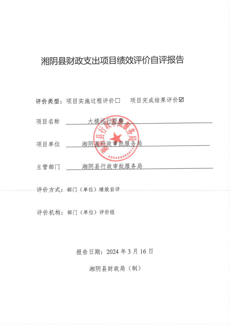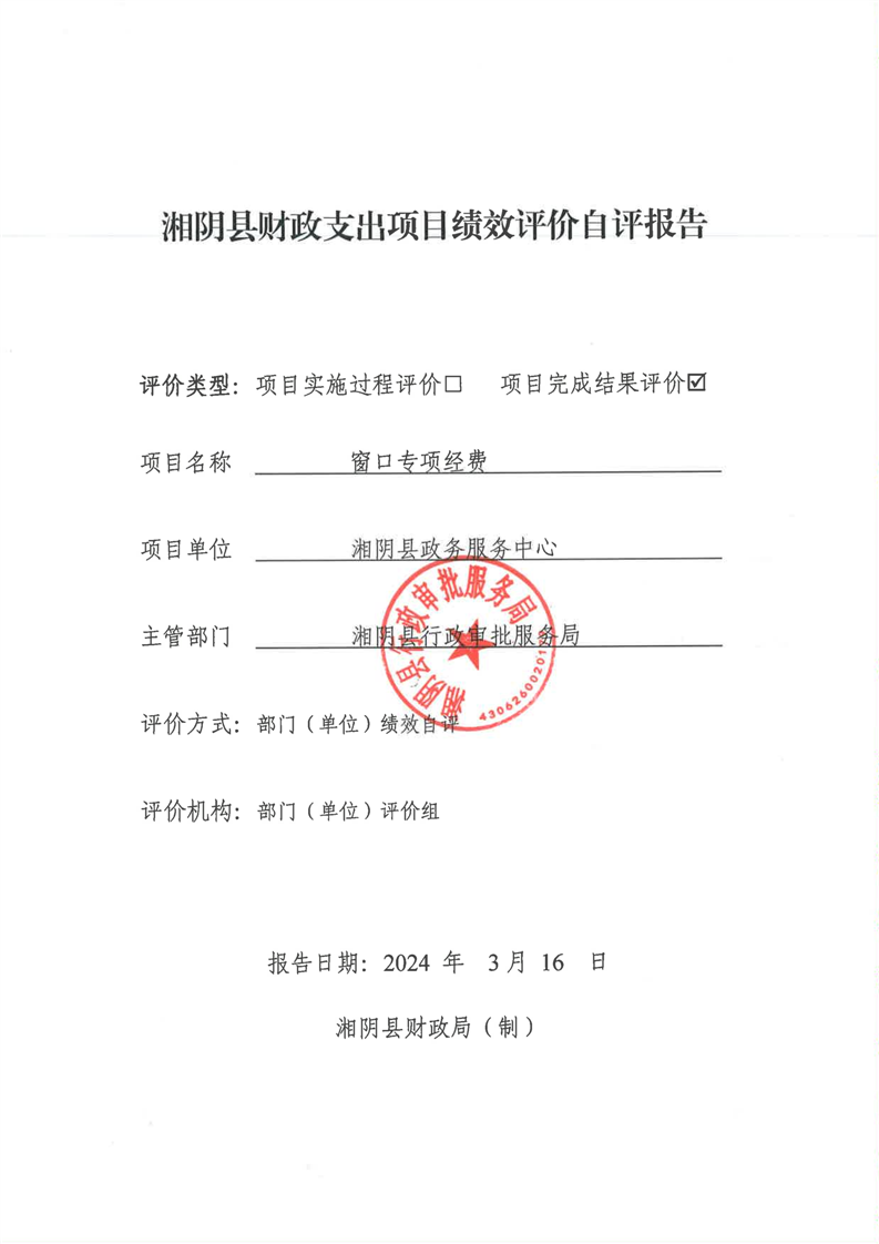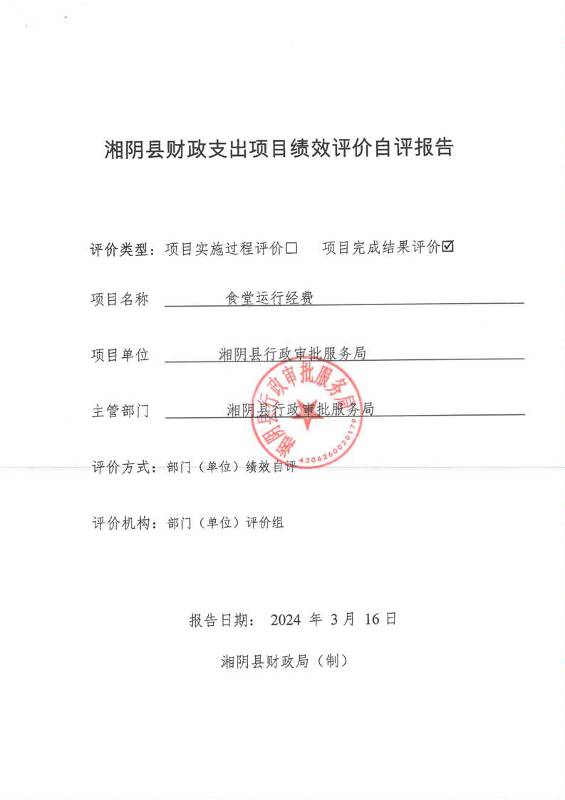 2023年-湘阴县行政审批服务局-财政预算资金绩效自评公开