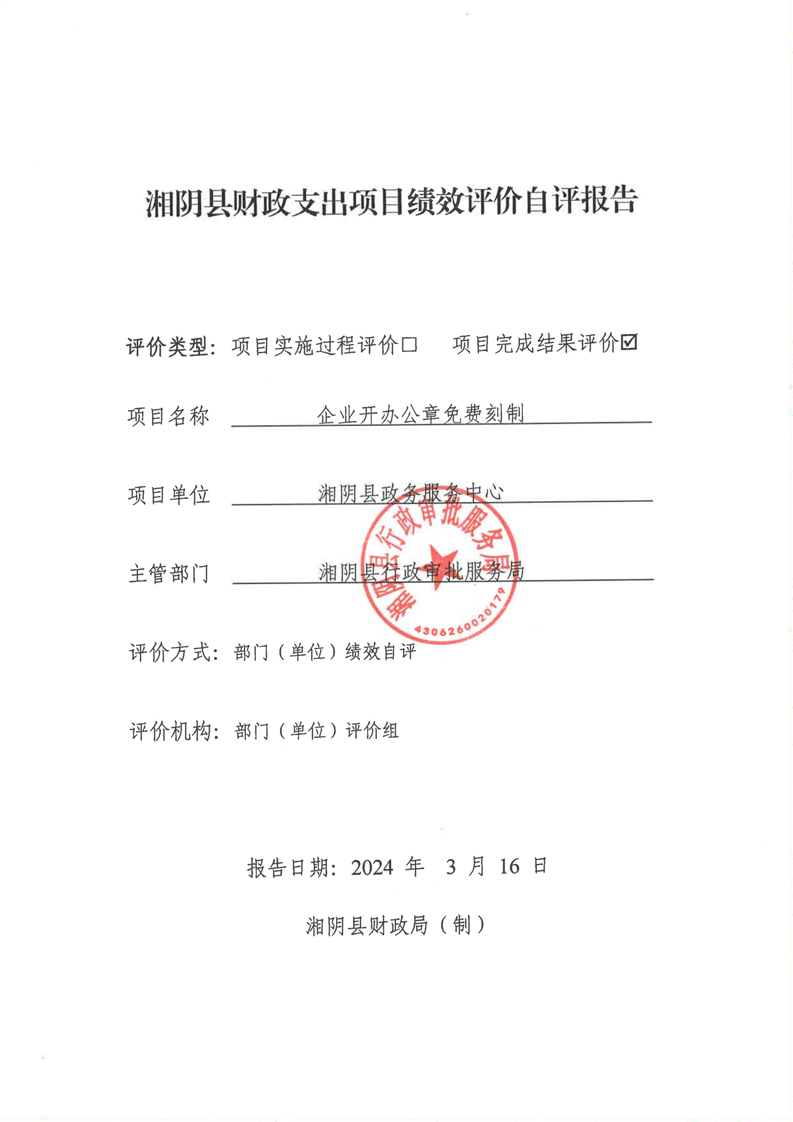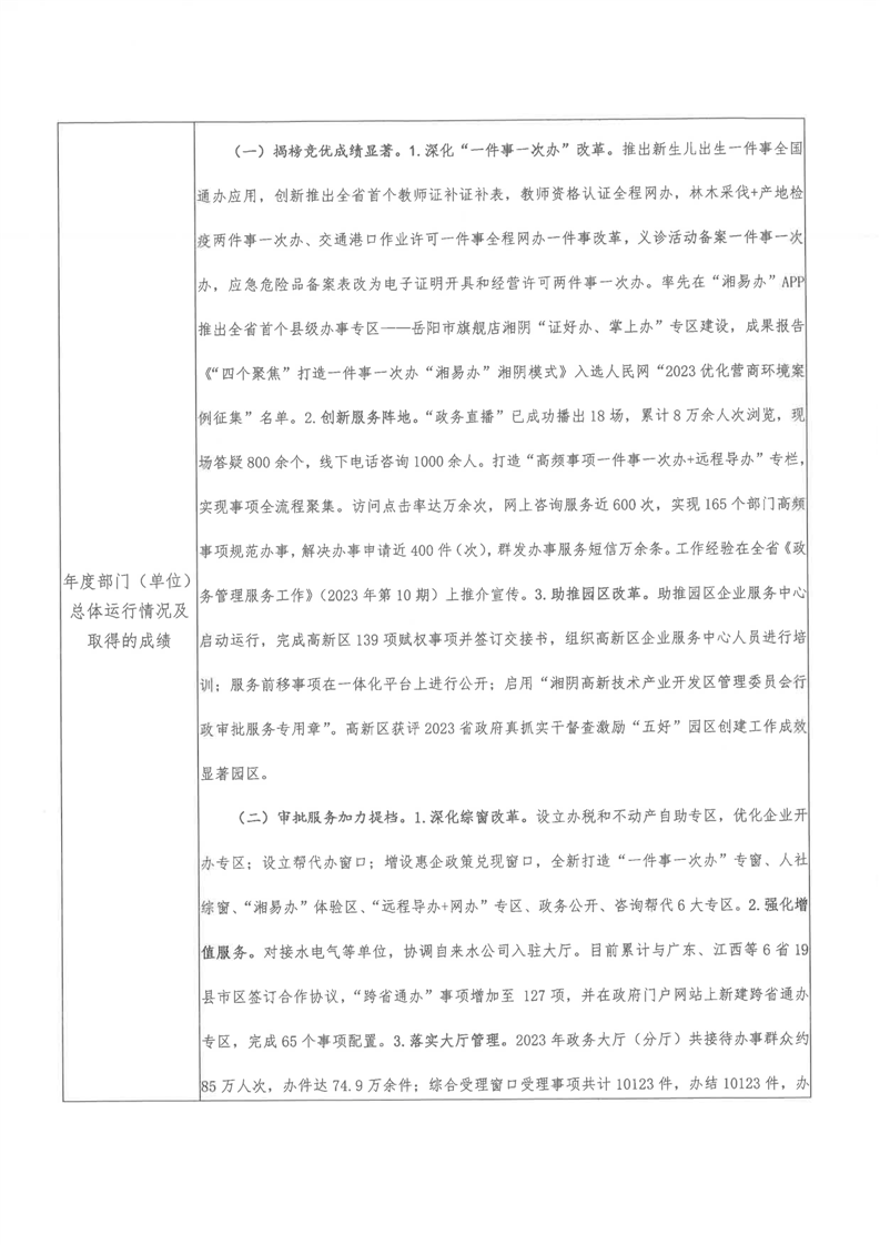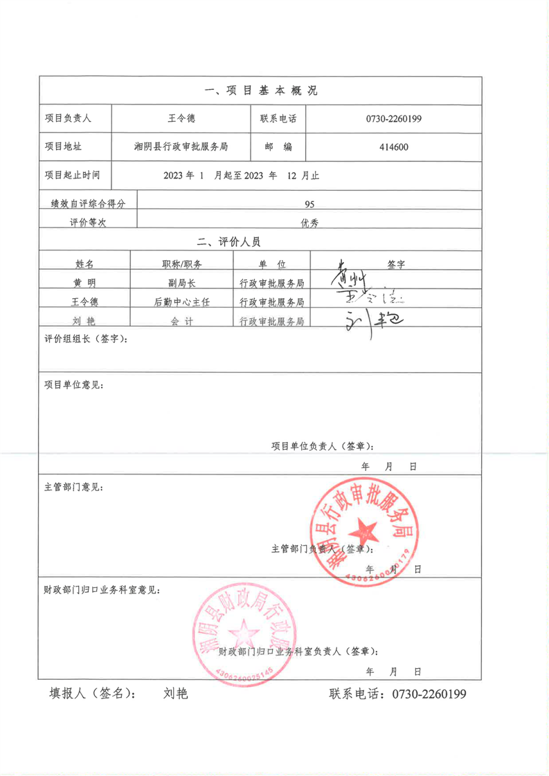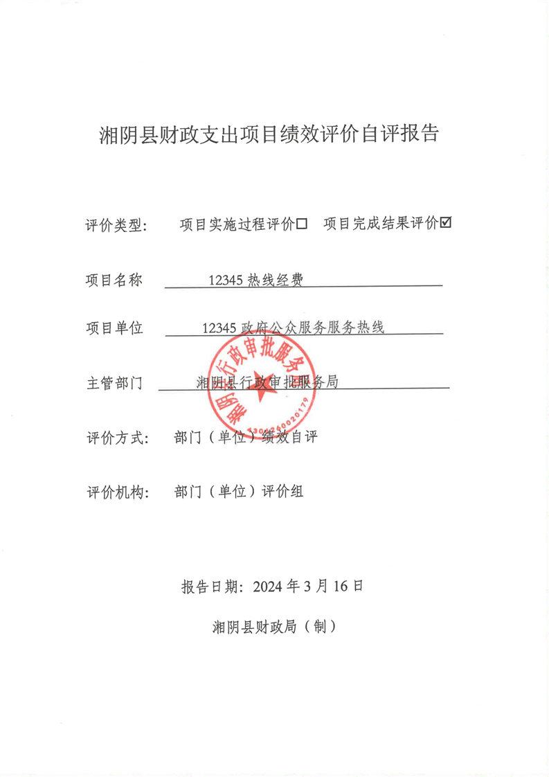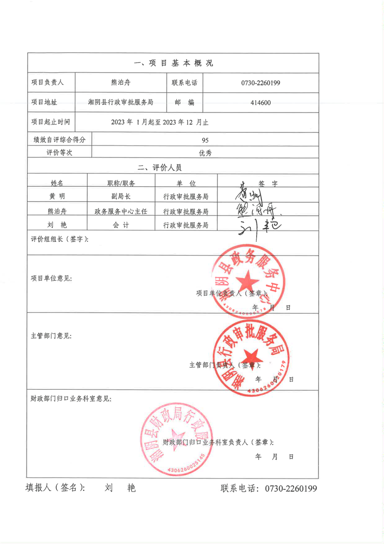 2023年-湘阴县行政审批服务局-财政预算资金绩效自评公开