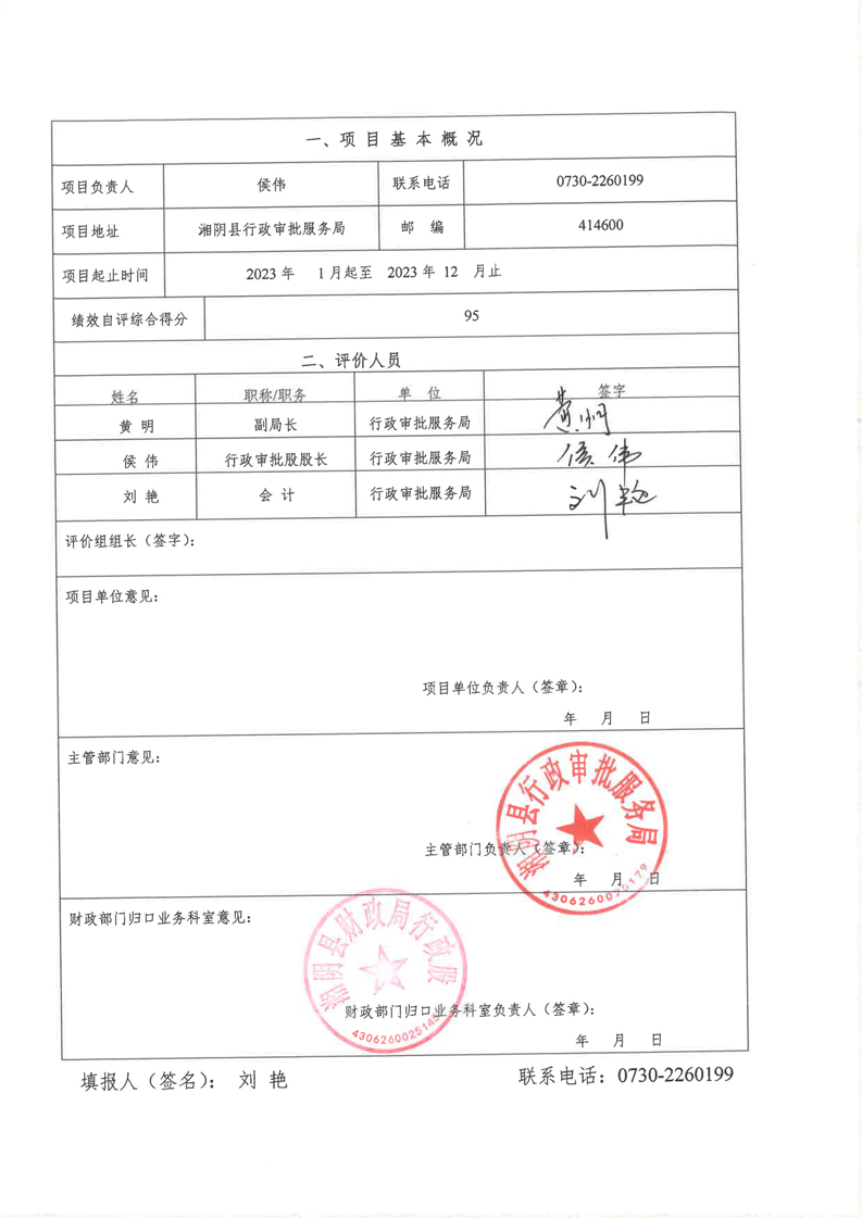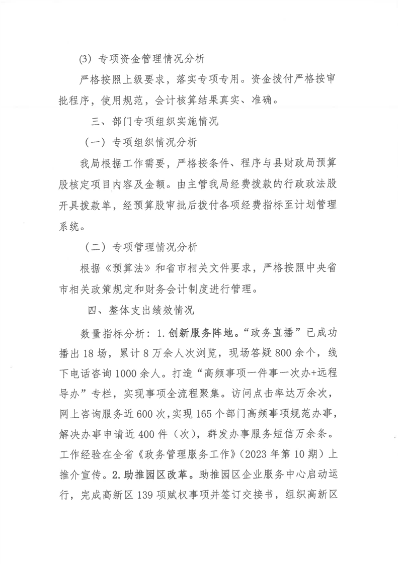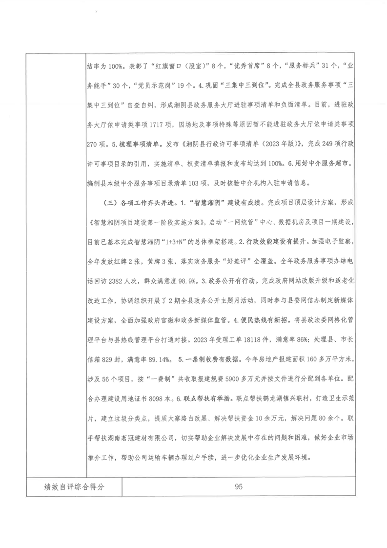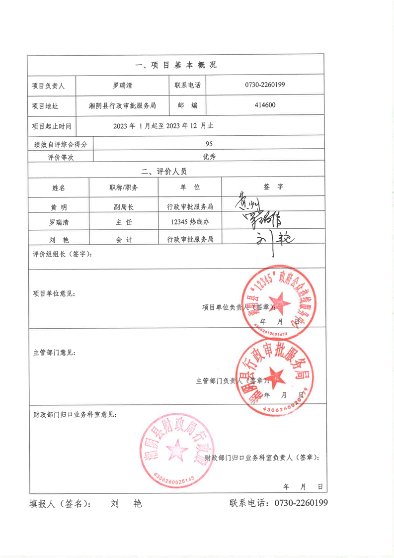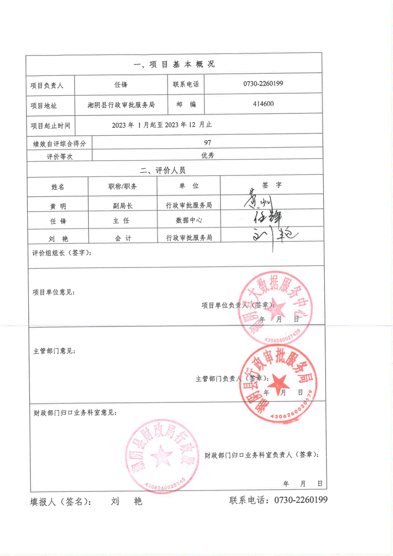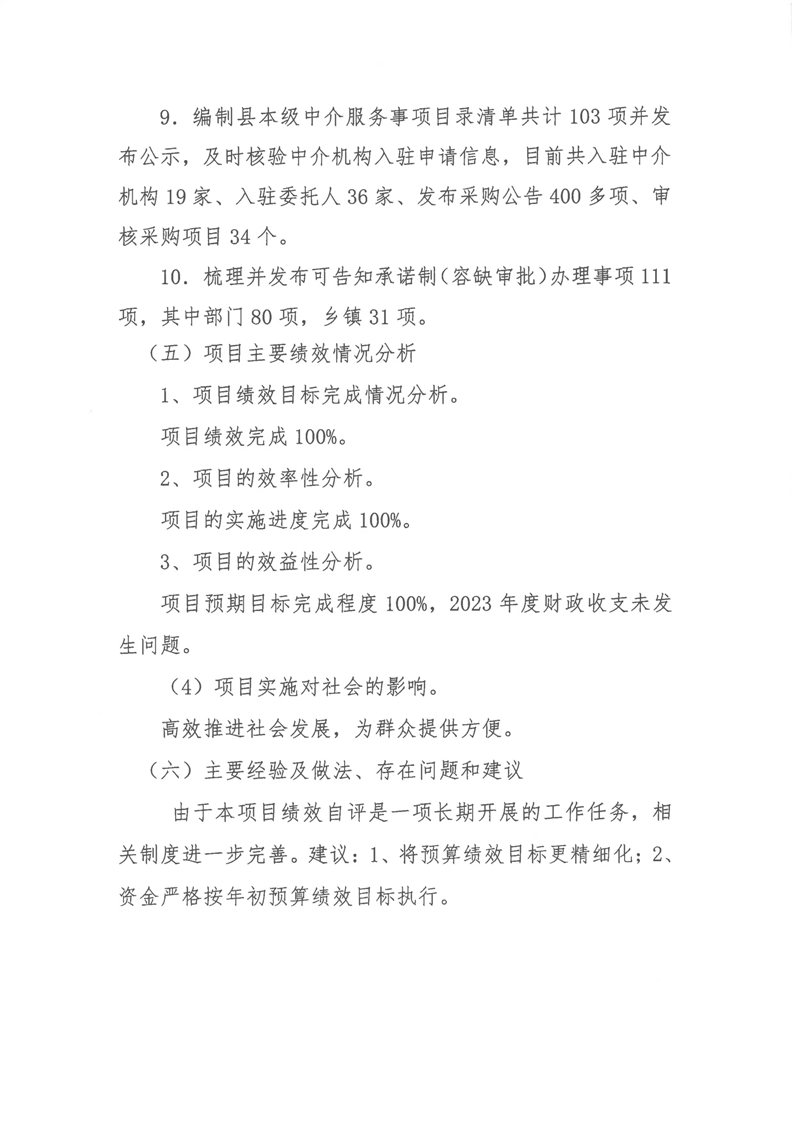2023年-湘阴县行政审批服务局-财政预算资金绩效自评公开