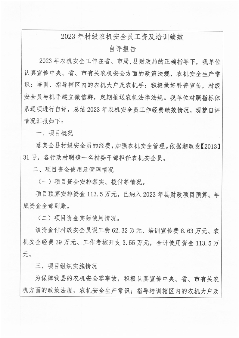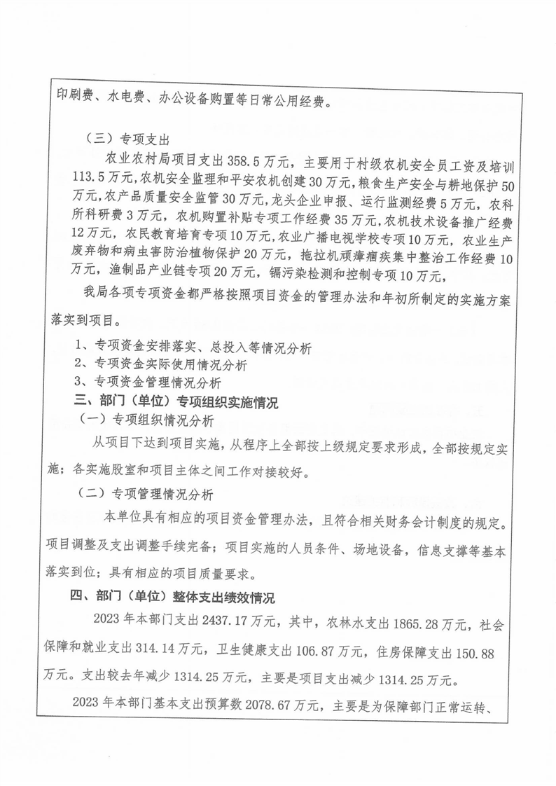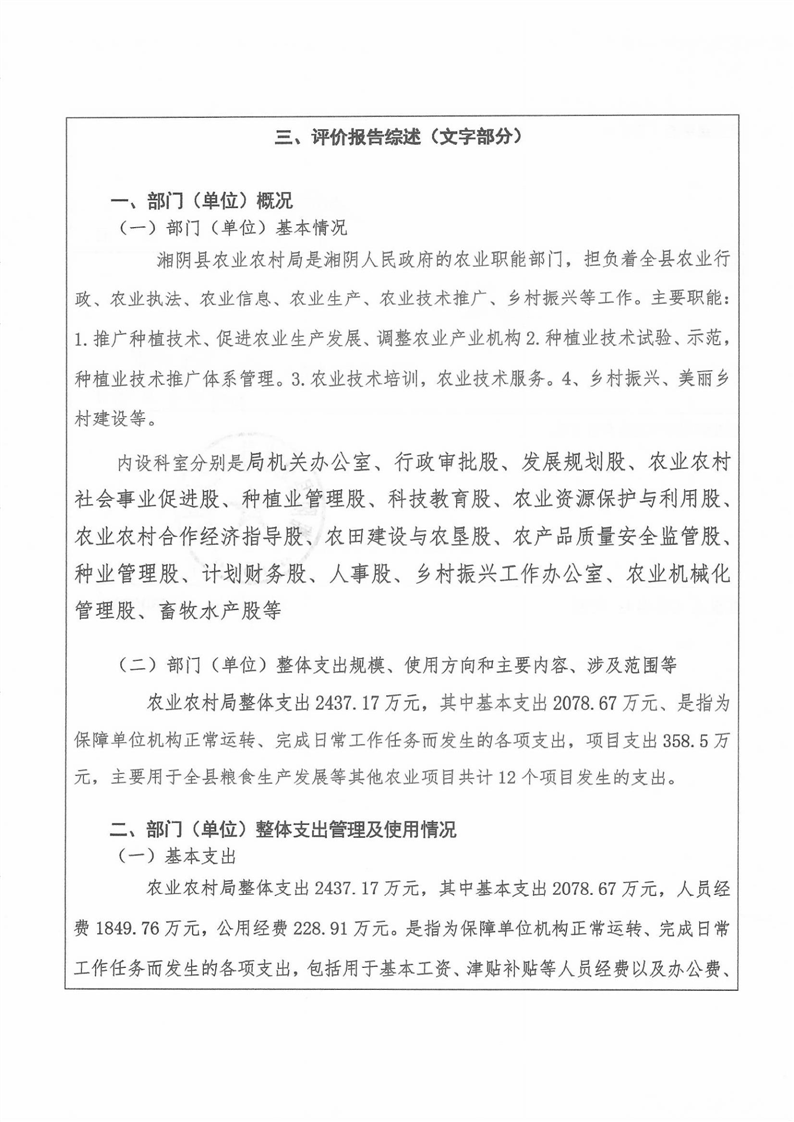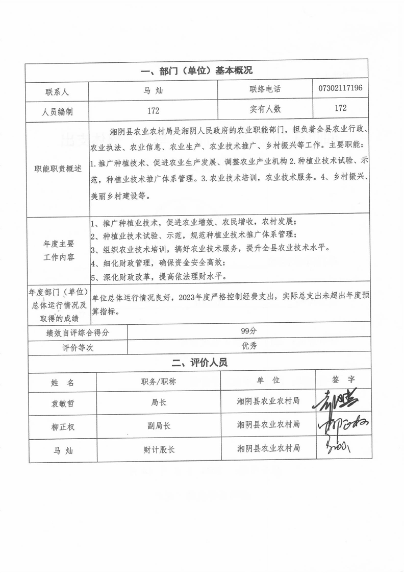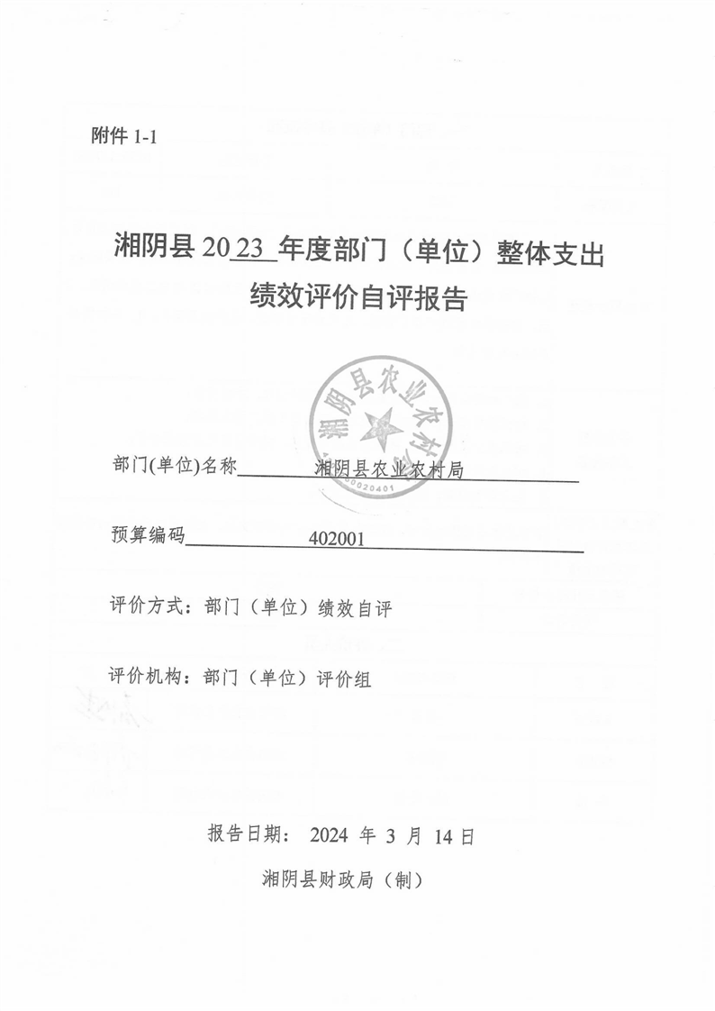 2023年-湘阴县农业农村局-财政预算资金绩效自评公开