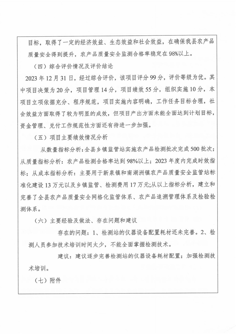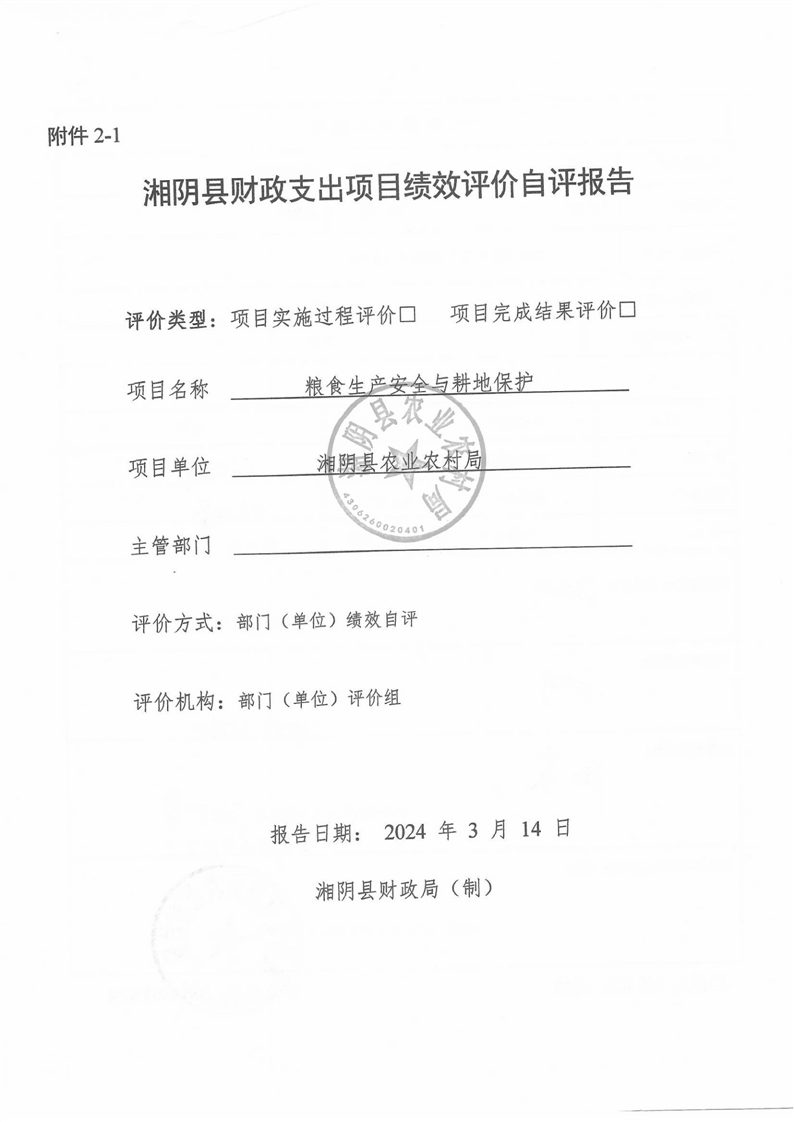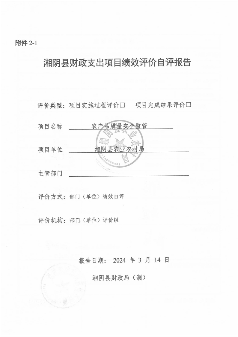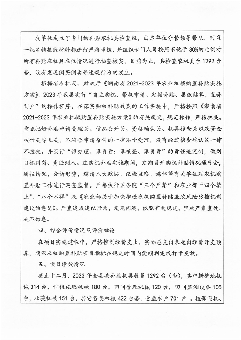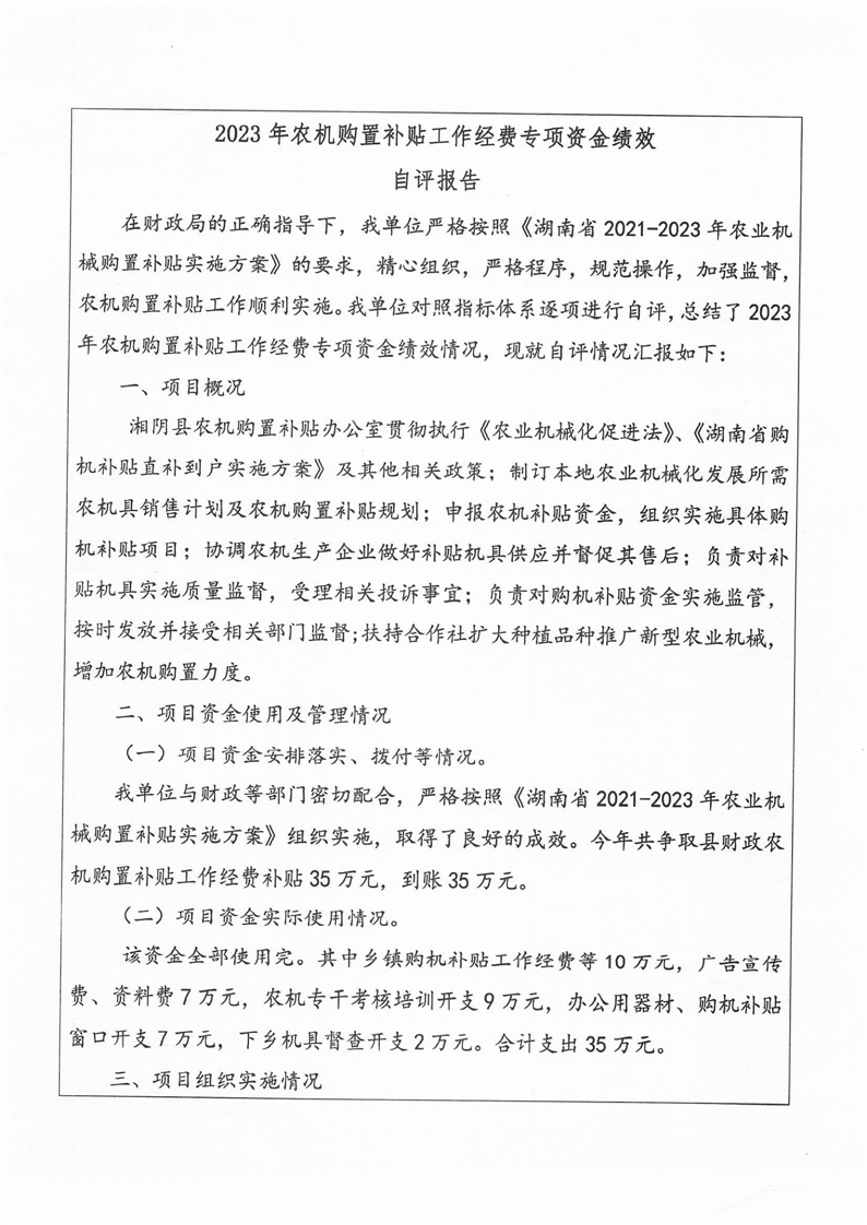 2023年-湘阴县农业农村局-财政预算资金绩效自评公开