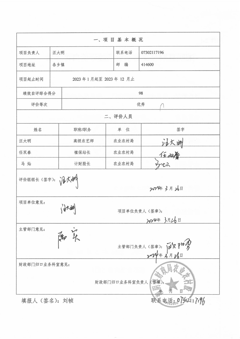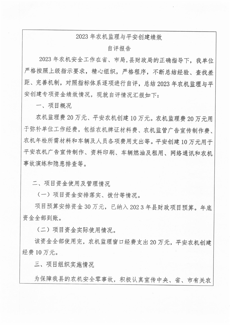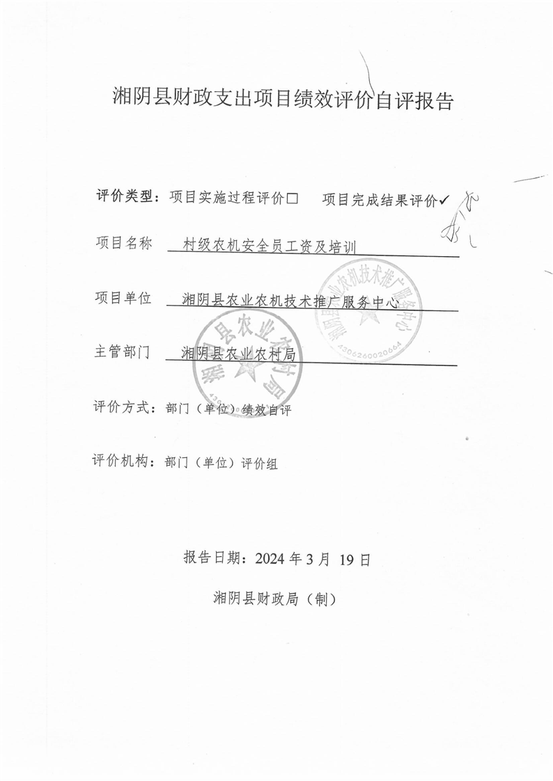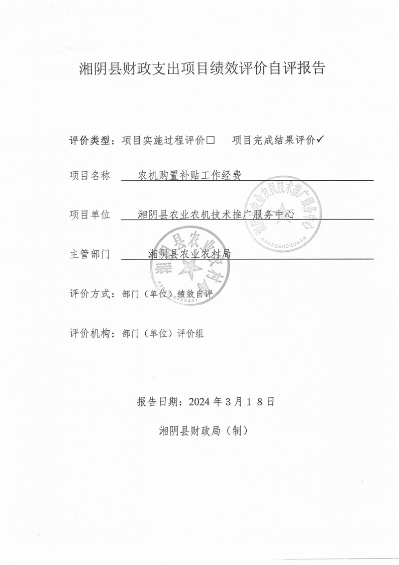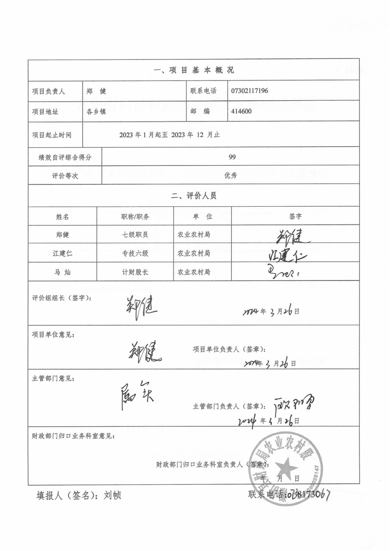 2023年-湘阴县农业农村局-财政预算资金绩效自评公开