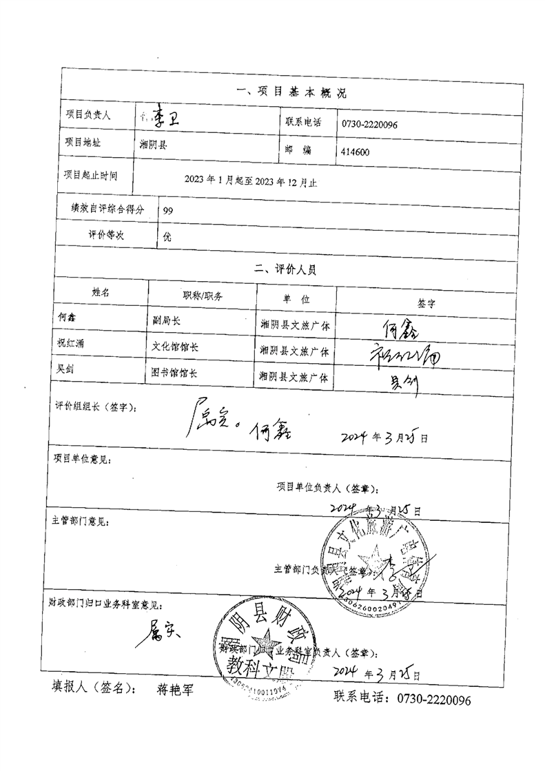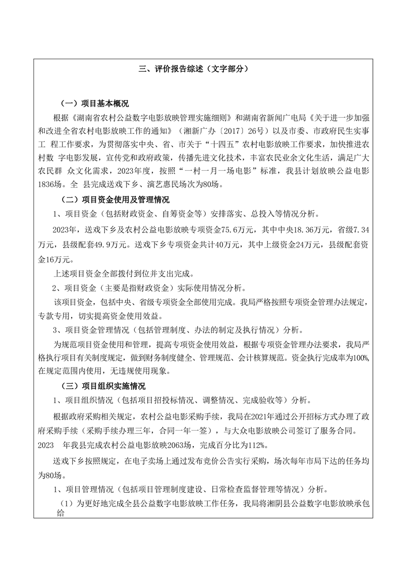 2023年-湘阴县文化旅游广电体育局-财政预算资金绩效自评公开