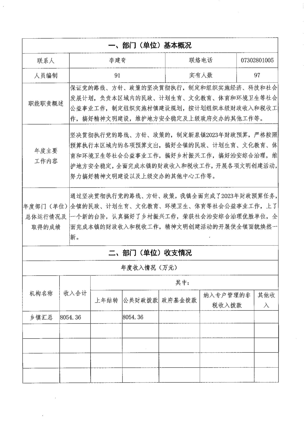 2023年-湘阴县新泉镇人民政府-财政预算资金绩效自评公开