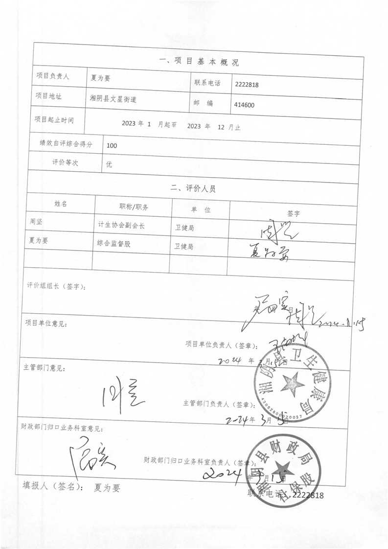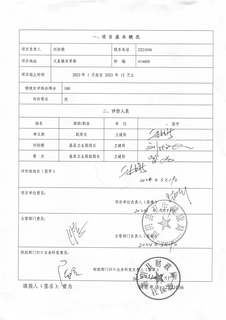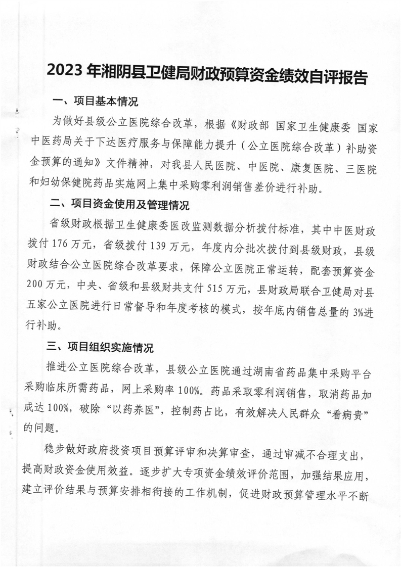 2023年-卫生健康局-财政预算资金绩效自评公开