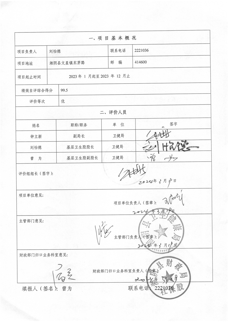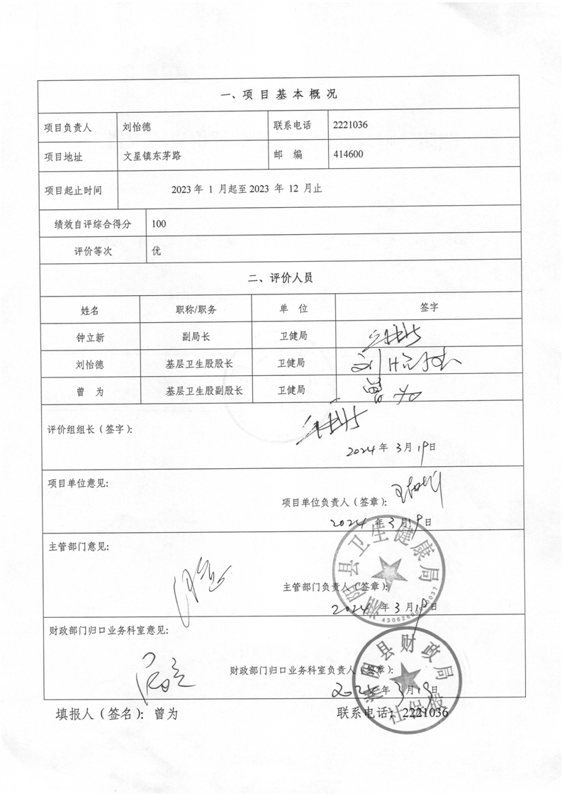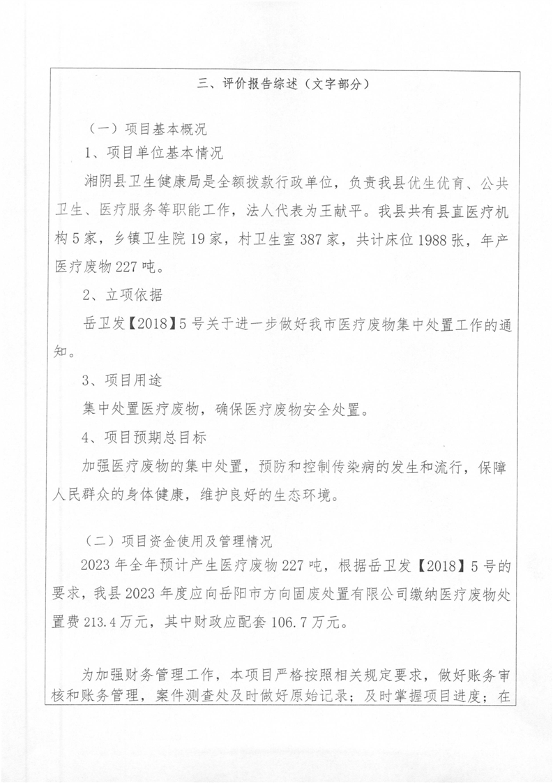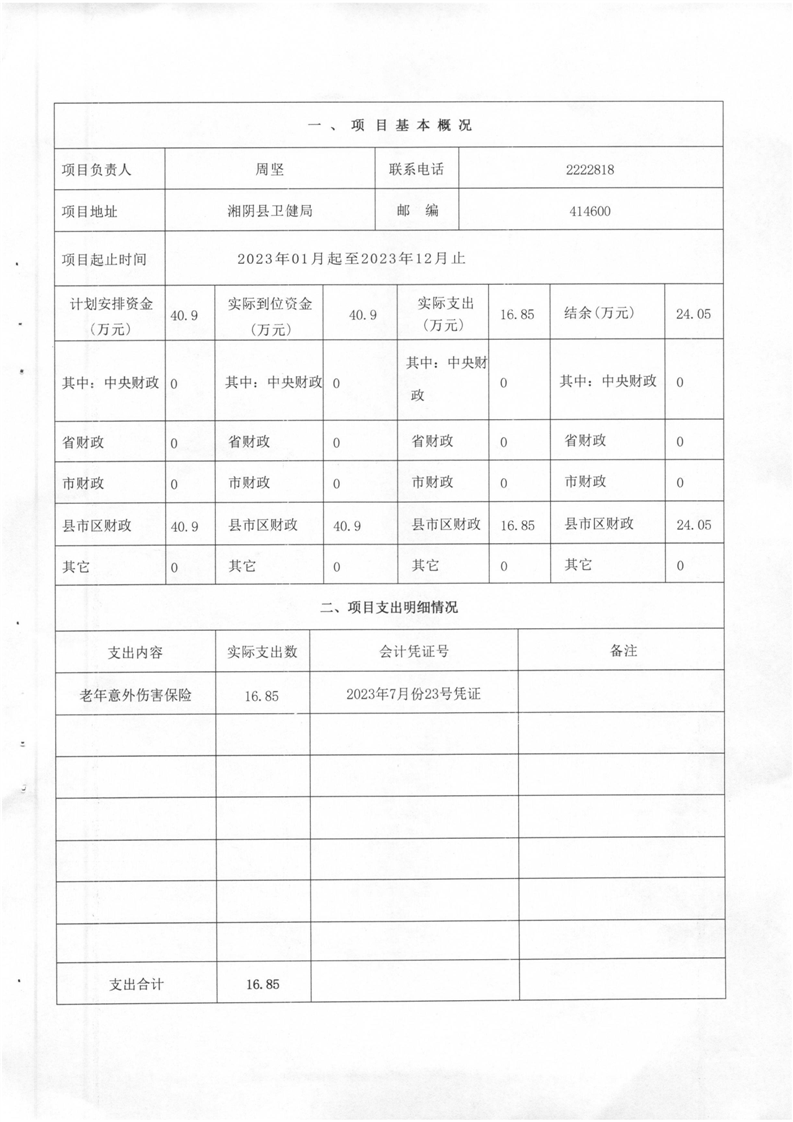 2023年-卫生健康局-财政预算资金绩效自评公开