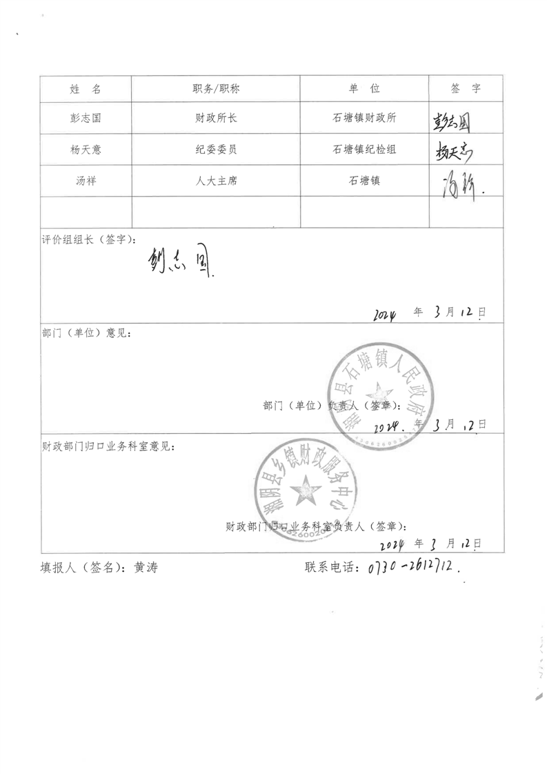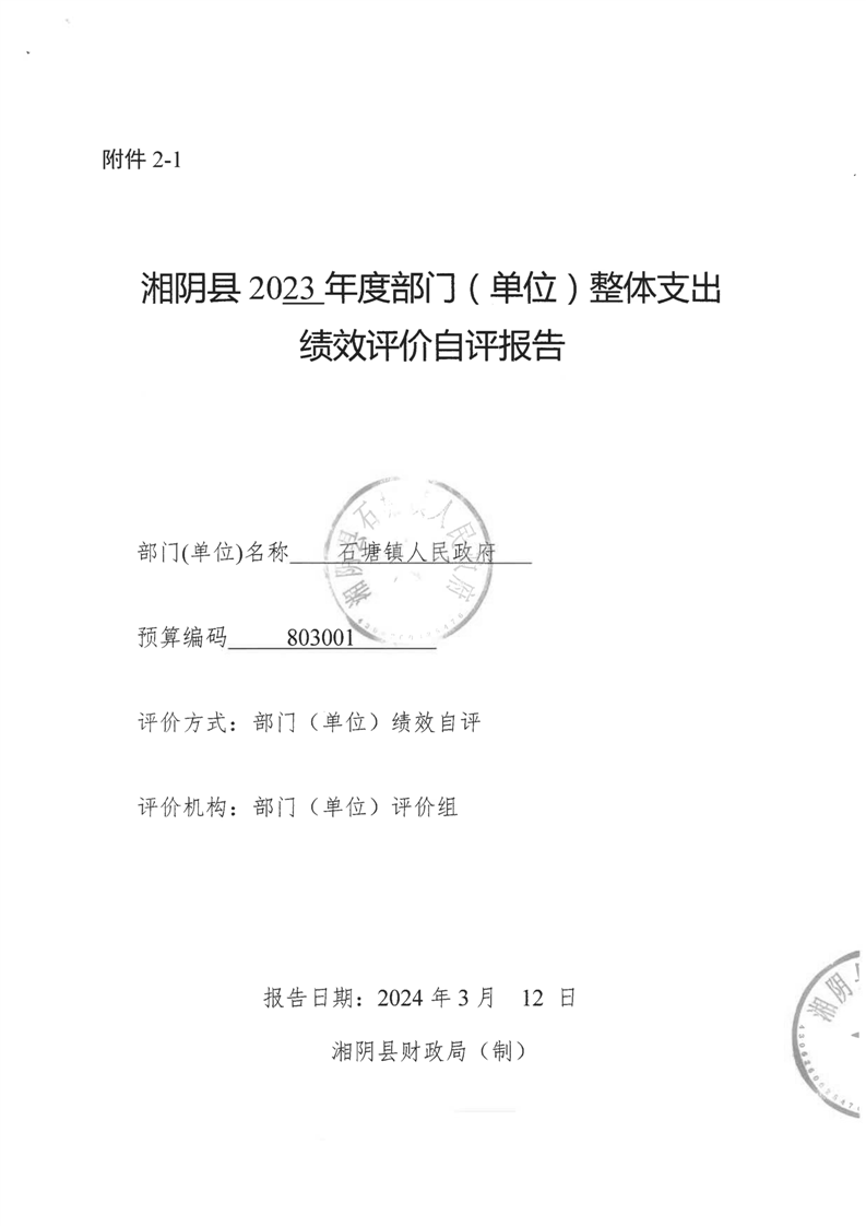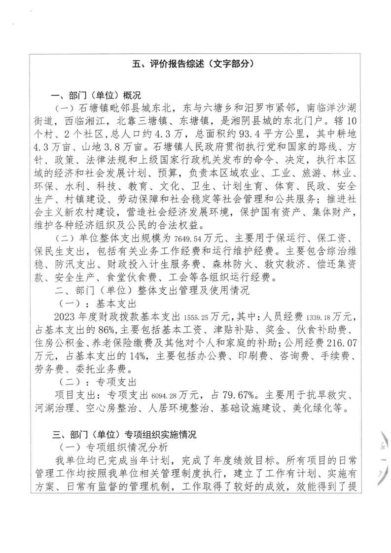 2023年-湘阴县石塘镇人民政府-财政预算资金绩效自评公开
