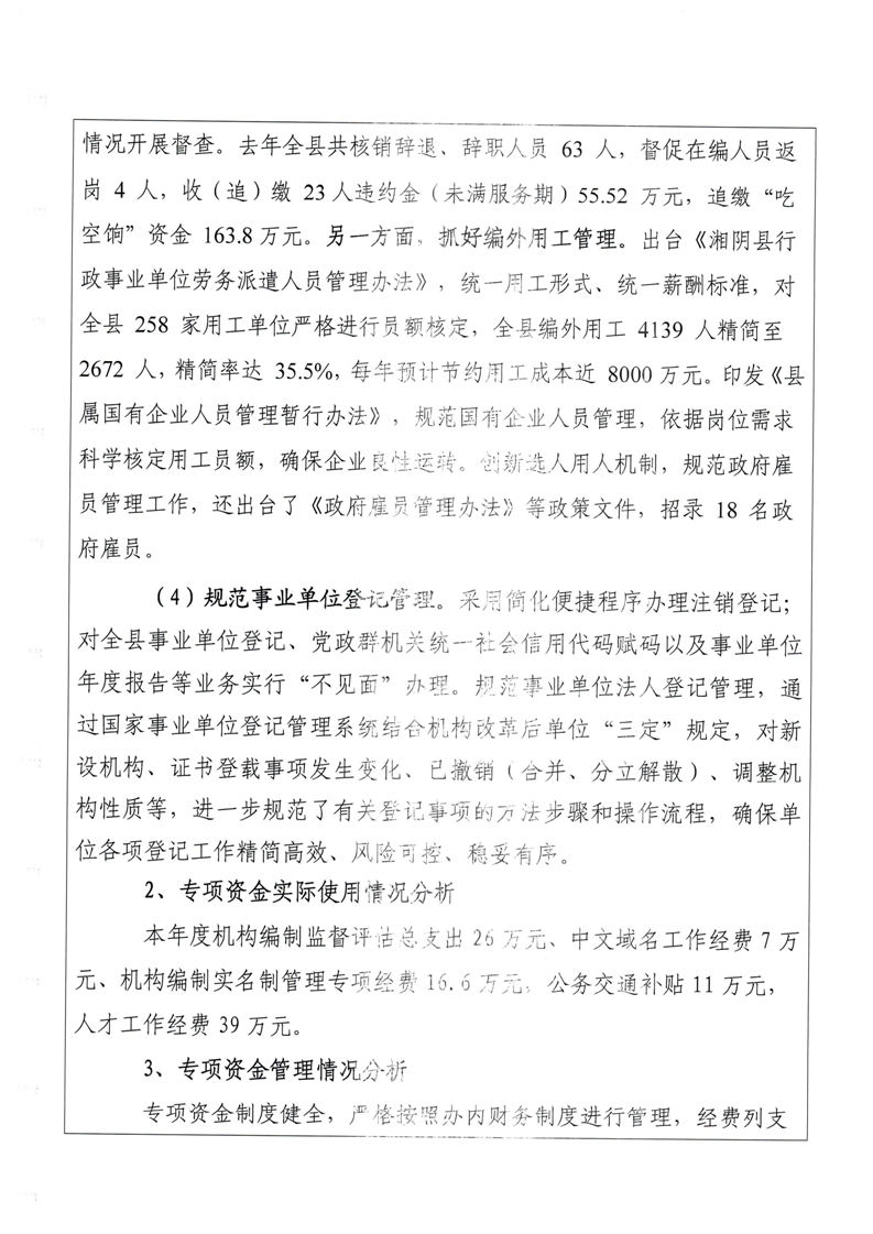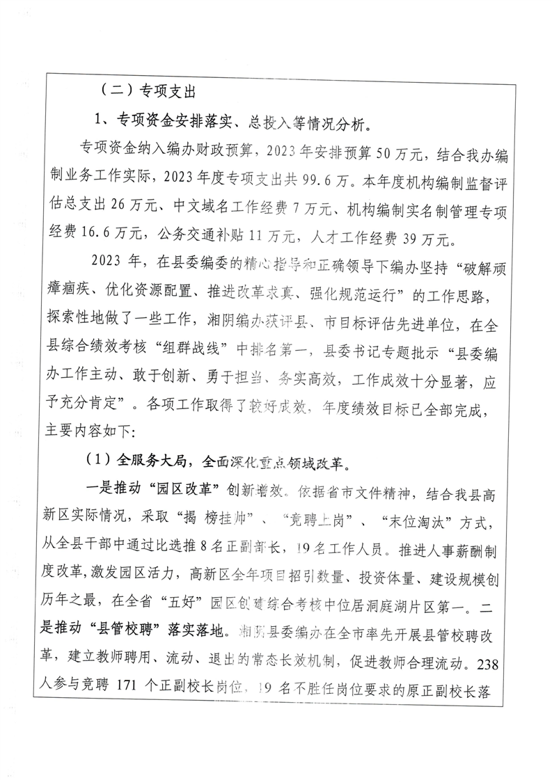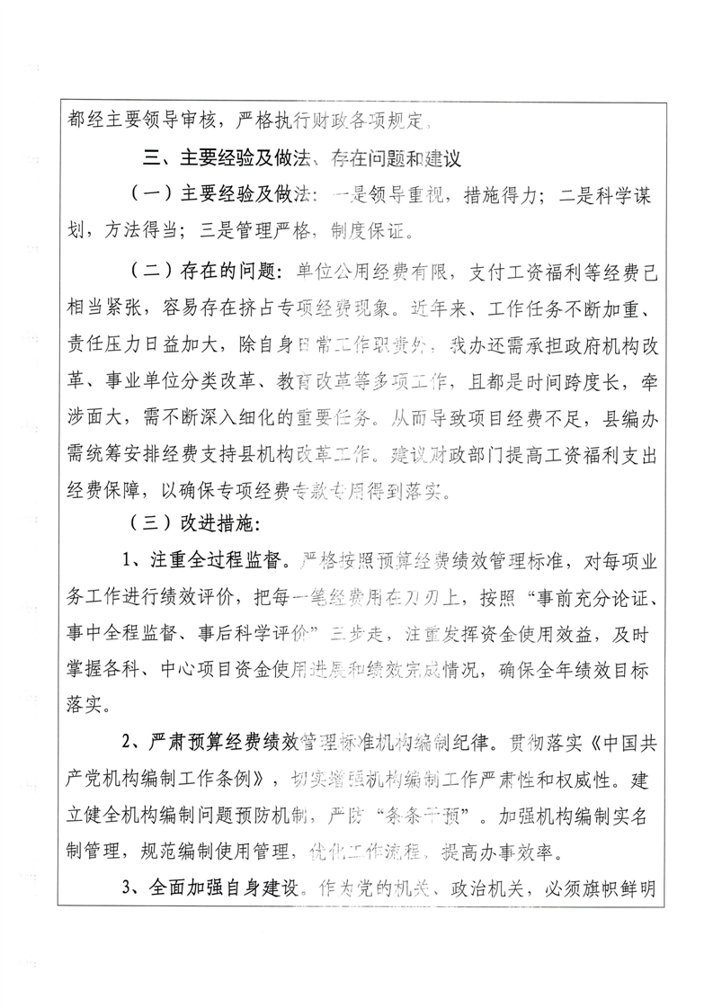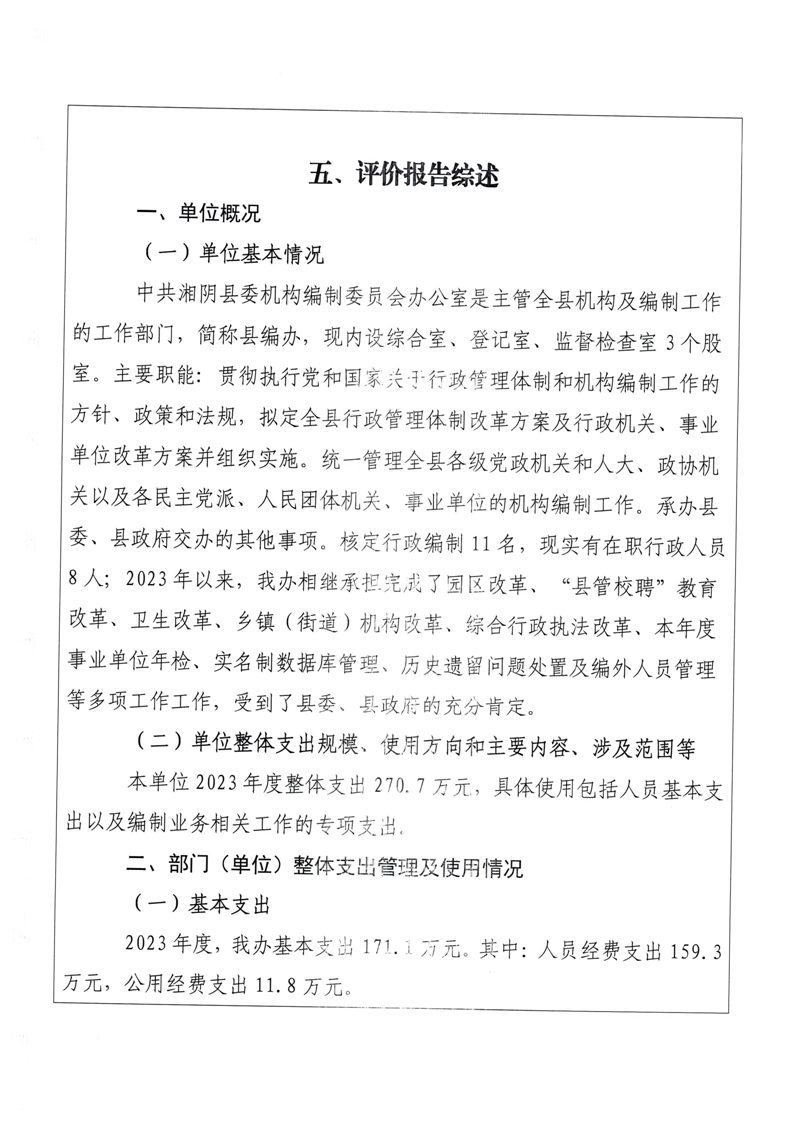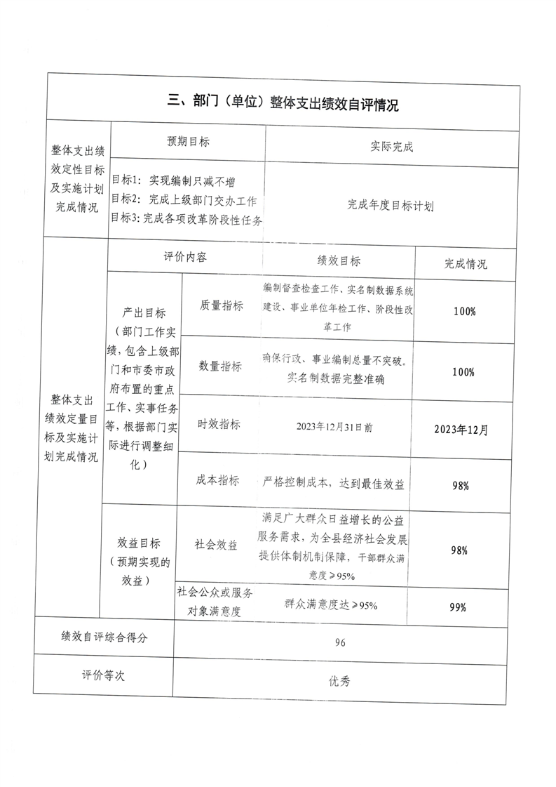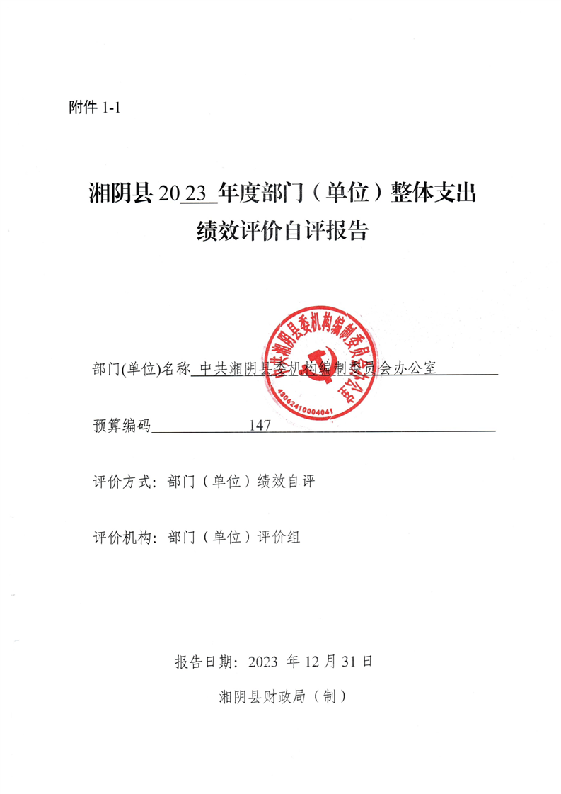 2023年-中共湘阴县委机构编制委员会办公室-财政预算资金绩效自评公开