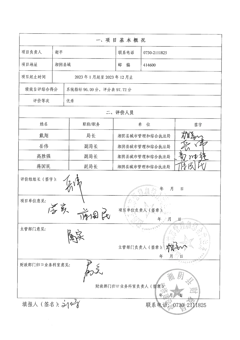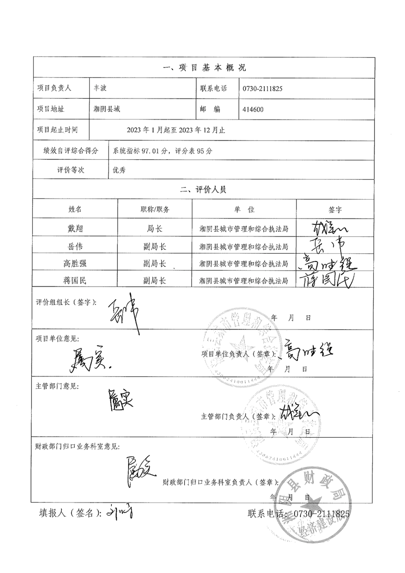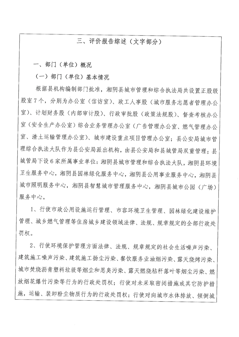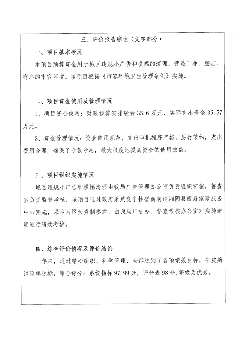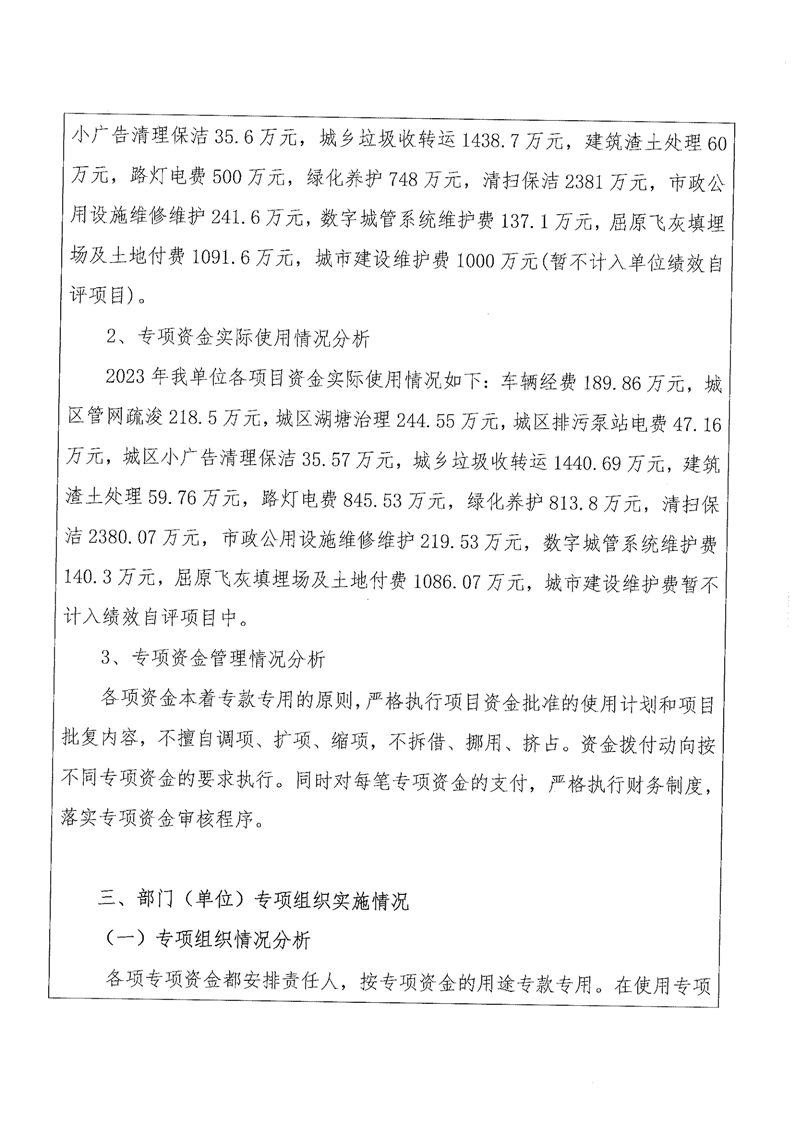2023年-湘阴县城市管理和综合执法局-财政预算资金绩效自评公开