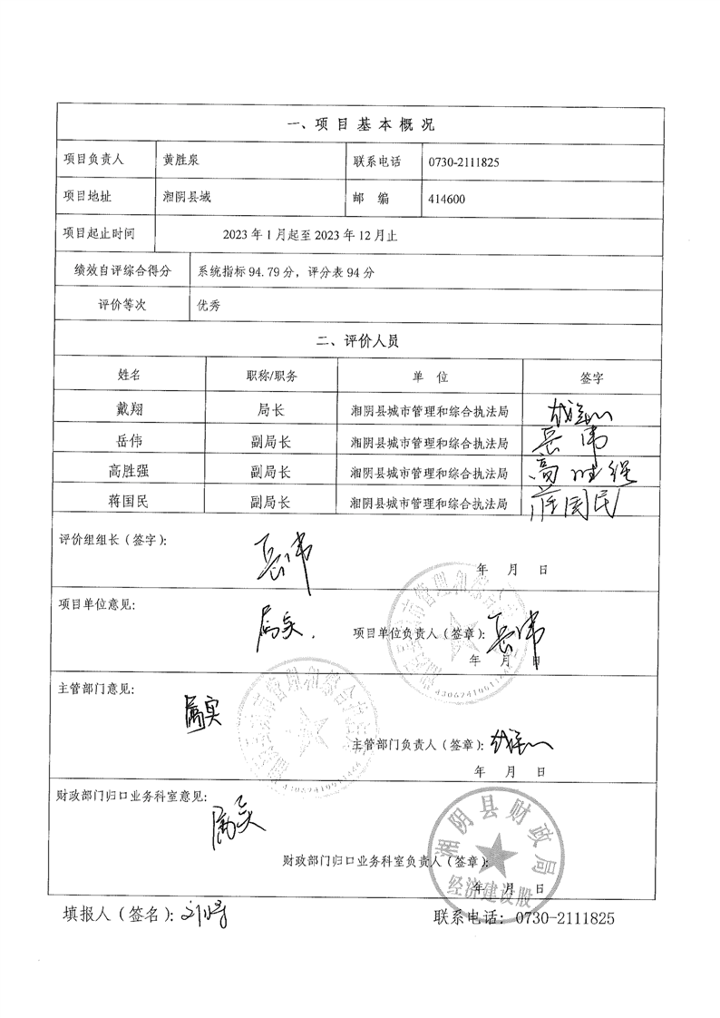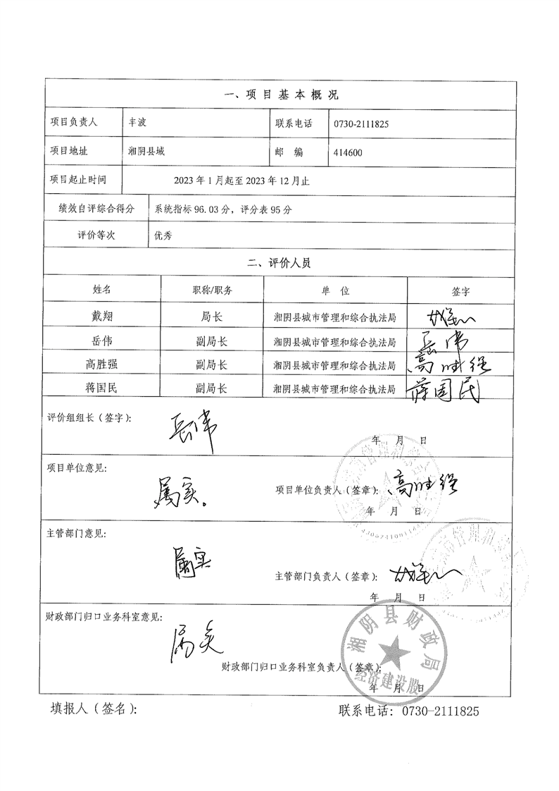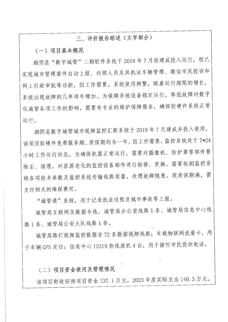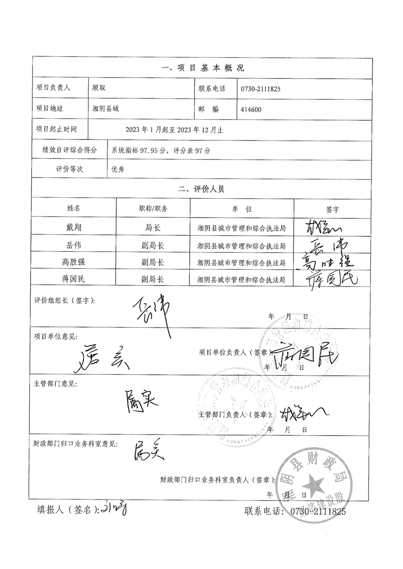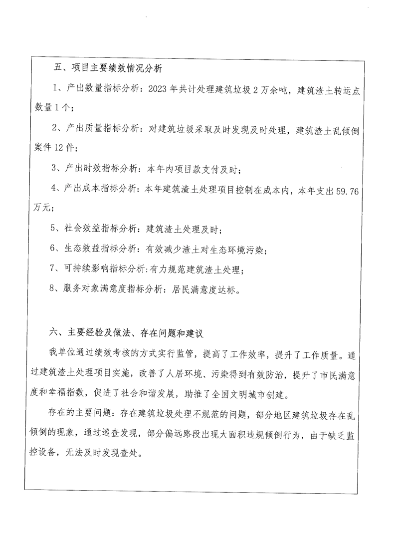 2023年-湘阴县城市管理和综合执法局-财政预算资金绩效自评公开