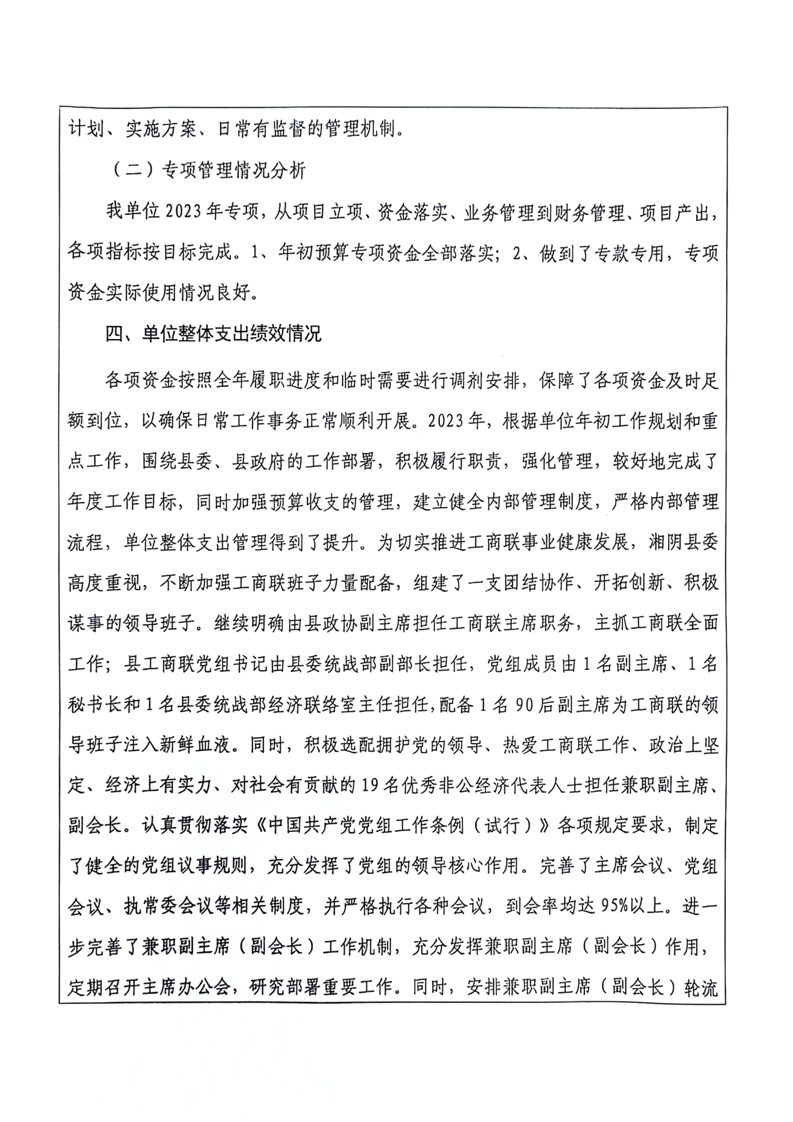 2023年-湘阴县工商业联合会-财政预算资金绩效自评公开