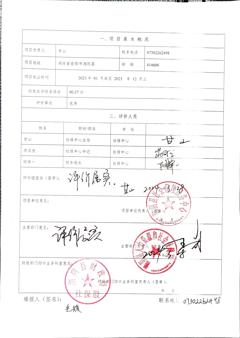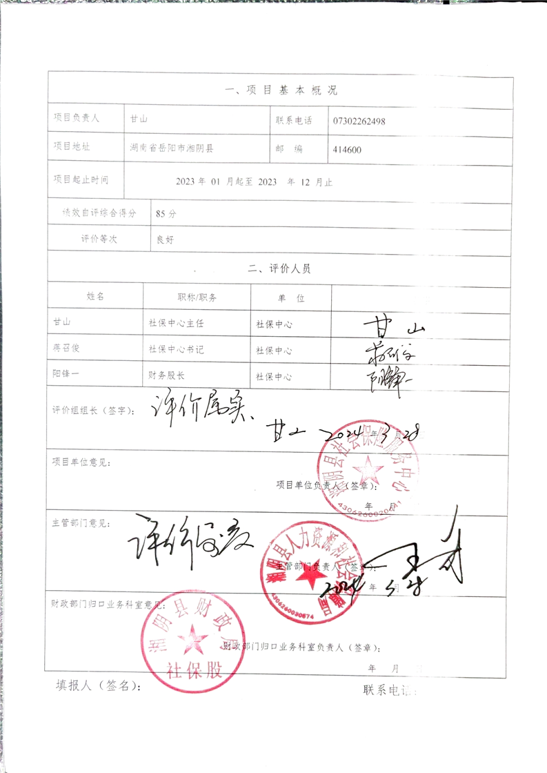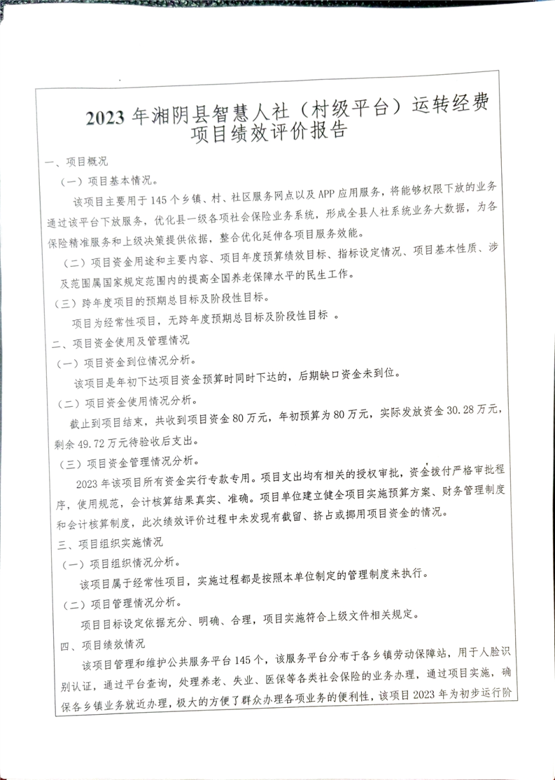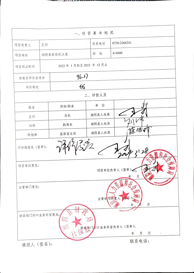 2023年-湘阴县人力资源和社会保障局-财政预算资金绩效自评公开(图)