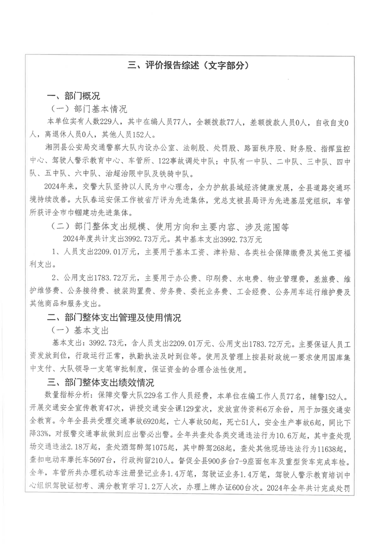 2024年度-湘阴县公安局交警大队-整体支出绩效自评报告