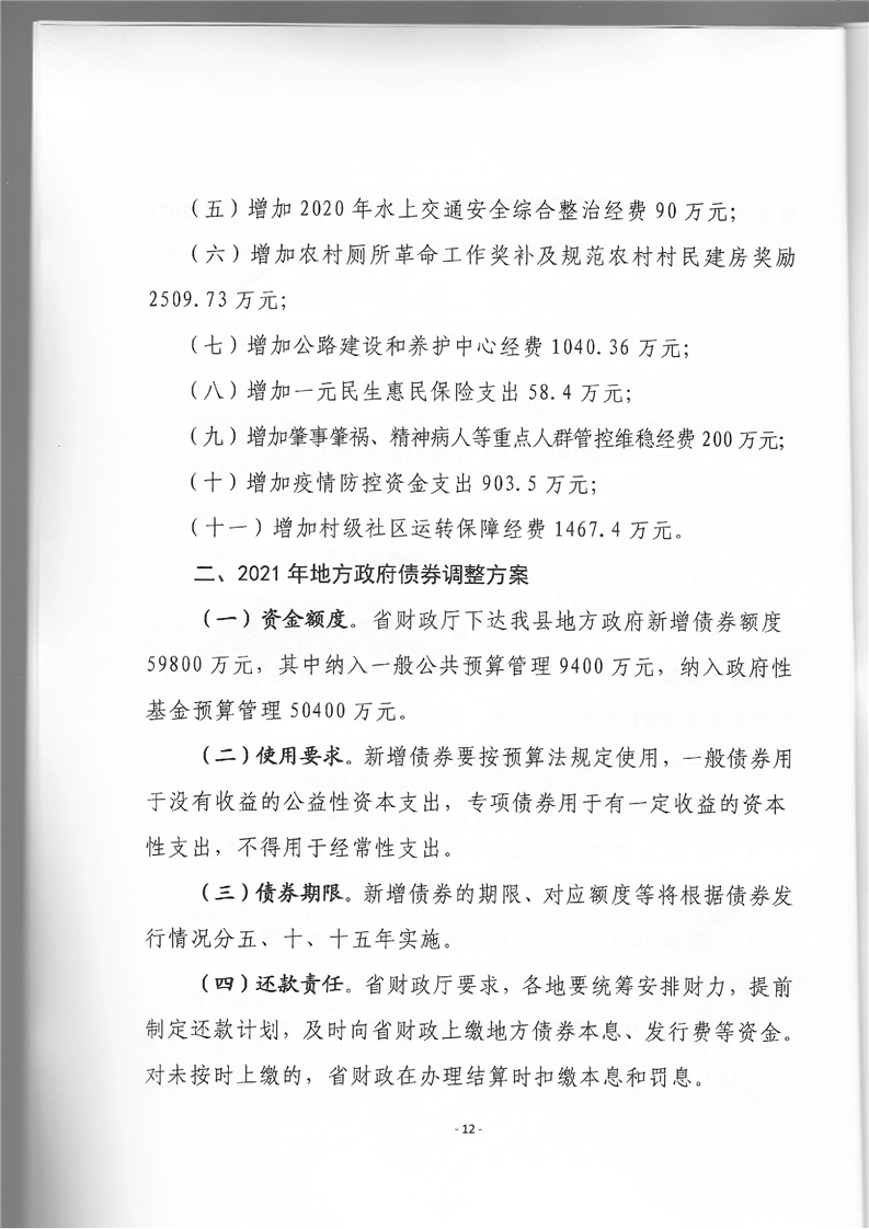 2021年第一批调整预算