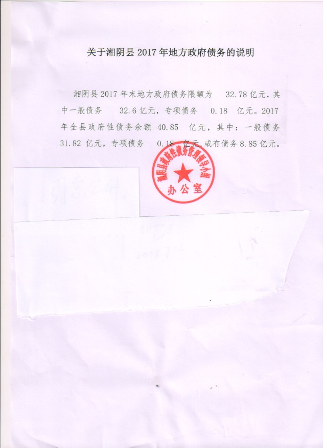 关于湘阴县2017年地方政府债务的说明