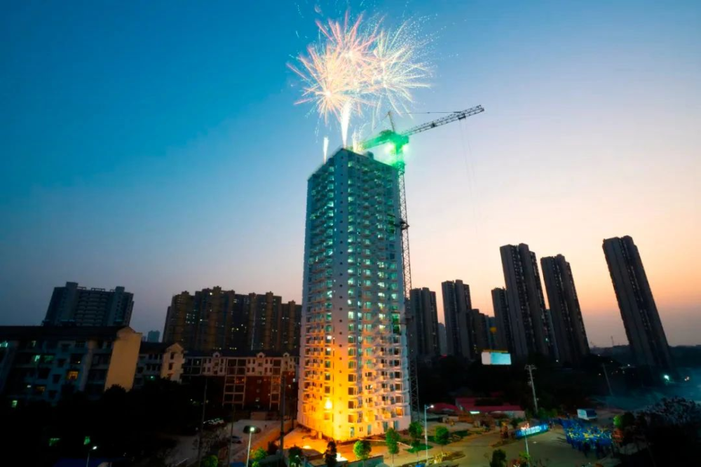 远大活楼有限公司2022年建成全球首条活楼全自动流水生产线,结构、墙窗、机电、智能控制全部在工厂安装调试,实现100%工厂化预制,现场快速安装,颠覆传统建筑模式,28个小时内便可组装一栋11层高楼,目前可实现建筑面积1万平方米/天、年产270万平方米。