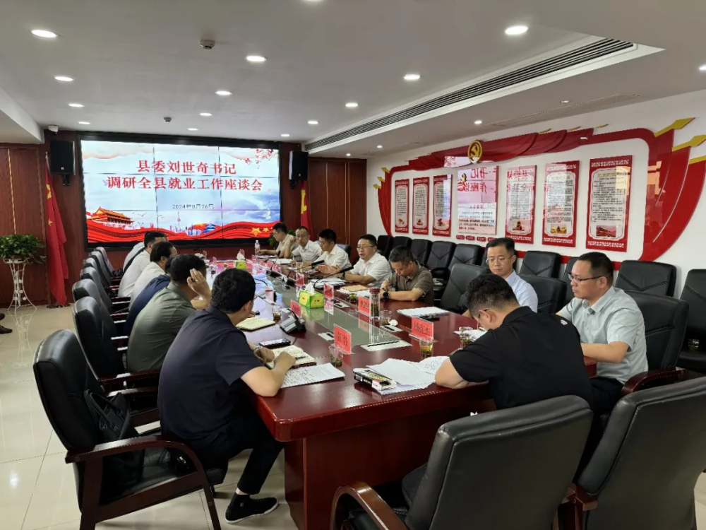8月26日,县委书记刘世奇调研全县就业工作。县委常委、组织部部长徐春光,县委常委、副县长罗奇,县高新区党工委书记焦洪桥参加。