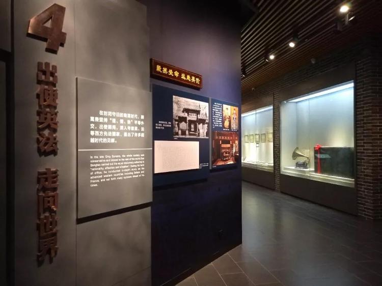 触摸屏展示郭嵩焘在英、法两国活动纪事及其主要思想观点;现场复原郭嵩焘接见中国留学生的场景,虚实结合,传统融入科技,使展陈充满活力,增强参观者的互动体验。