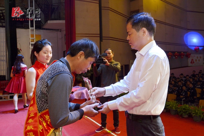 县委书记黎作凤为敬业奉献道德模范易秋鹜颁奖