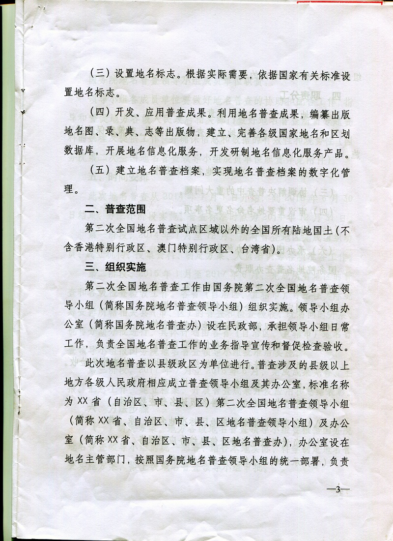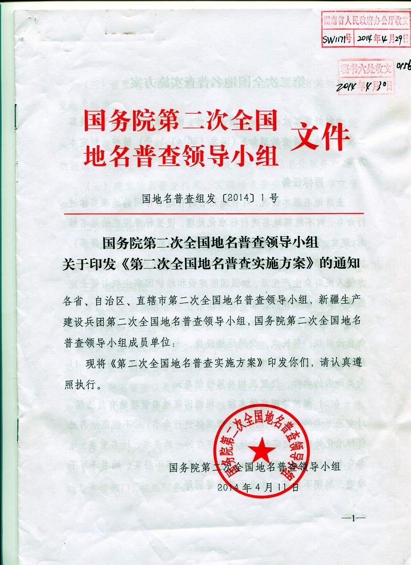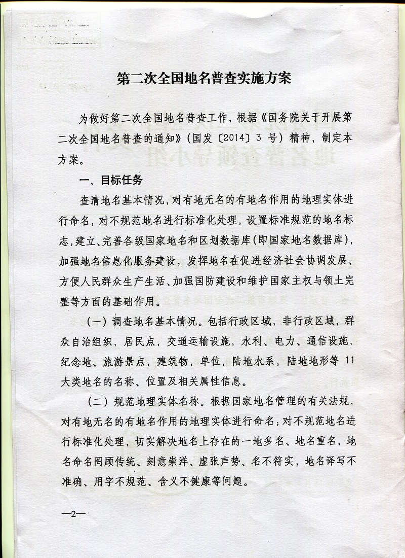 国务院第二次全国地名普查领导小组关于印发《第二次全国地名普查实施方案》的通知